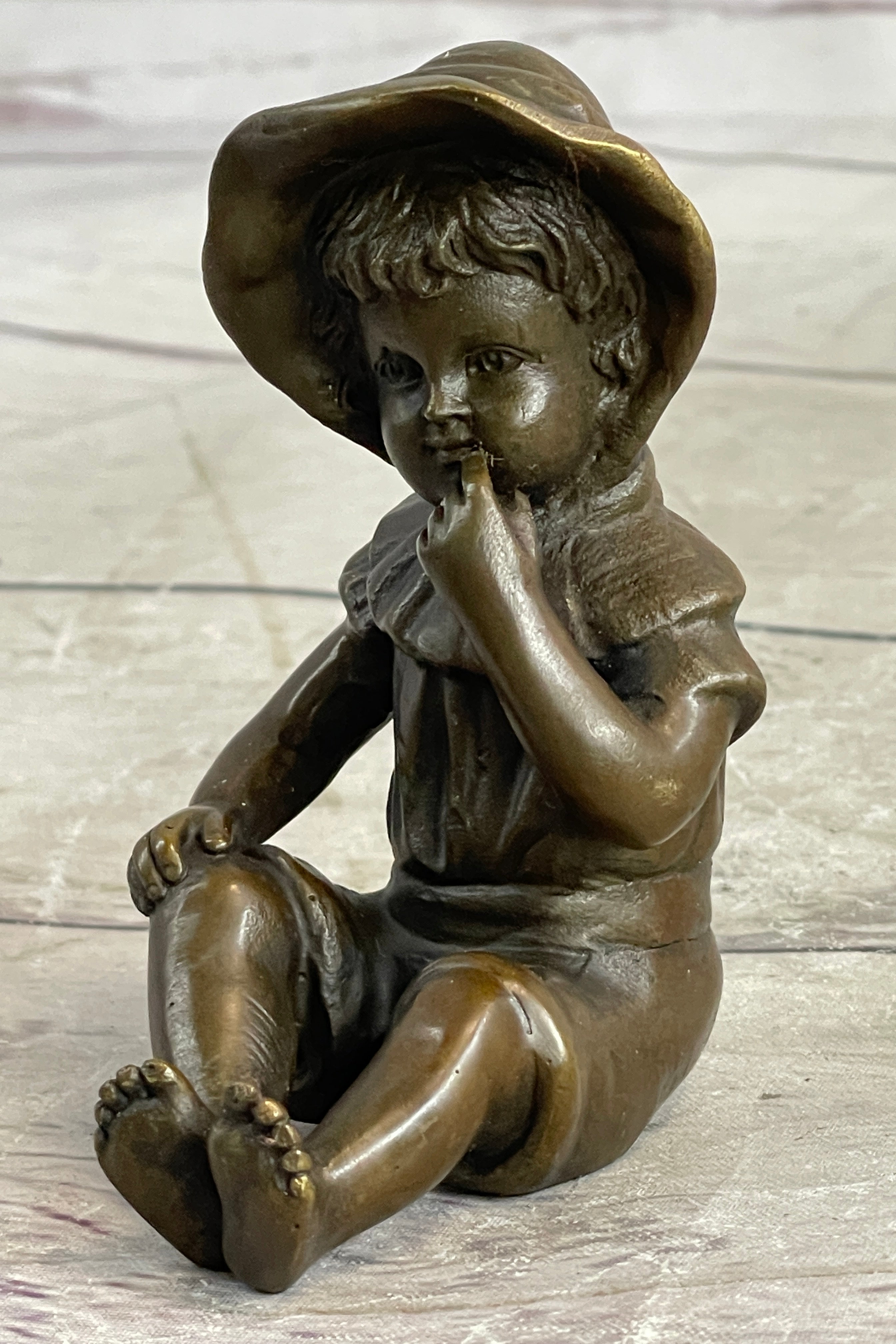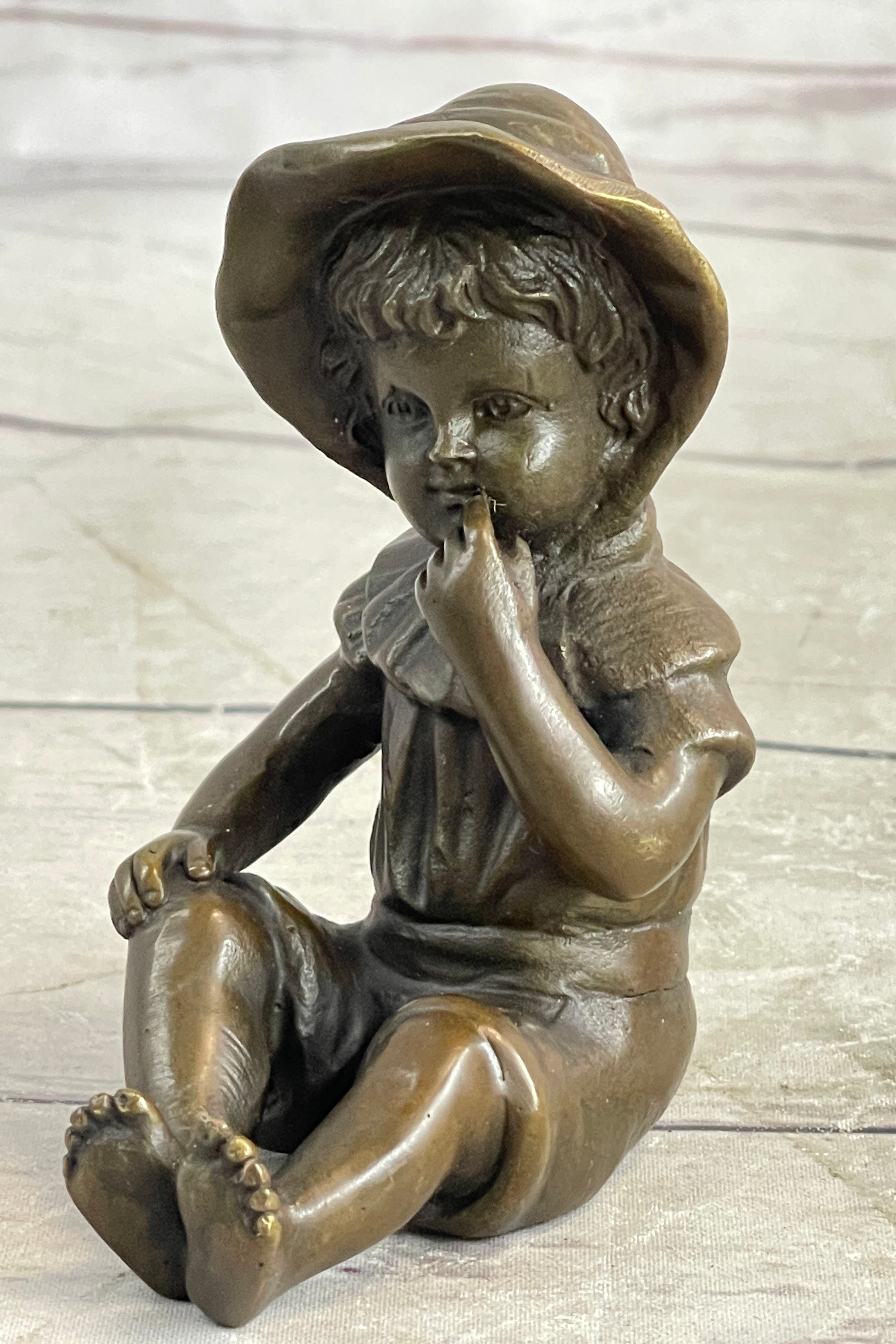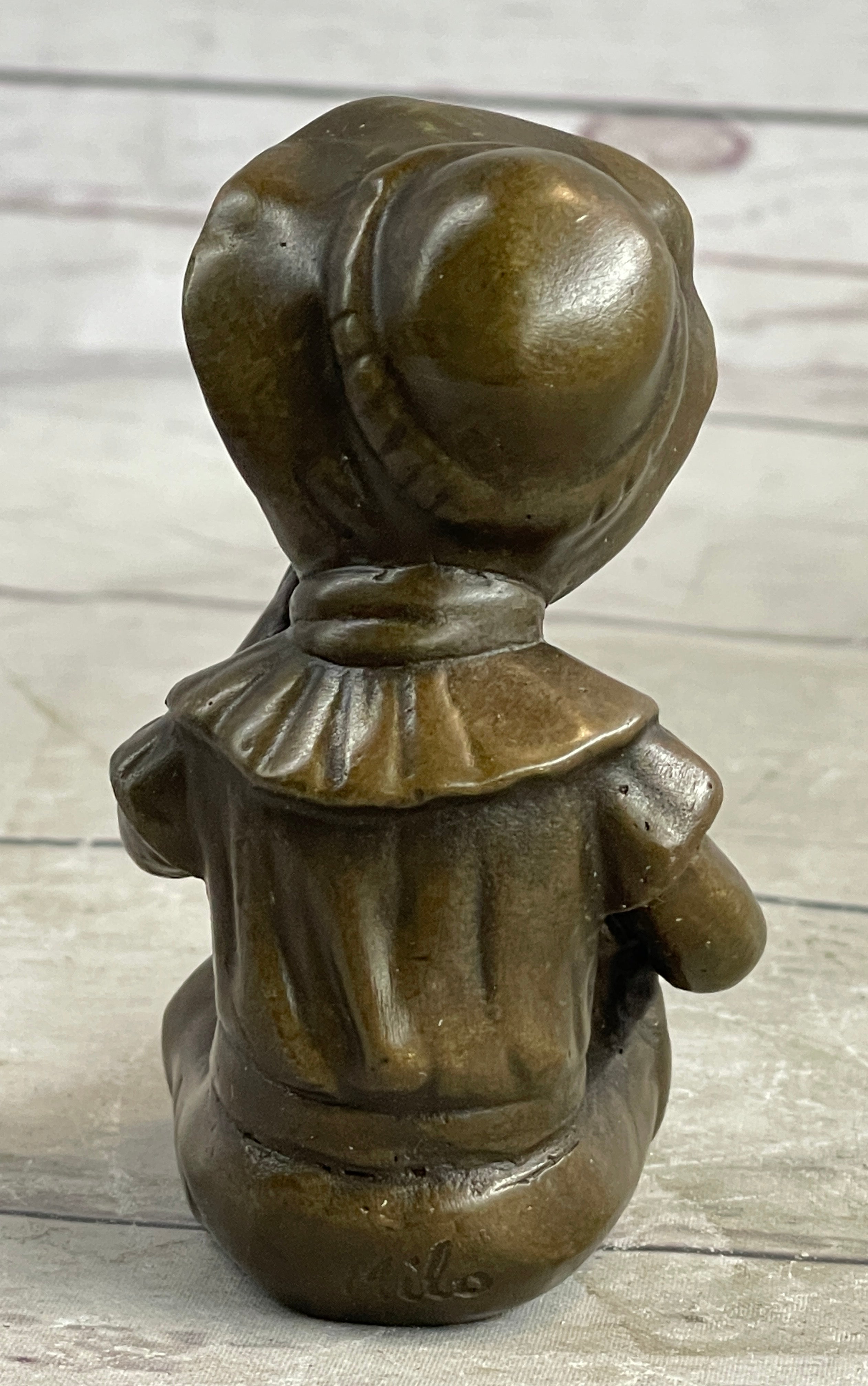 Indulge in the beauty and artistry of this remarkable bronze sculpture. The artist Milo's signature adds a touch of authenticity and serves as a testament to the sculpture's craftsmanship. Whether displayed in a living room, nursery, or any cherished space, this captivating piece serves as a cherished reminder of the fleeting moments of childhood and the enduring power of artistic expression. Embrace the pleasure and admiration that this sculpture brings, as it stands as a testament to the beauty and joy of life itself.Bronze Dimensions: Height 3.5" X Width 1.5"