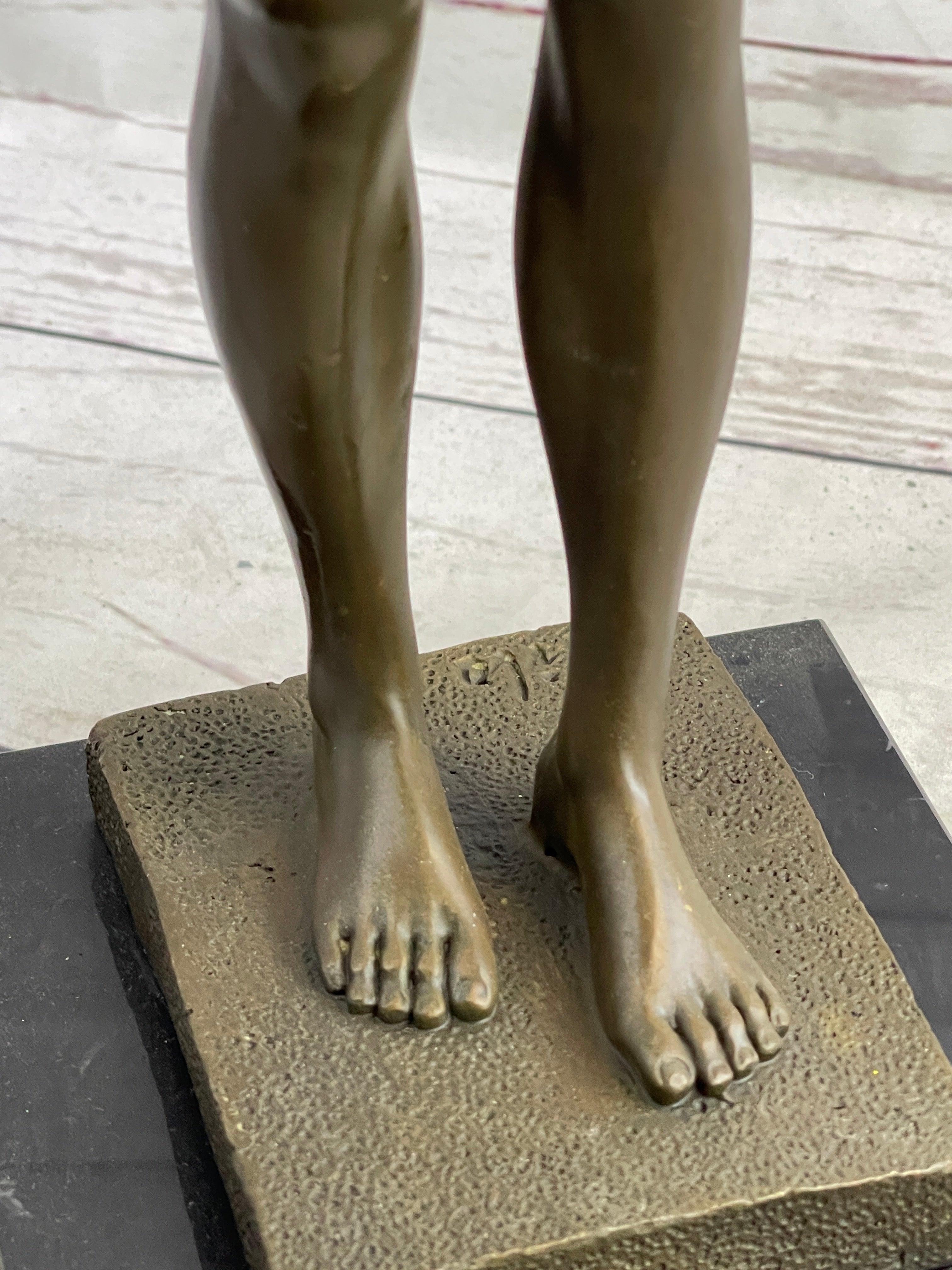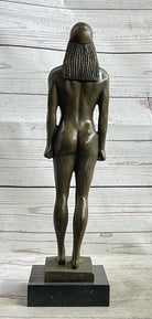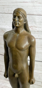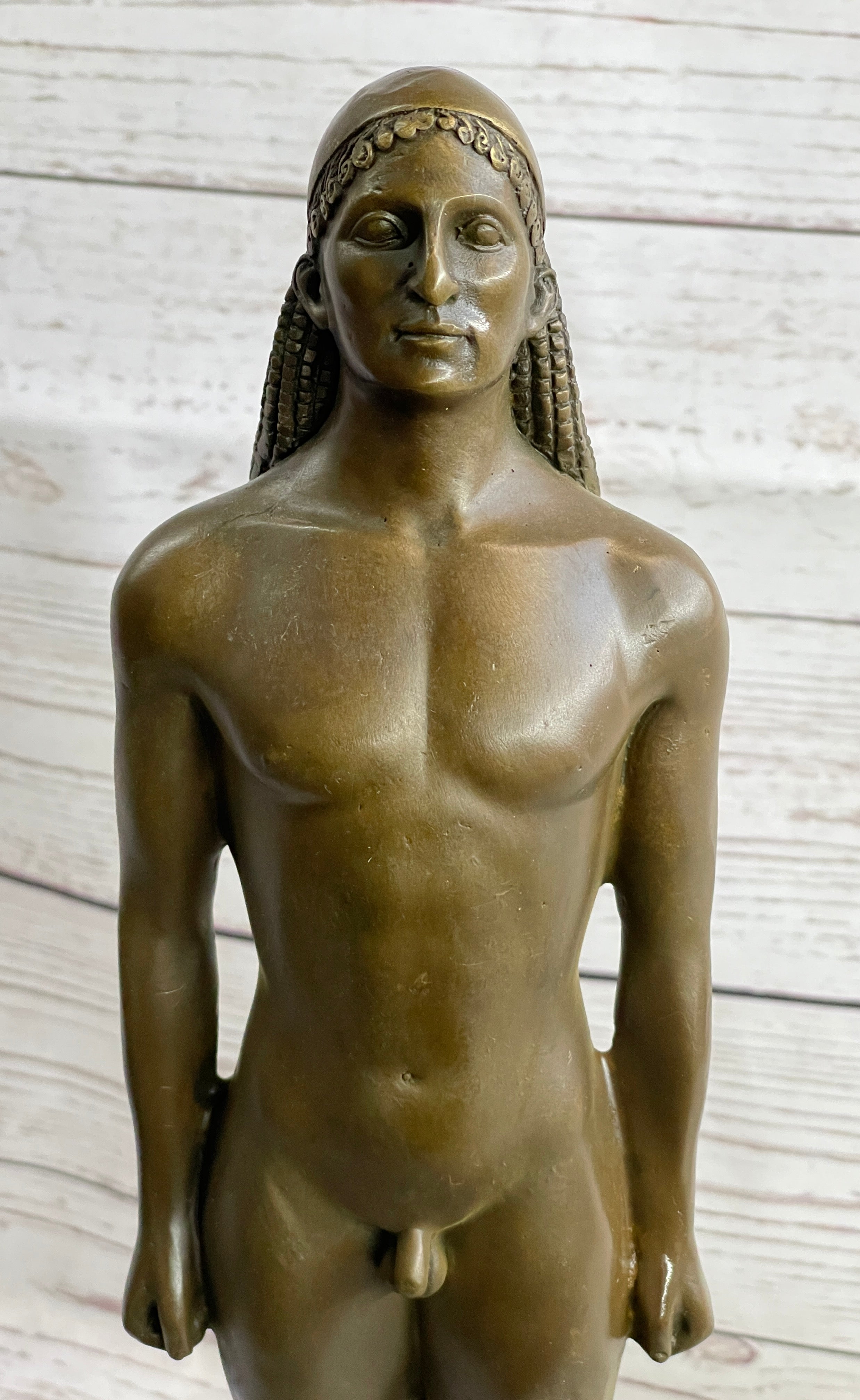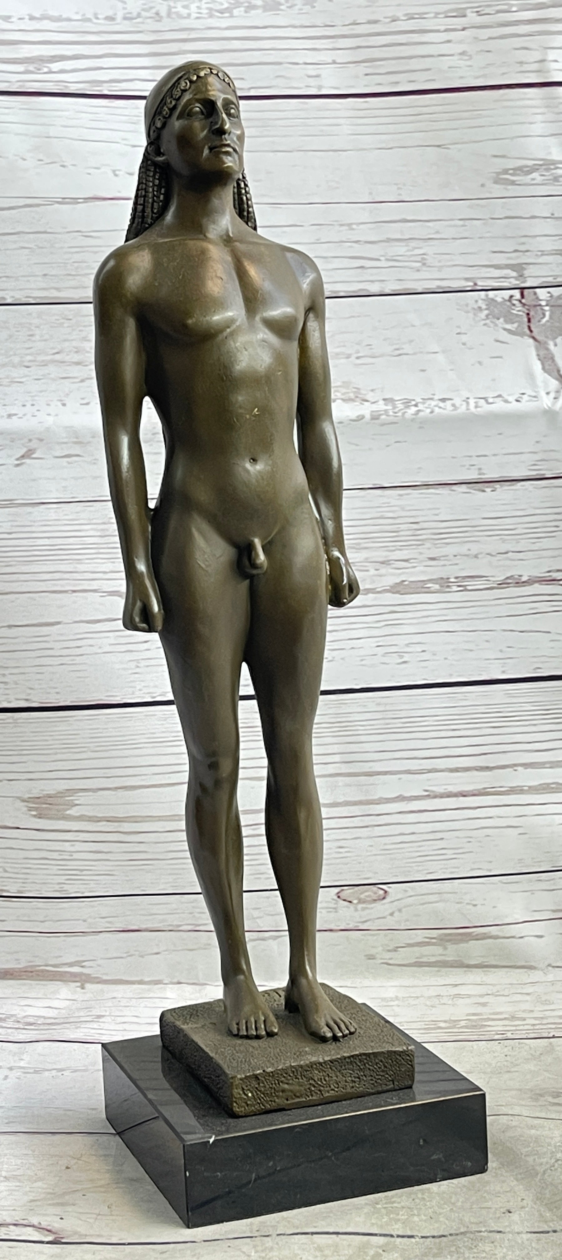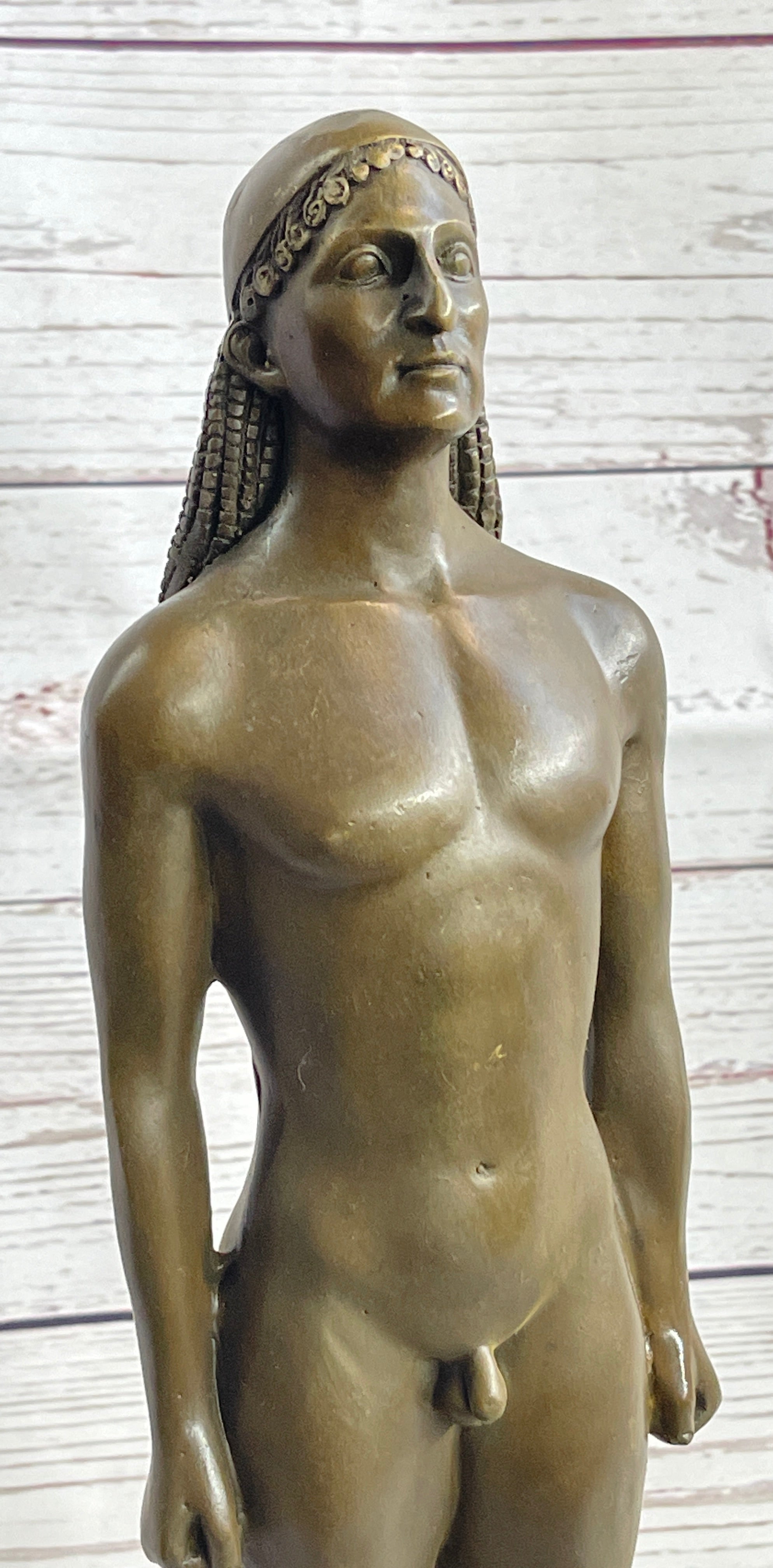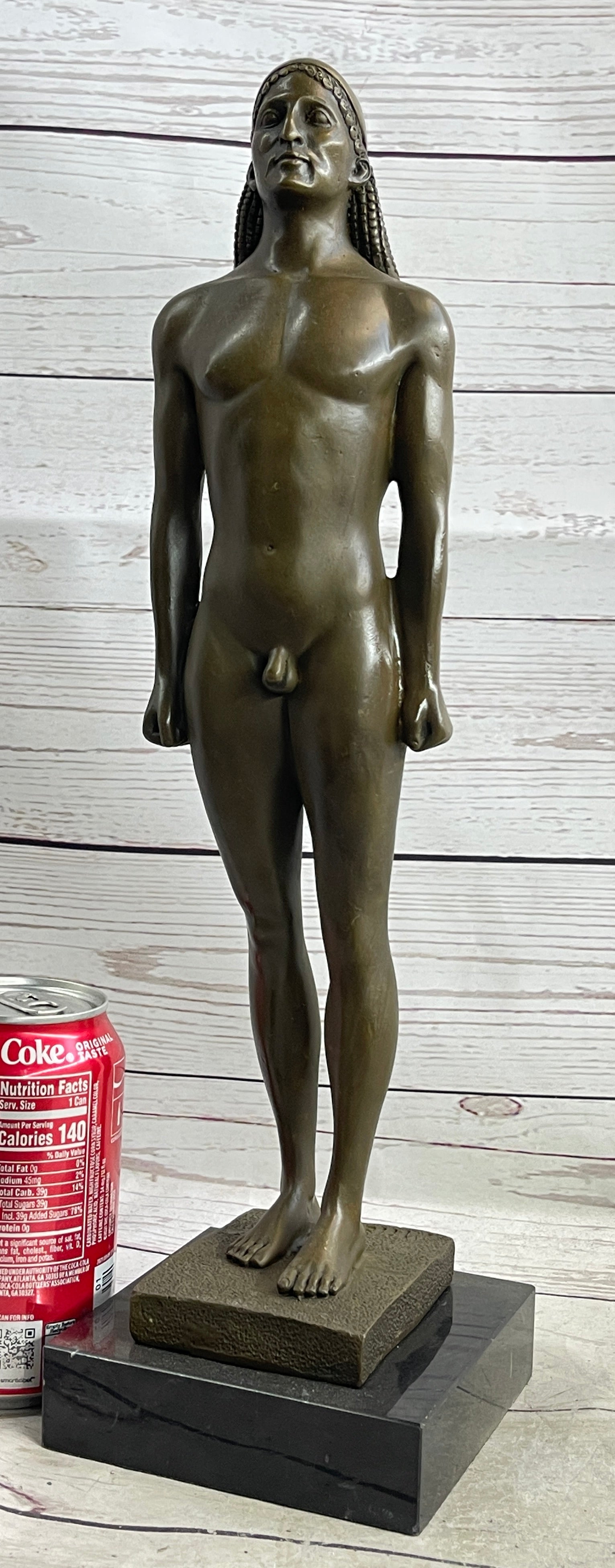 Hot Cast Bronze Greek Kouros Nude Male Sculpture Statue Figure on Marble Base