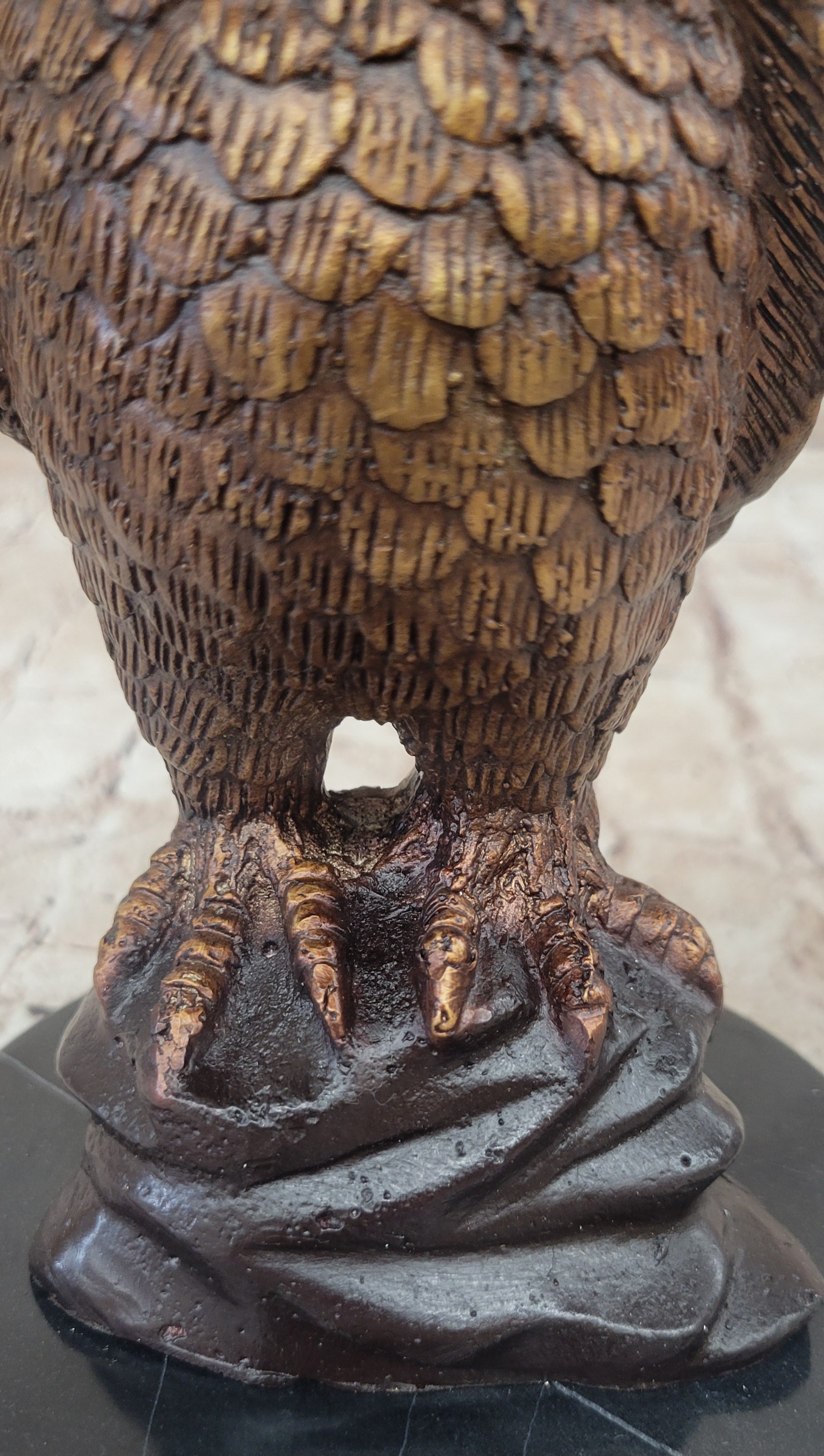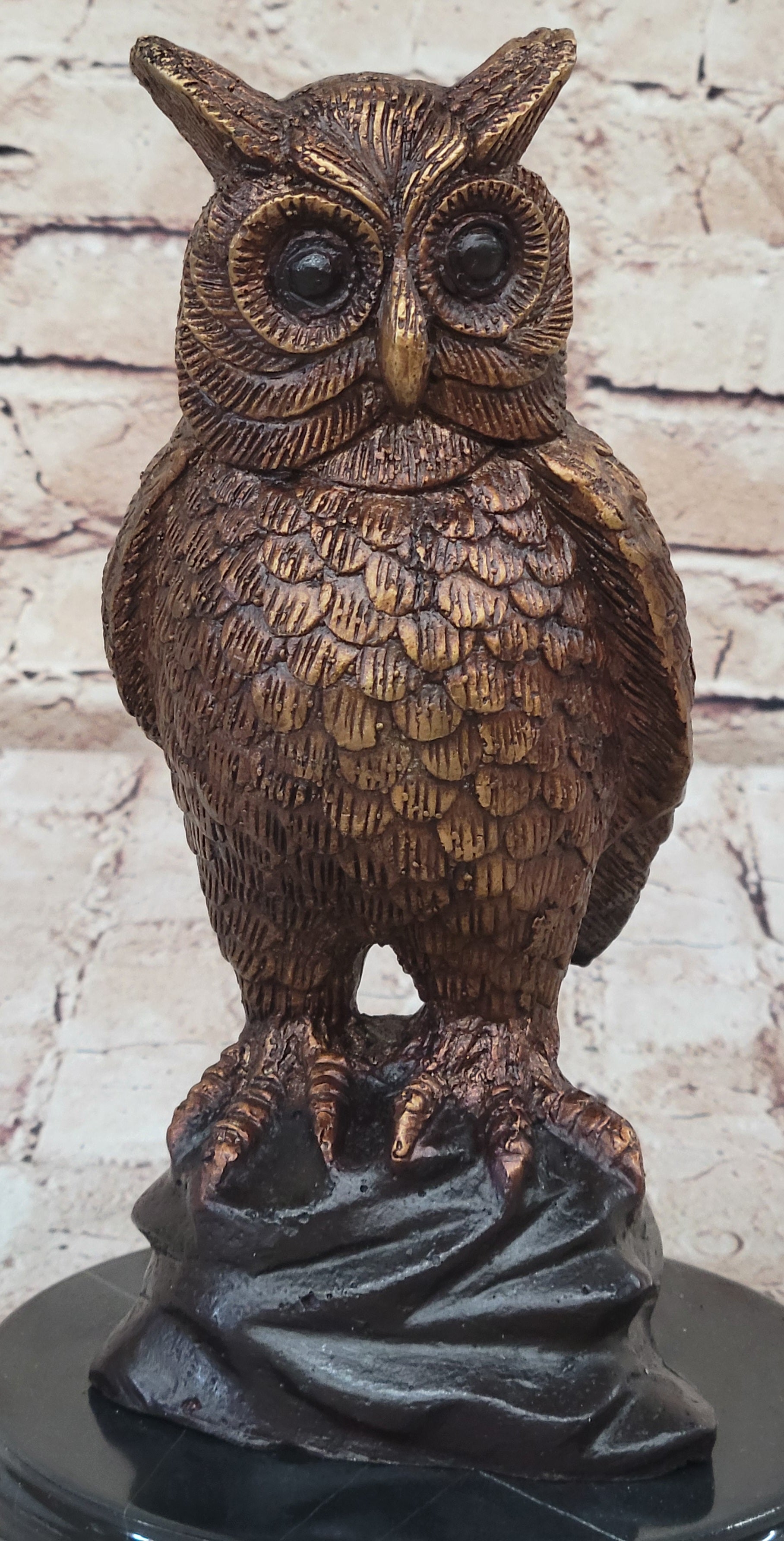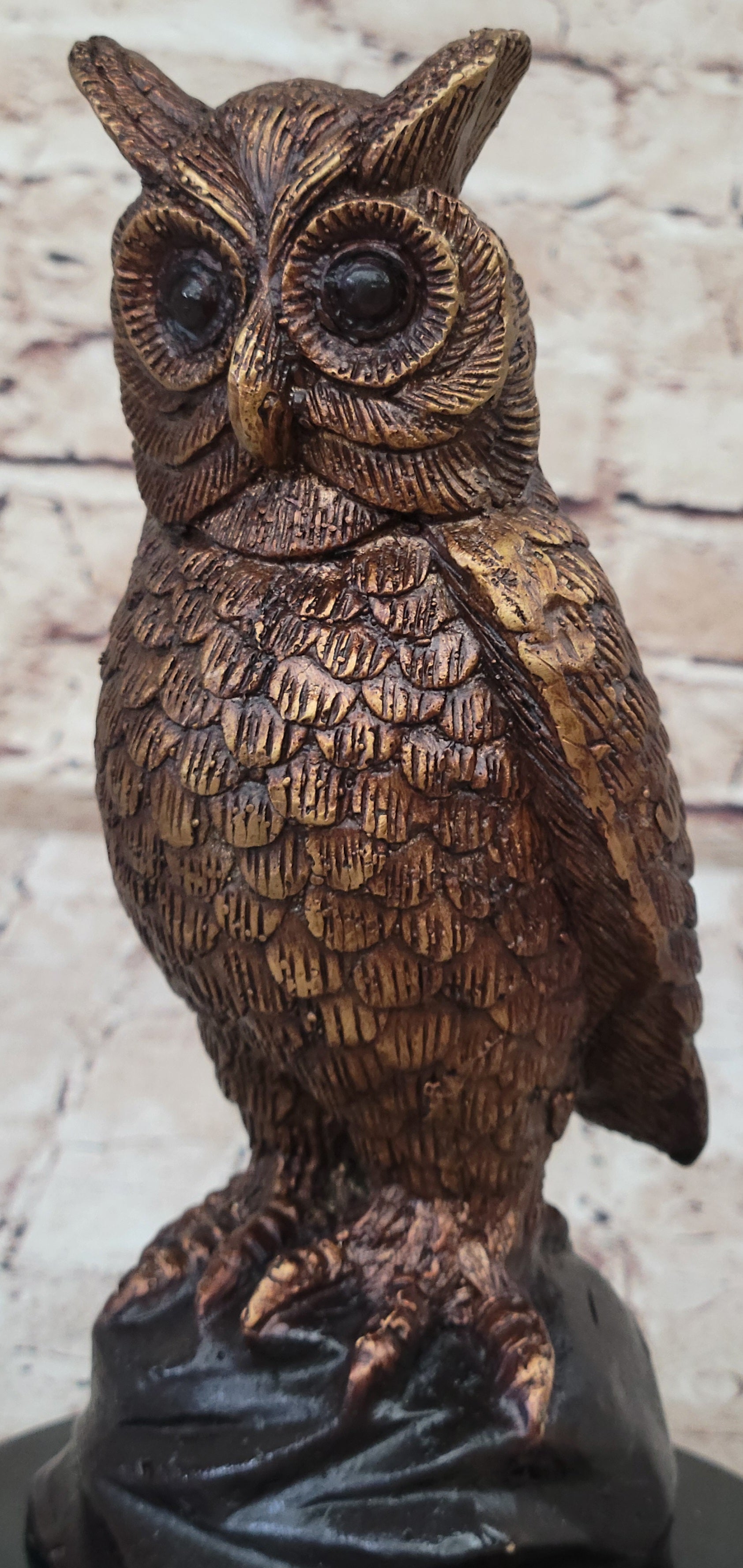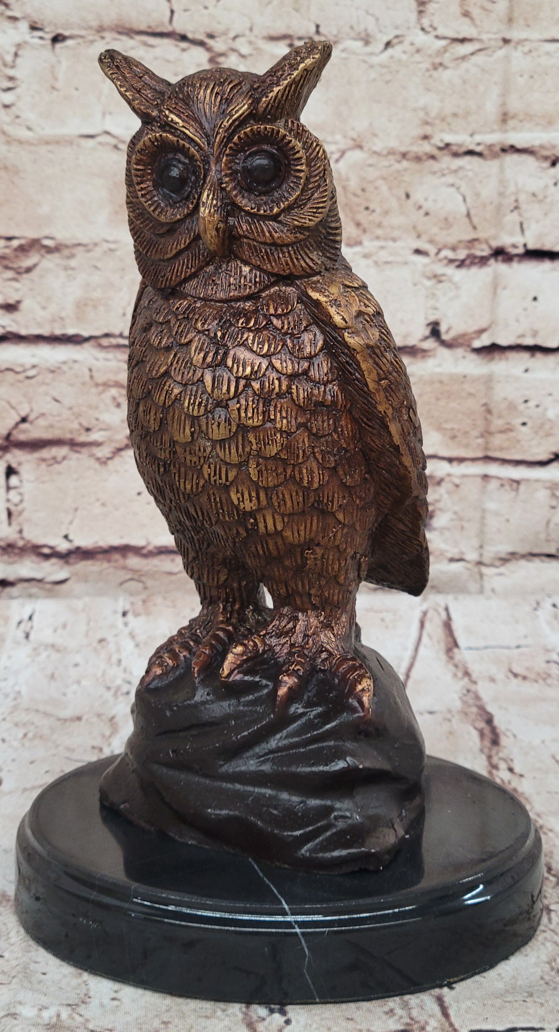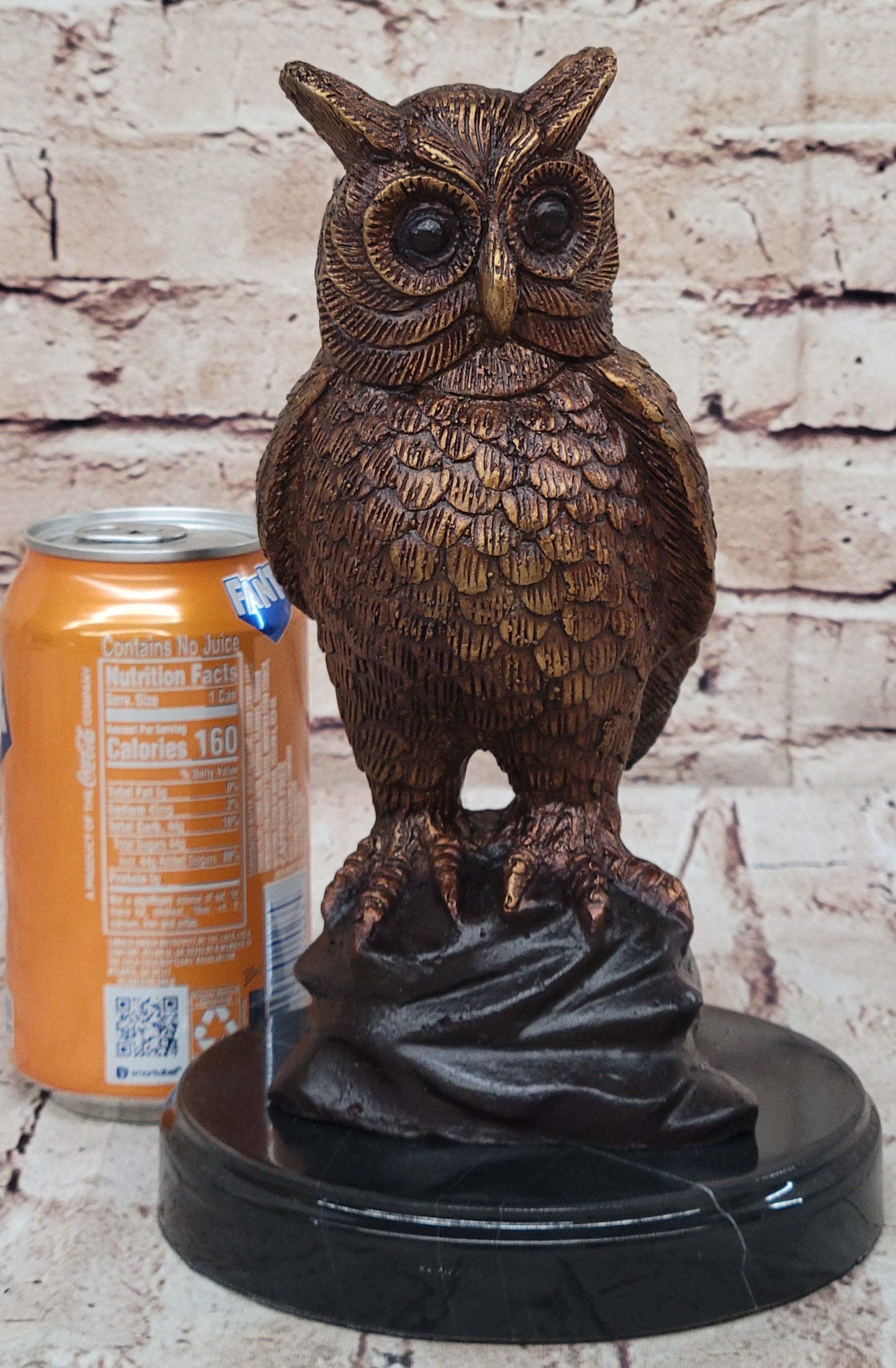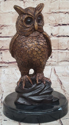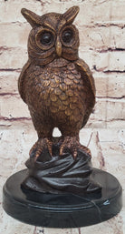 Hot Cast Bronze Metal Miniature Owl Bird Signed Numbered Art Sculpture on Marble Base