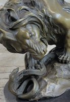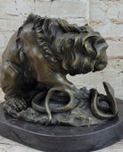 Hot Cast Bronze Sculpture Lion vs Snake Serpent Statue Decor Gift Figurine Sale