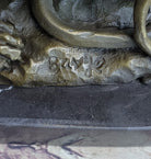 The sculpture is certain to captivate the imagination of art enthusiasts and collectors alike, making it a truly remarkable addition to any collection. Experience the power and artistry of this bronze sculpture, and let it serve as a testament to the skill and creativity of Antoine-Louis Barye, leaving a lasting impression on all who encounter it.Bronze Dimensions with Marble Base: Height 9" X Width 11"