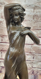 Semi Nude Girl in Graceful Pose Bronze Statue Sculpture Female Figure 14" x 5"