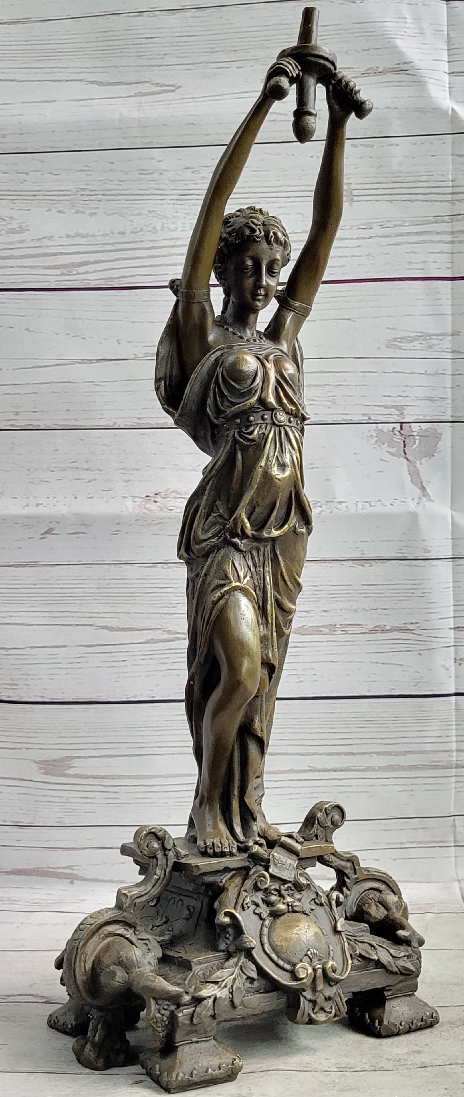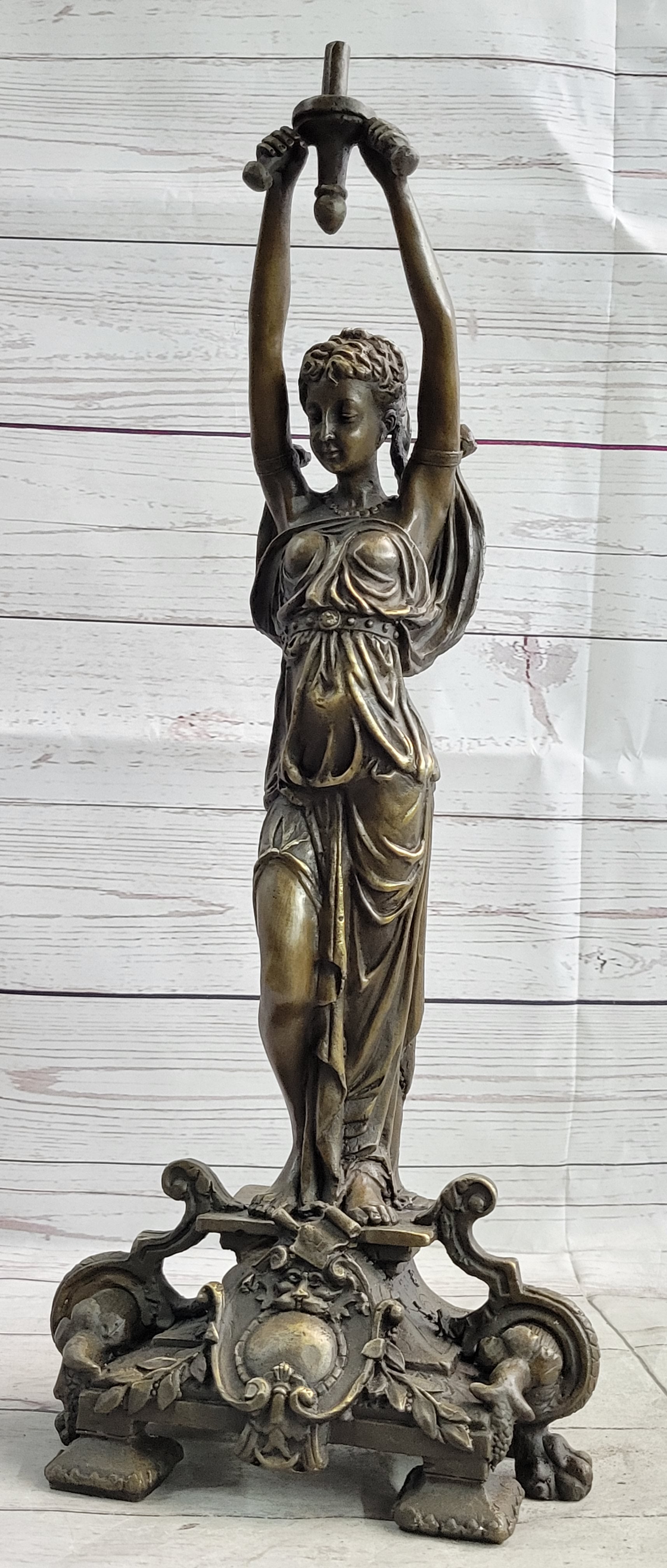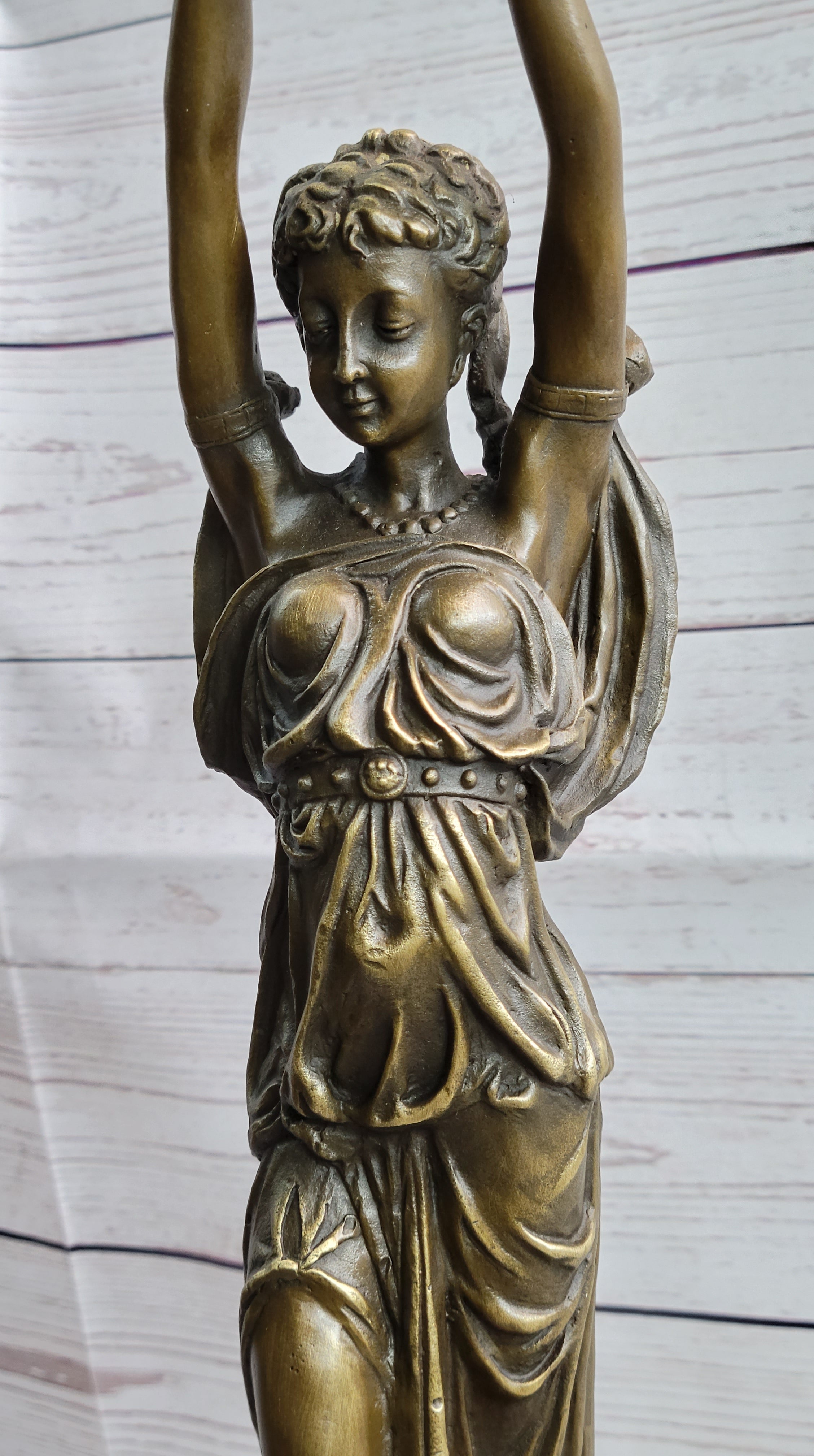 Hot Cast Bronze Sculpture Statue of Ancient Greek Temple Priestess Holding Vessel