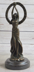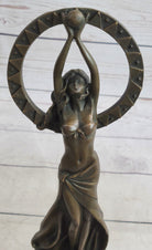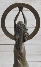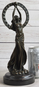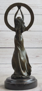 Gaia Girl Holding Moon in front of Sun Bronze Statue Sculpture Figure 12" x 4"