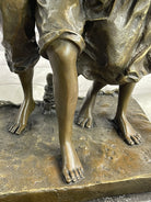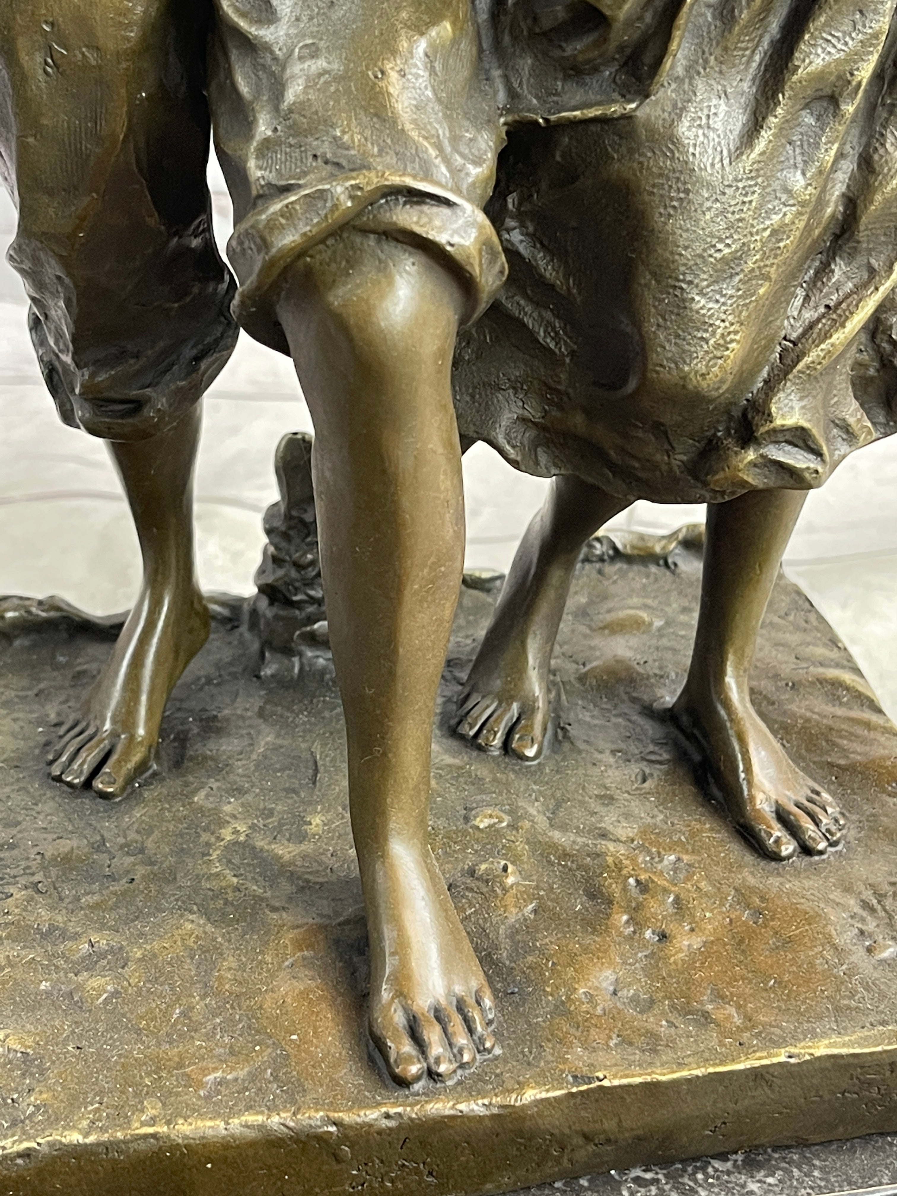Handmade with meticulous attention to detail, this bronze sculpture captures the tender moment shared between husband, wife, and child. Casted using the "Lost Wax Method" and finished with a brown patina, it stands as a testament to the artist's skill and craftsmanship. Mounted on a marble base and signed by artist Milo, this sculpture serves as a poignant reminder of the timeless bond between family and the land they work.Bronze Dimensions with Marble Base: Height 16" X Width 8"