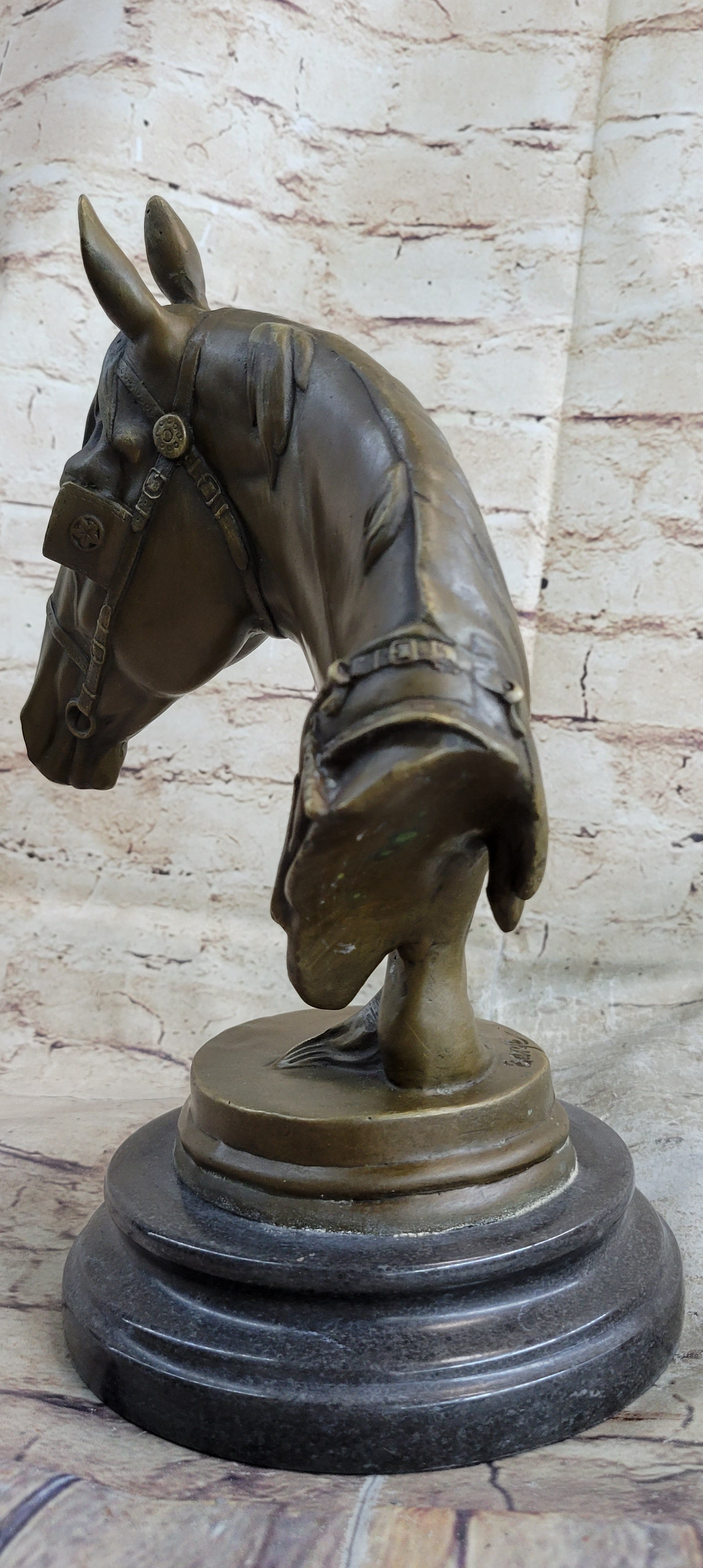 Hot Cast Bronze Horses Head Sculpture Marble Statue Figurine Barye Home Decor Art