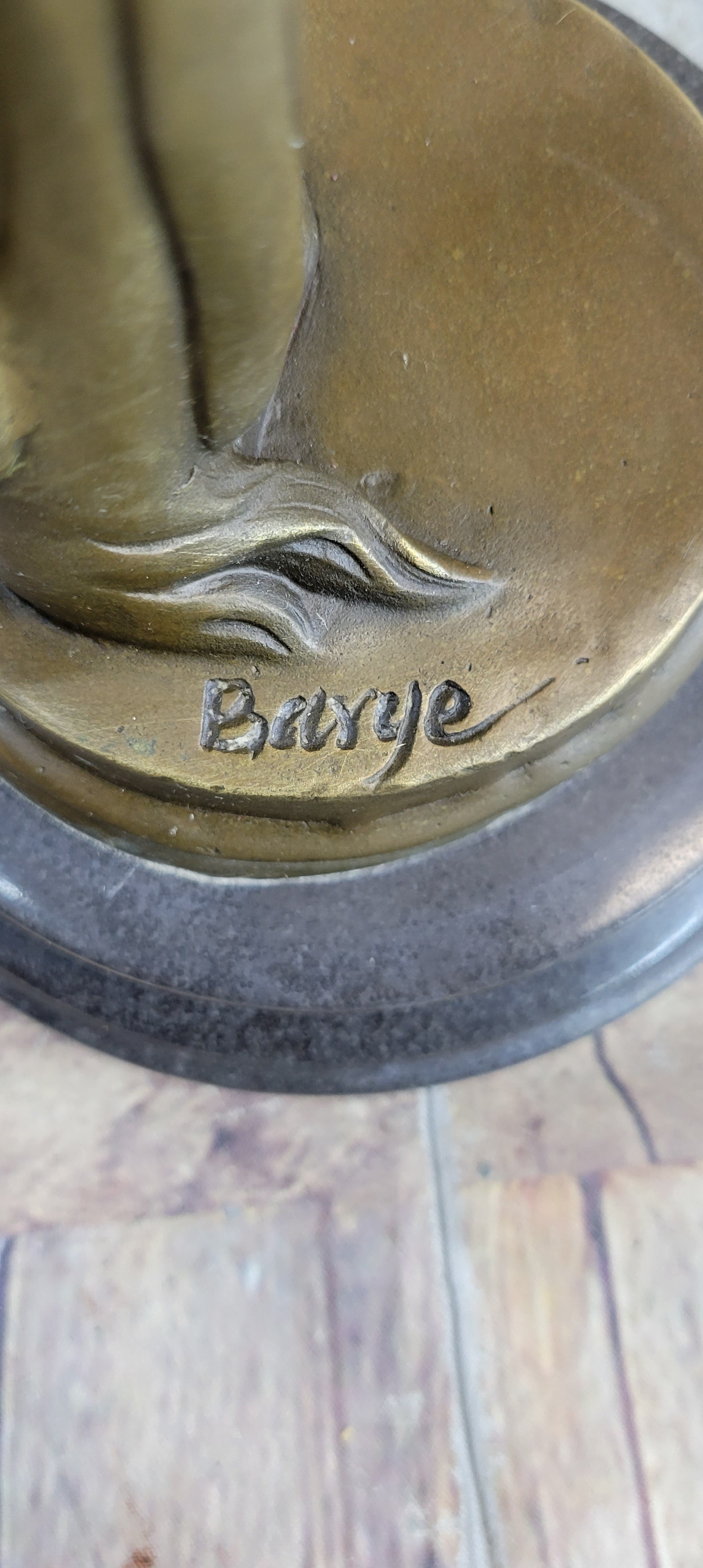 Introducing an exquisite bronze bust that captures the essence of a spirited horse in a truly unique and captivating form. This magnificent sculpture emanates an electrifying energy, portraying the horse in a moment of excitement or surprise. With its head gracefully lowered, its mane billows upwards as if caught in a frenzied dance, while its mouth opens wide, releasing a spirited neigh that echoes with untamed vitality. Every intricate detail of this horse bust is masterfully rendered, making it a stunning addition to any mantel, shelf, or tabletop. Crafted entirely from 100% bronze and meticulously handmade, this sculpture exudes a sense of authenticity and craftsmanship that sets it apart. Employing the revered "Lost Wax Method," the sculpture embodies a timeless artistic tradition, capturing the dynamic movement and emotion of the horse in its finest form. This exceptional piece rests upon a marble base, adding a touch of elegance to its powerful presence. A signature by the renowned artist Barye serves as a testament to the sculpture's quality. Whether as a focal point or an accent, this gorgeous bronze bust of a horse will infuse your space with a captivating energy, embodying the wild spirit and beauty of these majestic creatures.