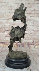 Embrace the harmonious spirit of the wolf and bring an enchanting touch to your surroundings with this captivating "Wolf Harmony" Bronze Sculpture, a true masterpiece that proudly bears the signature of the esteemed artist M. Lopez.Bronze Dimensions with Marble Base: Height 18" X Width 8"