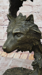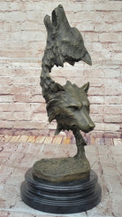Howling Wolves Bronze Sculpture – Striking Dual Wolf Heads on Marble Base