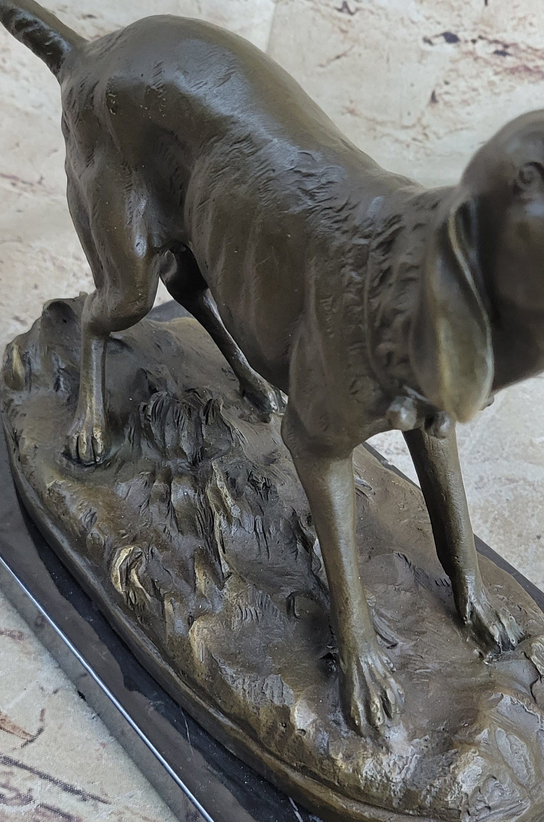 In this sculpture, time stands still, preserving a moment of intensity and anticipation that will be cherished forever. The hunting dog's muscular physique is expertly rendered, conveying a sense of power and energy ready to be unleashed. The dog's focused gaze and alert nose reveal its exceptional abilities as a champion in the field.
