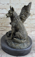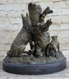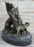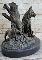 HUNTING DOGS ENGLISH BULLDOG SHEPHERD BRONZE SCULPTURE FIGURINE MARBLE BASE DECO