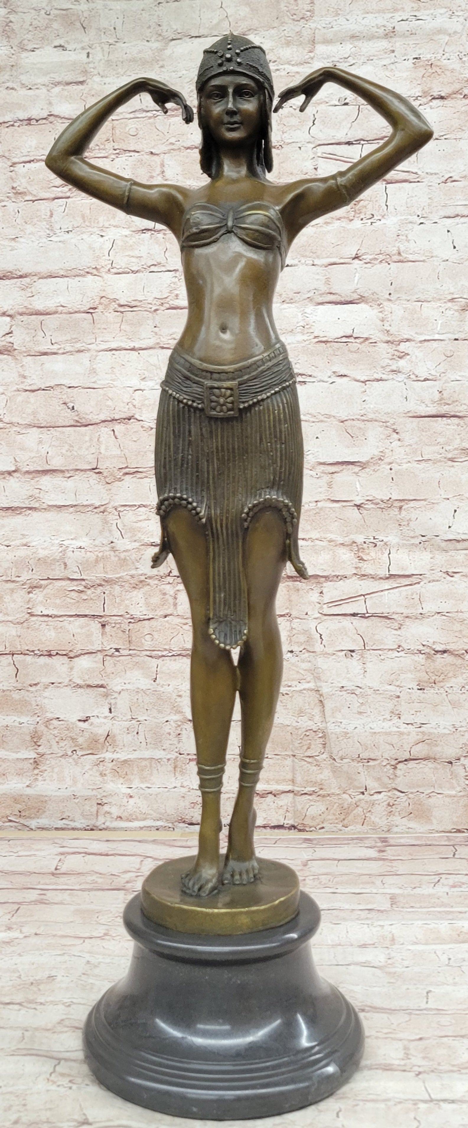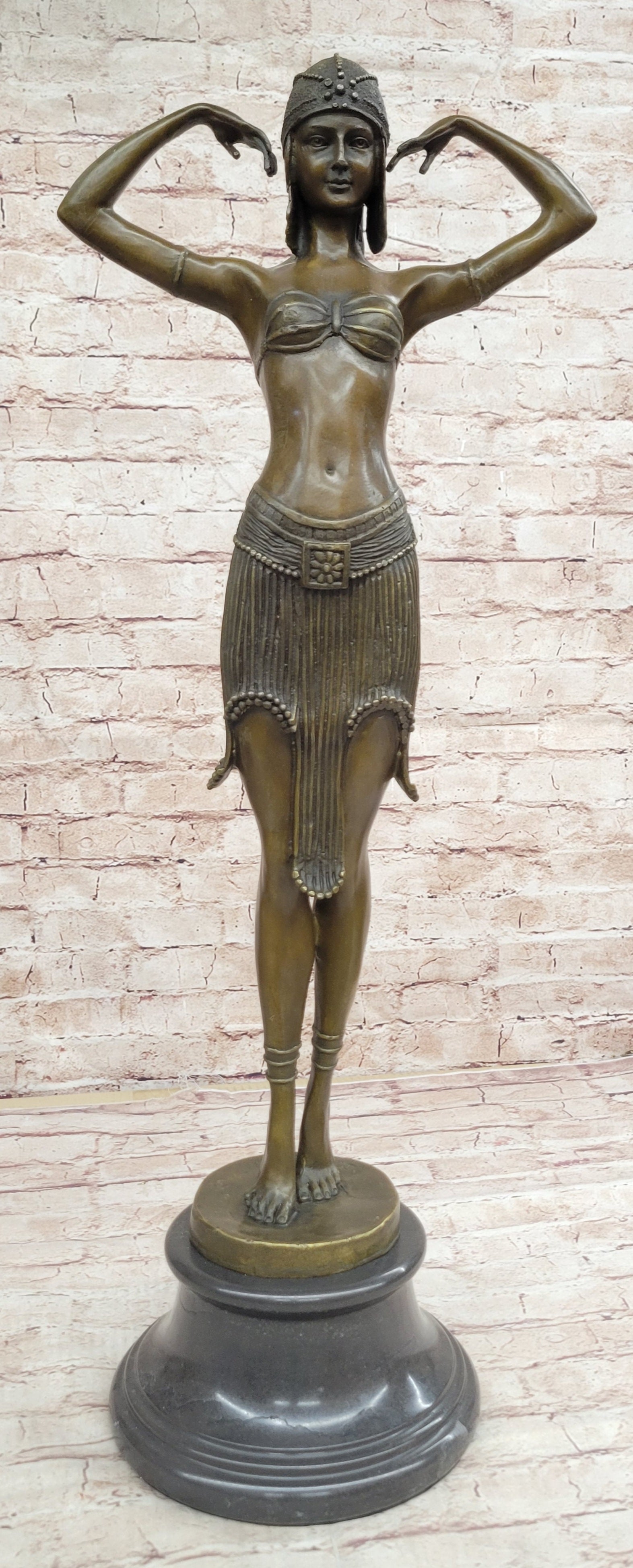 Our commitment to quality is reflected in our meticulous attention to detail and the exceptional craftsmanship that goes into every piece. We invite you to experience the beauty and artistry of this remarkable Art Nouveau bronze sculpture by Dimitri Chiparus.Bronze Dimensions with Marble Base: Height 29" X Width 10"