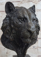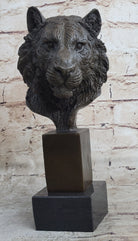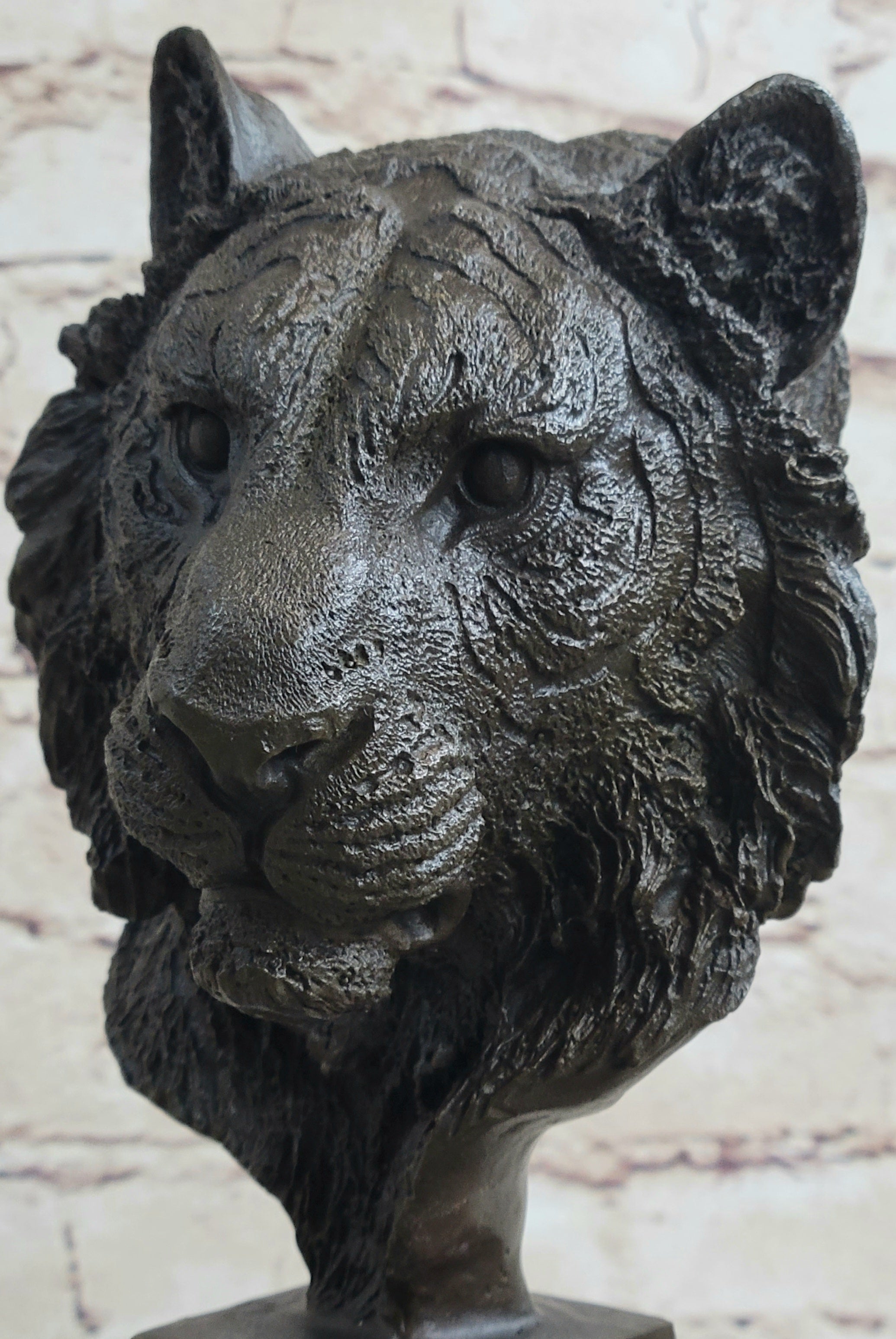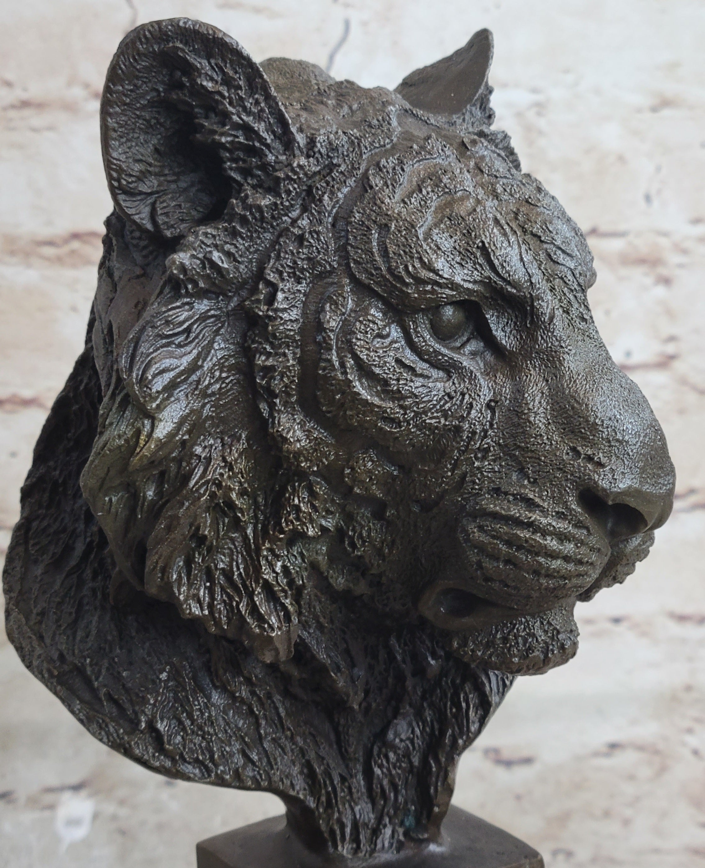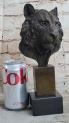 Tiger Bronze Metal Bust Statue Sculpture Tiger's Head Marble Base 10" x 5"