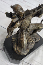 Crafted with meticulous attention to detail using the "Lost Wax Method," this handmade sculpture features a rich brown patina that adds depth and dimension to the warrior's figure. Mounted on a marble base and signed by artist Kamiko, it stands as a powerful symbol of honor, courage, and the martial spirit of the Samurai.Bronze Dimensions with Marble Base: Height 9" X Width 6 1/2"