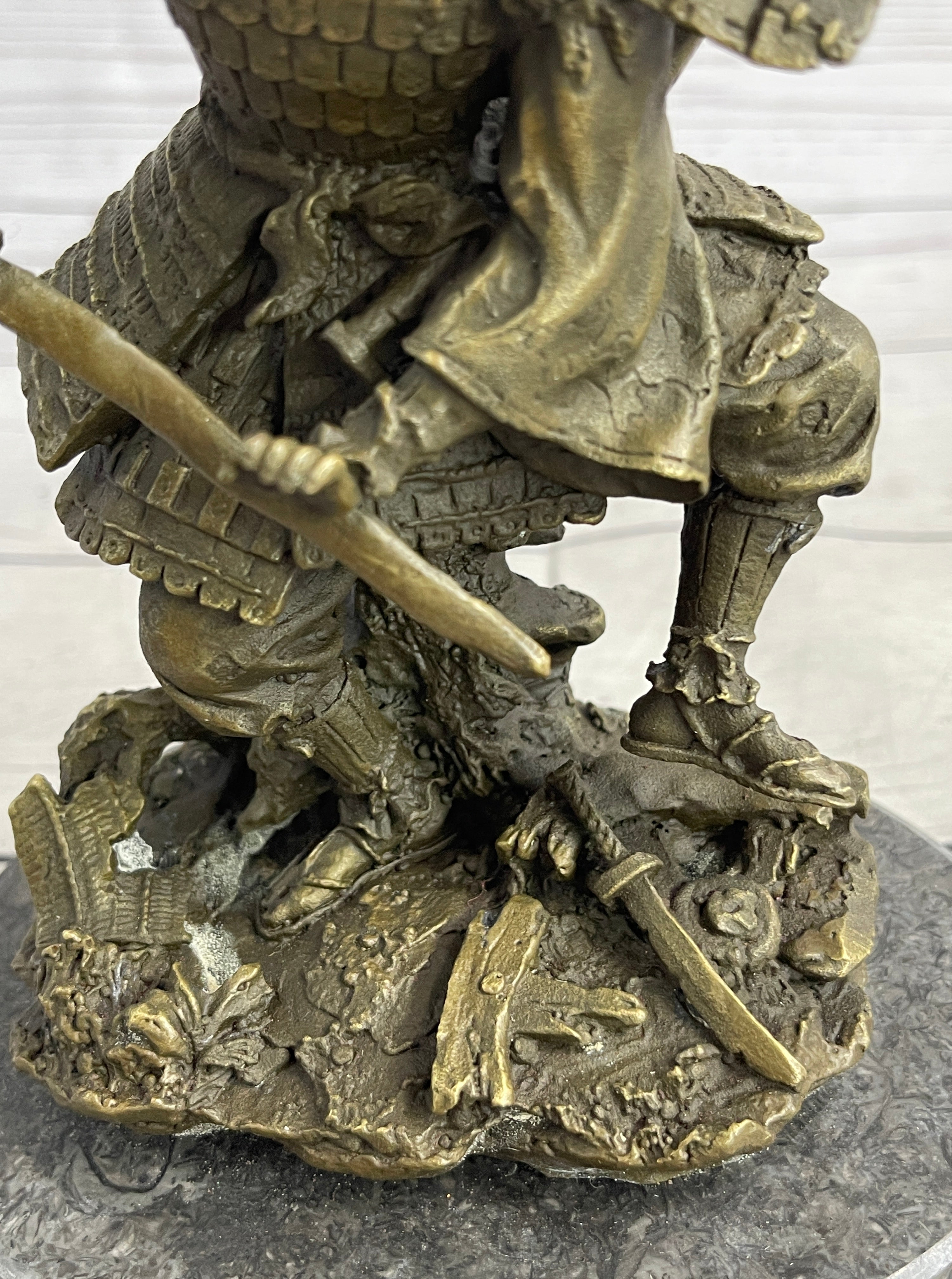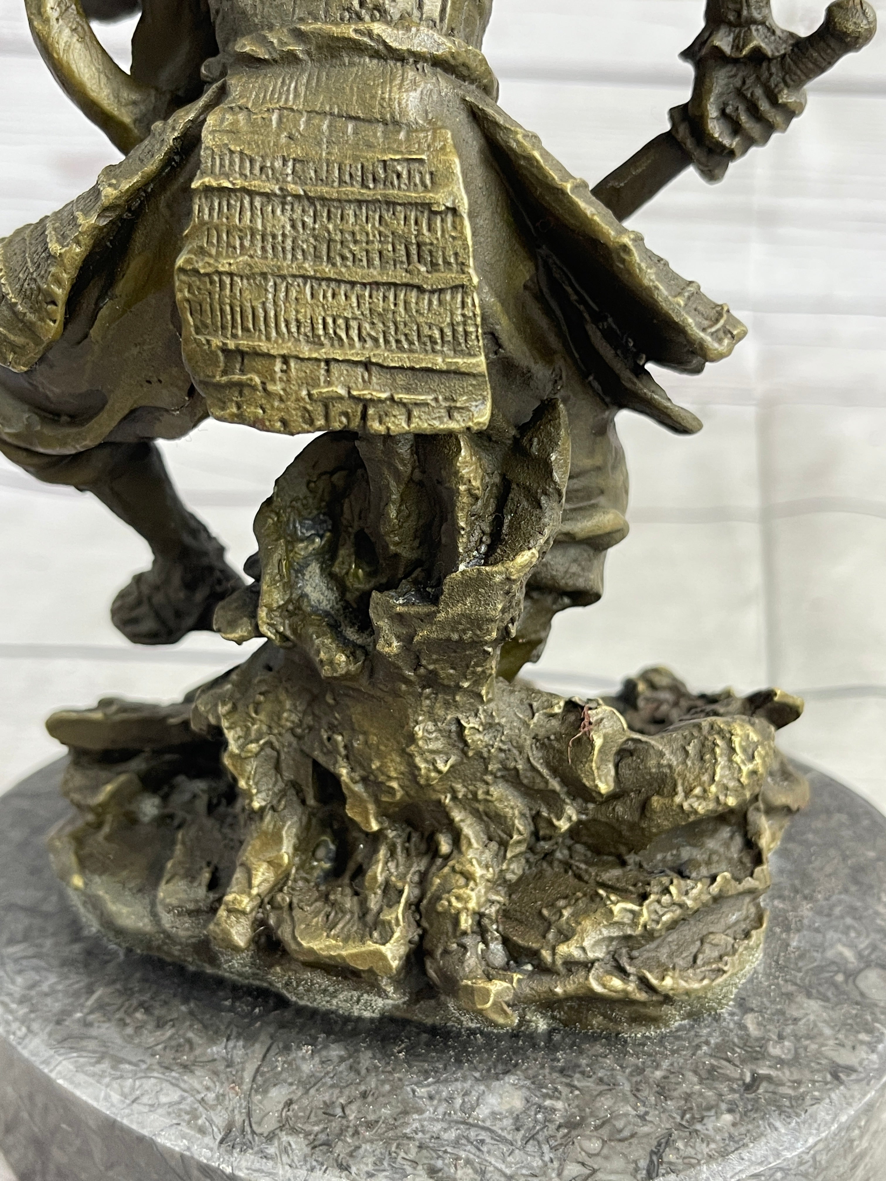 Mounted on a black marble base, this 100% handmade bronze sculpture stands as a powerful representation of the samurai ethos. Signed by the talented artist Kamiko, it not only captures a specific moment in history but also pays homage to the enduring legacy of these revered warriors.Bronze Dimensions with Marble Base: Height 9" X Width 5"