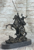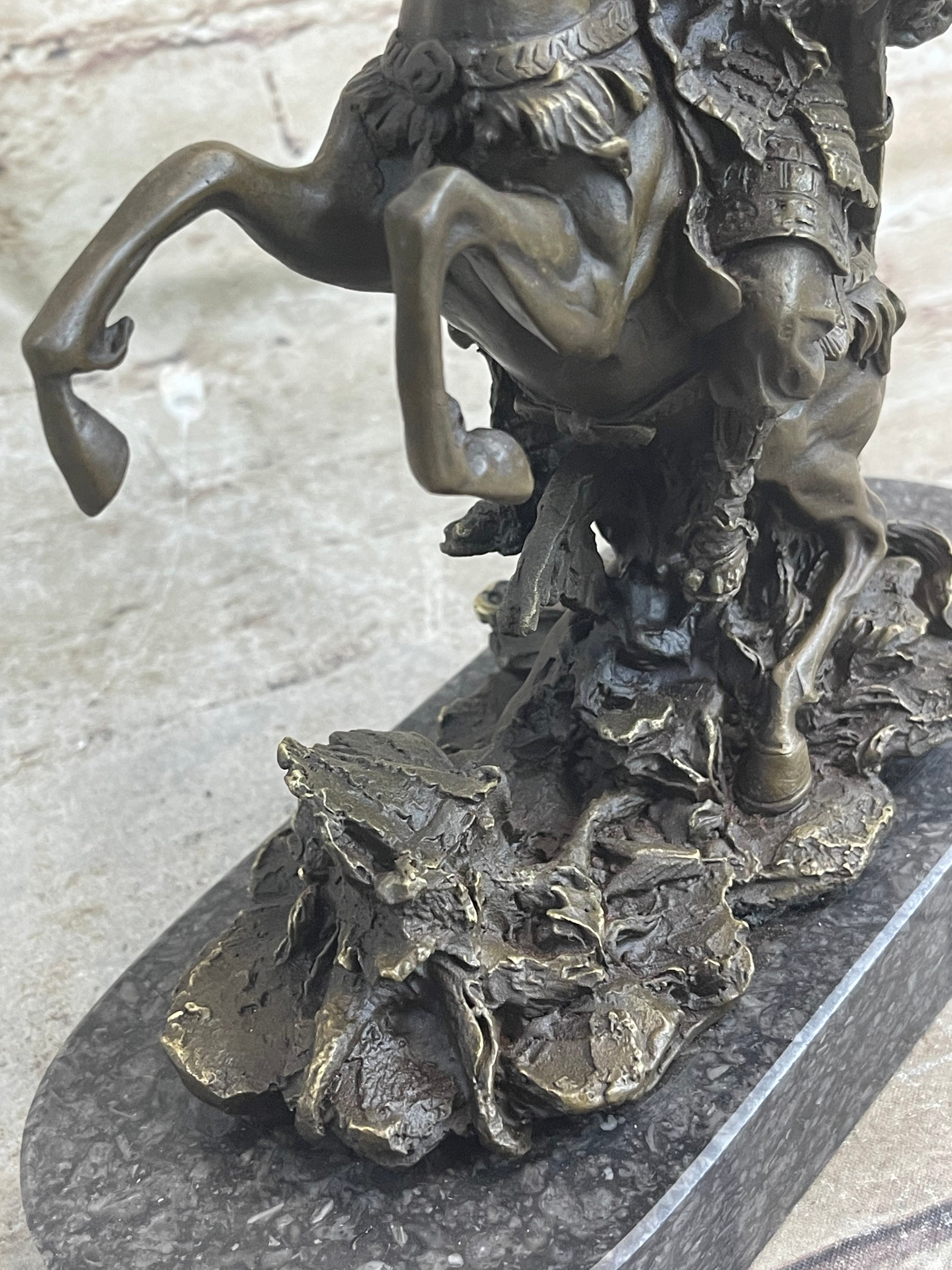 Whether displayed in your home or office, this magnificent bronze statue will serve as a striking testament to the legacy of the Samurai warriors and the unwavering dedication they embodied. Allow the presence of this exceptional artwork to transport you to a time of valor and chivalry, evoking a sense of awe and admiration for these legendary figures of the past.Bronze Dimensions with Marble Base: Height 12" X Width 8"