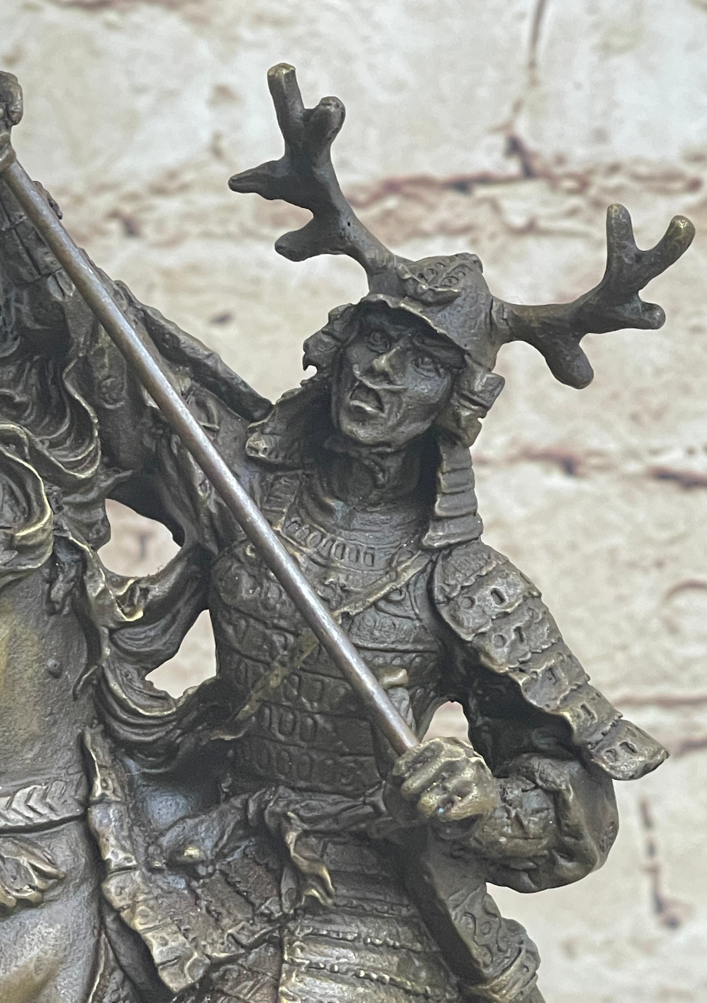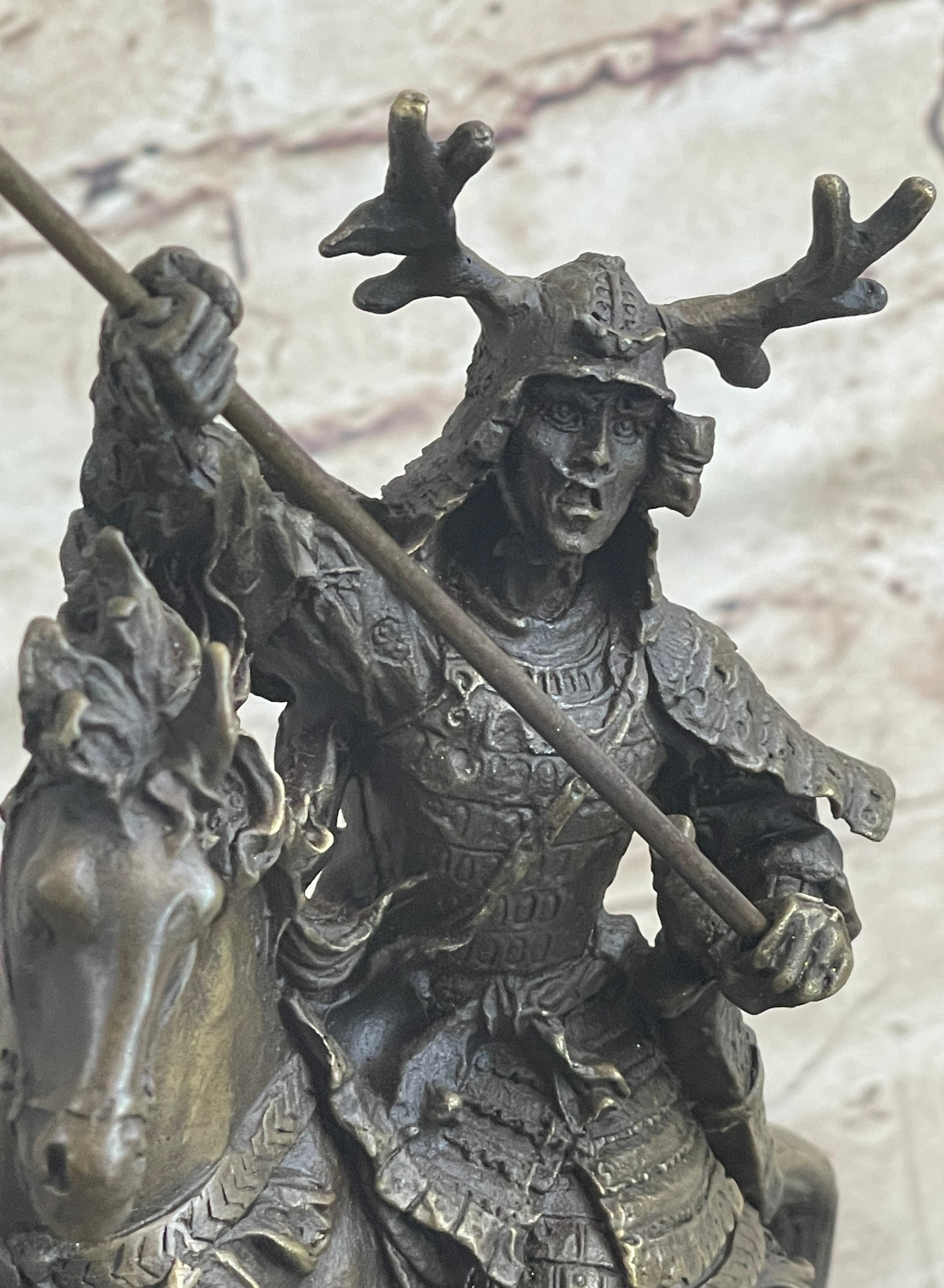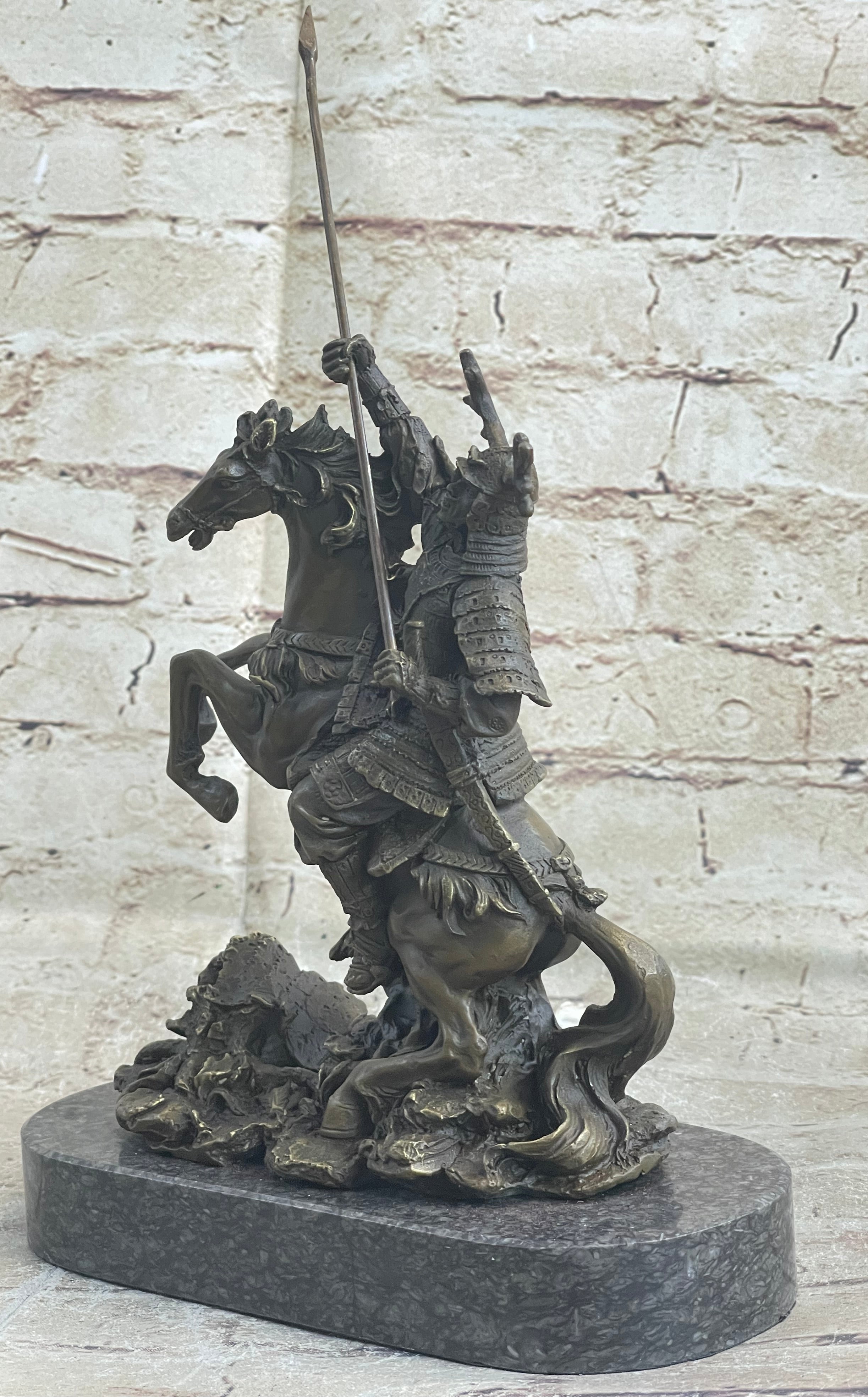 Japanese Samurai Warrior on Horseback Bronze Statue Sculpture Figure on Marble Base