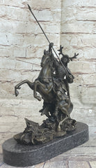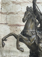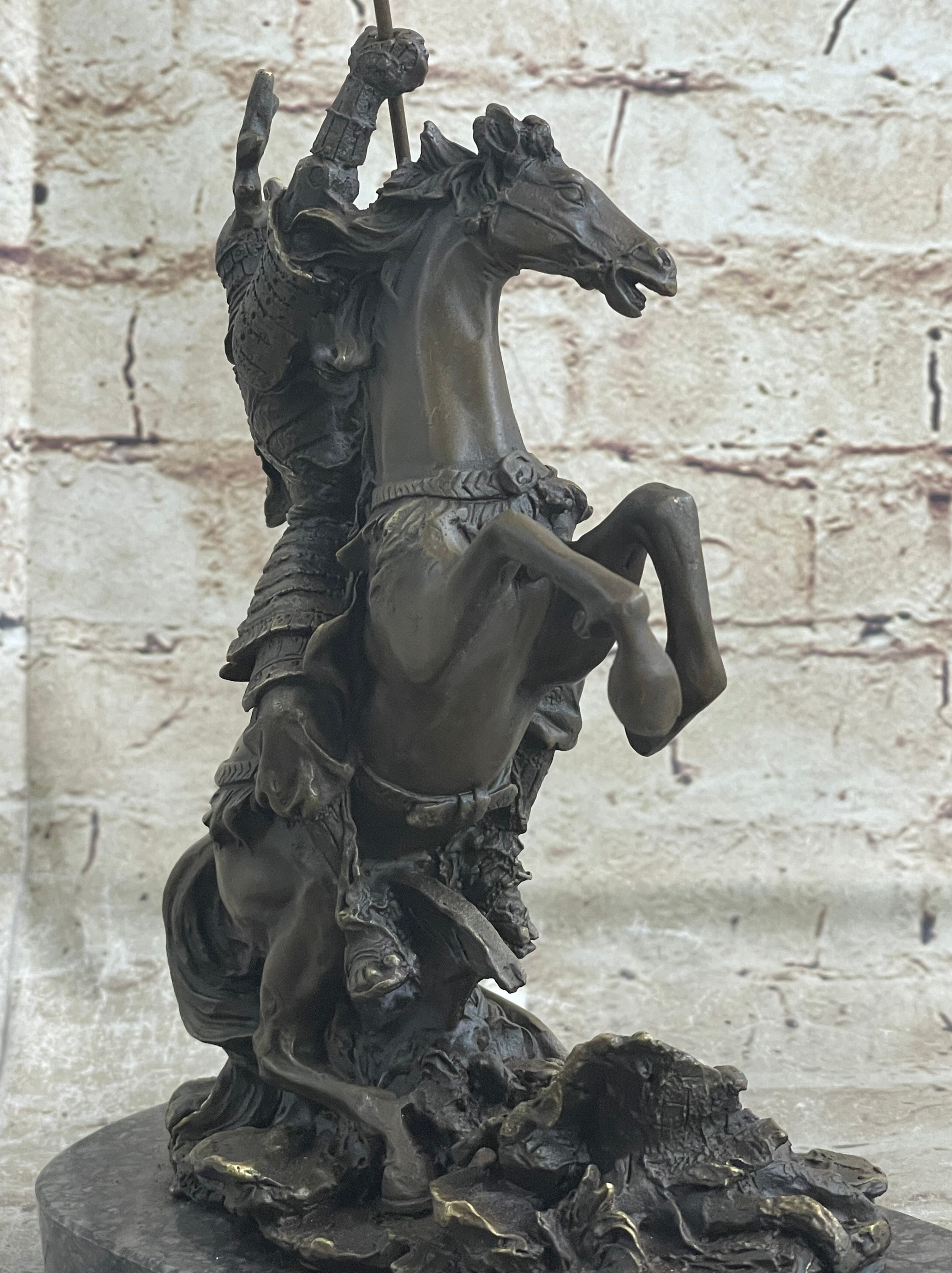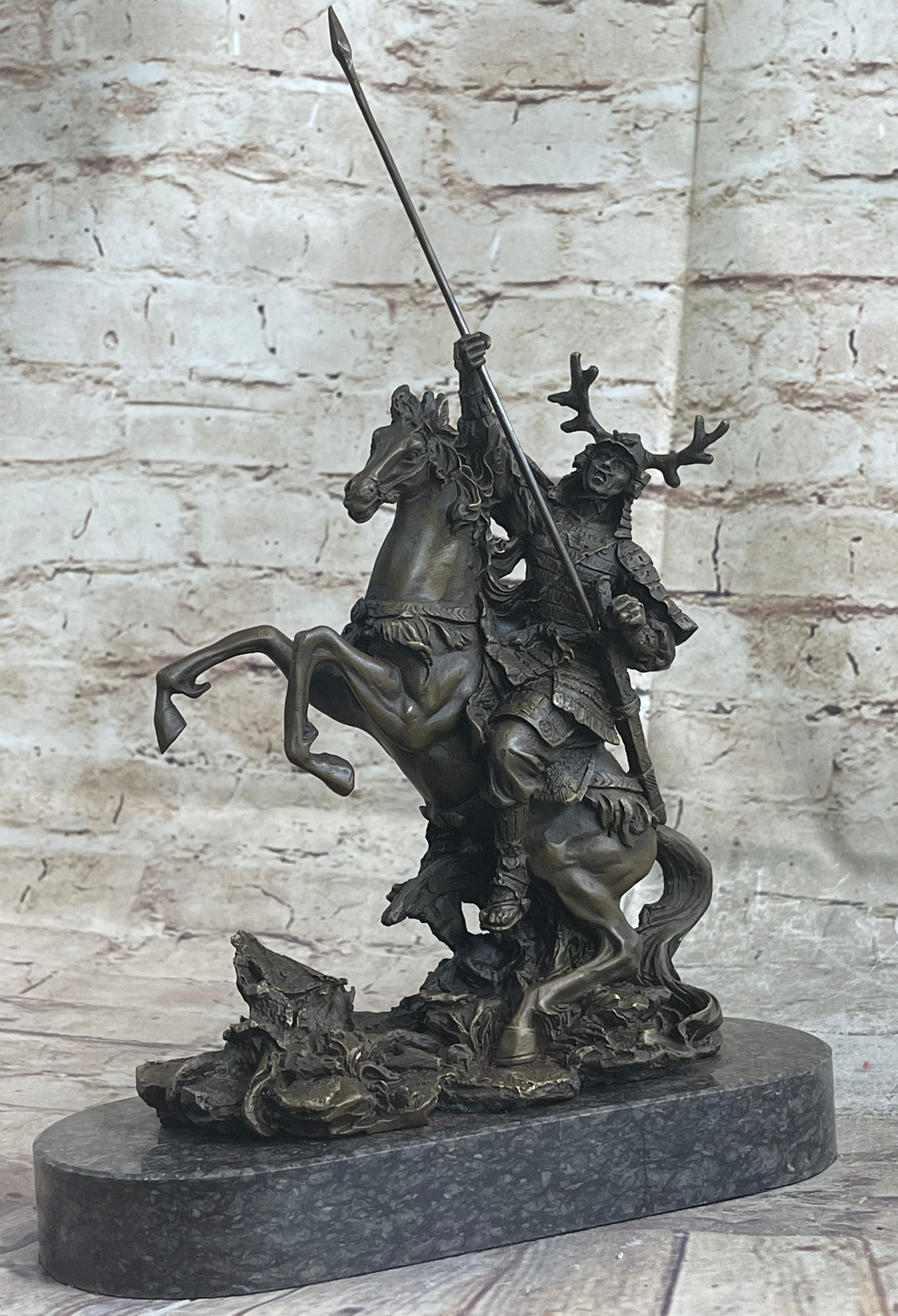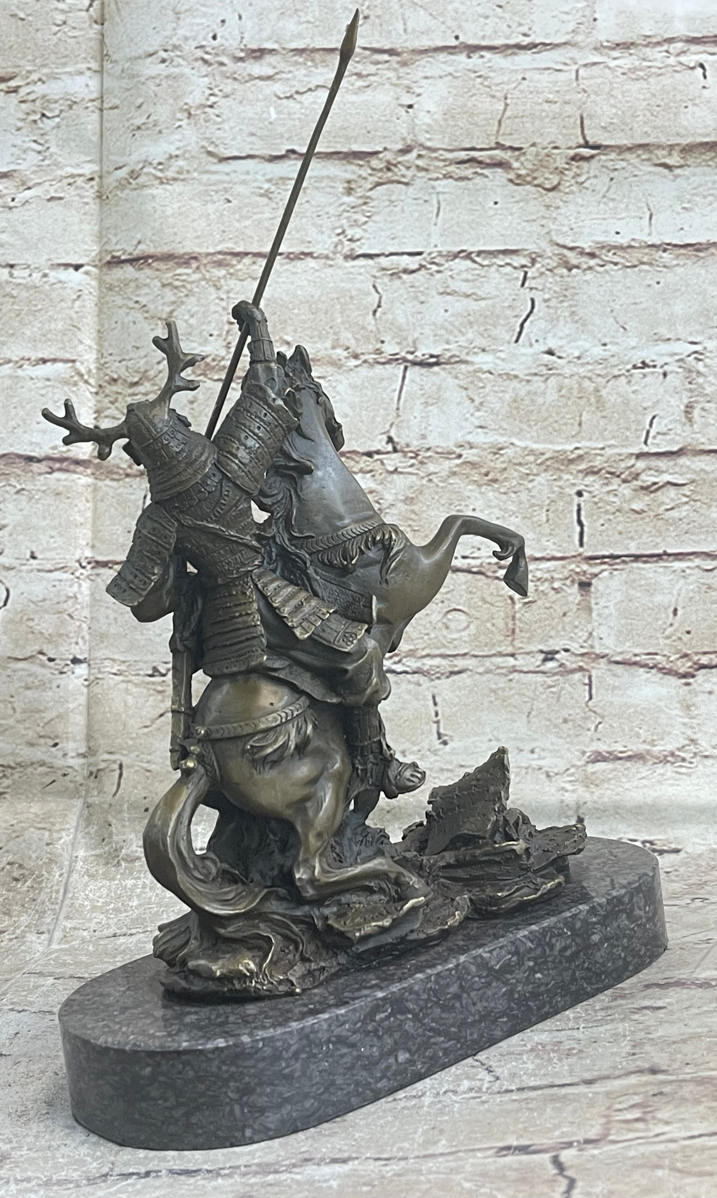Japanese Samurai Warrior on Horseback Bronze Statue Sculpture Figure on Marble Base