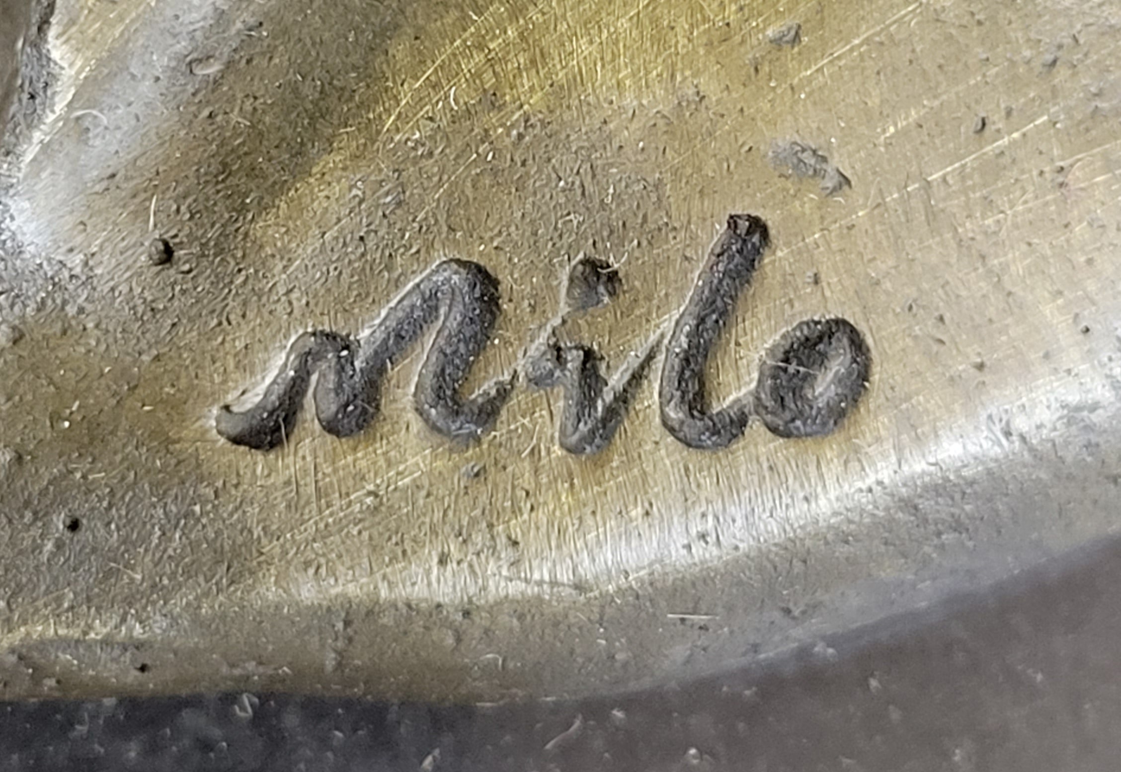 Crafted entirely from bronze, this sculpture showcases the meticulous artistry and attention to detail that distinguishes it as a true masterpiece. Resting upon a sleek black marble base, the sculpture exudes an air of sophistication and refinement. To authenticate its origin and artistic excellence, it proudly bears the signature of the renowned artist, Milo.