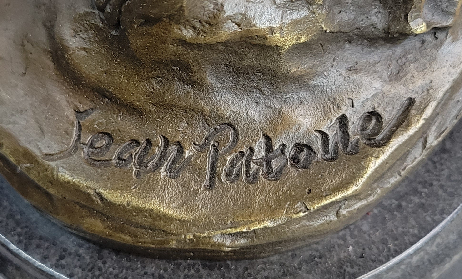 Created using the lost wax method, a traditional technique known for its ability to capture intricate details and nuances, this bronze sculpture is a true work of art. The rich patina adds depth and dimension to the piece, enhancing its visual appeal. Whether displayed in a home, office, or gallery, this Jean Patoue Art Nouveau bronze sculpture will evoke a sense of joy and celebrate the season of new beginnings.Bronze Dimensions with Marble Base: Height 19.5" X Width 5.5"