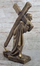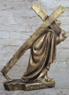 Jesus Christ Carrying Cross Crucifix Passion Cold Cast Bronzed Resin Sculpture Figurine