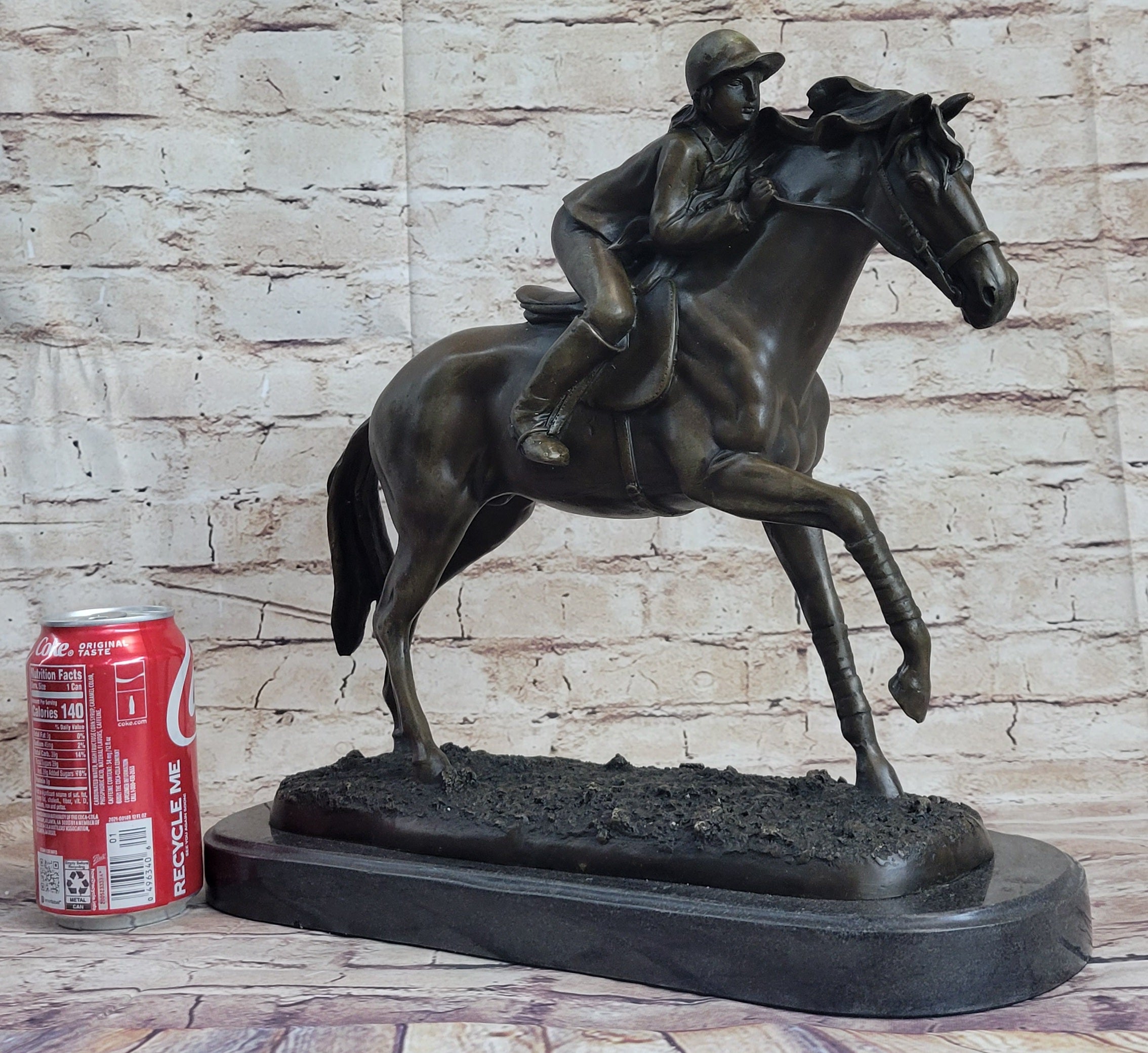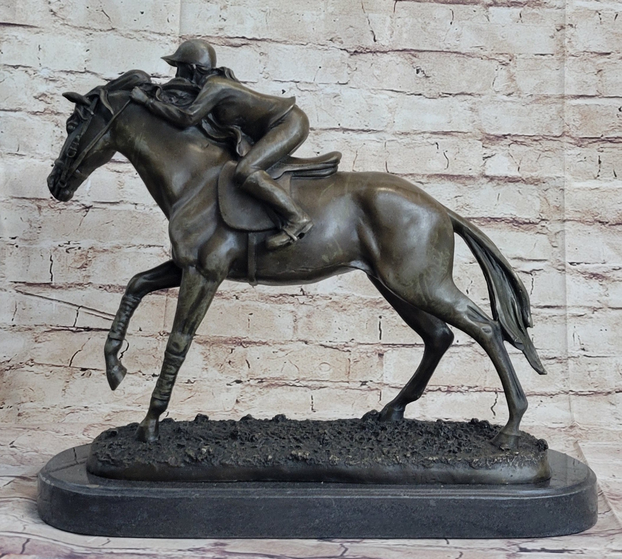 Jockey Equestrian Horse Race Bronze Sculpture Statue Figure Original Signed Art