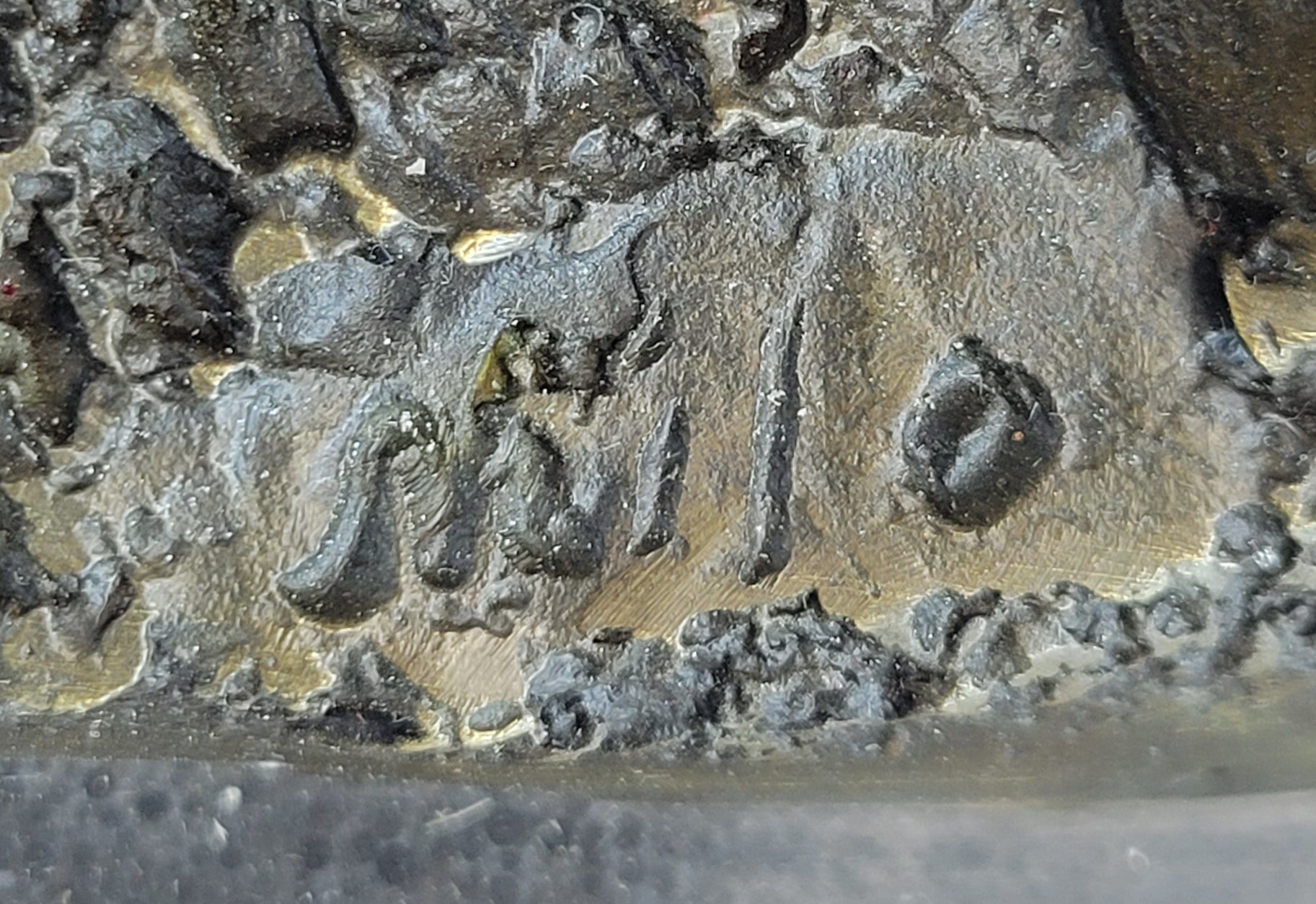 This remarkable piece is not only an action-packed work of art but also a meaningful gift for avid horse enthusiasts or individuals with unwavering determination in their lives. Crafted with precision, the sculpture is made using the time-honored "Lost Wax Method," which preserves every intricate detail. It features a brown patina finish for lasting preservation and proudly stands atop a black marble base, bearing the signature of the acclaimed artist, Milo. Displayed prominently, it becomes a focal point that celebrates the spirit of competition and the pursuit of victory.Bronze Dimensions with Marble Base: Height 13" X Width 15"
