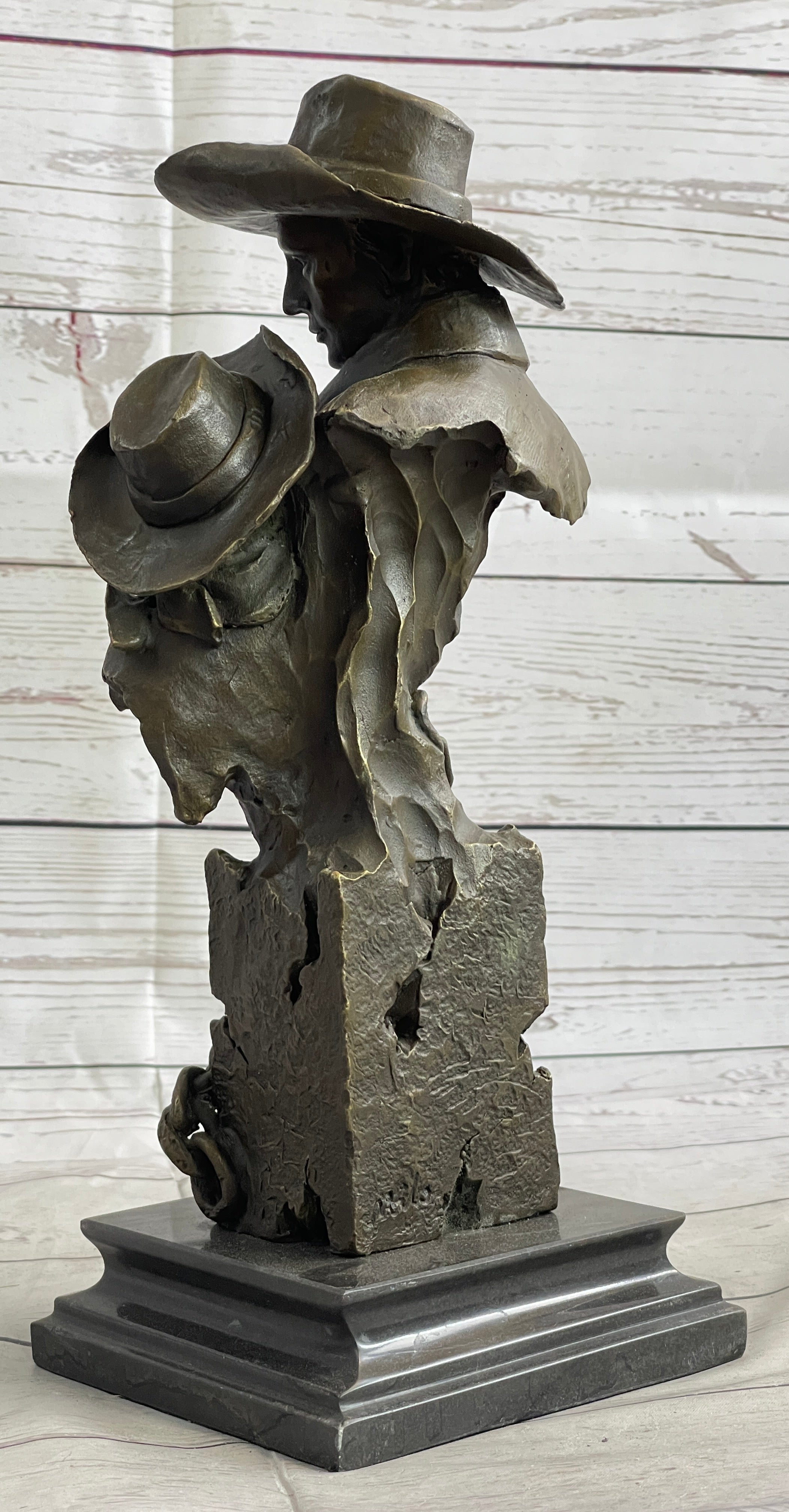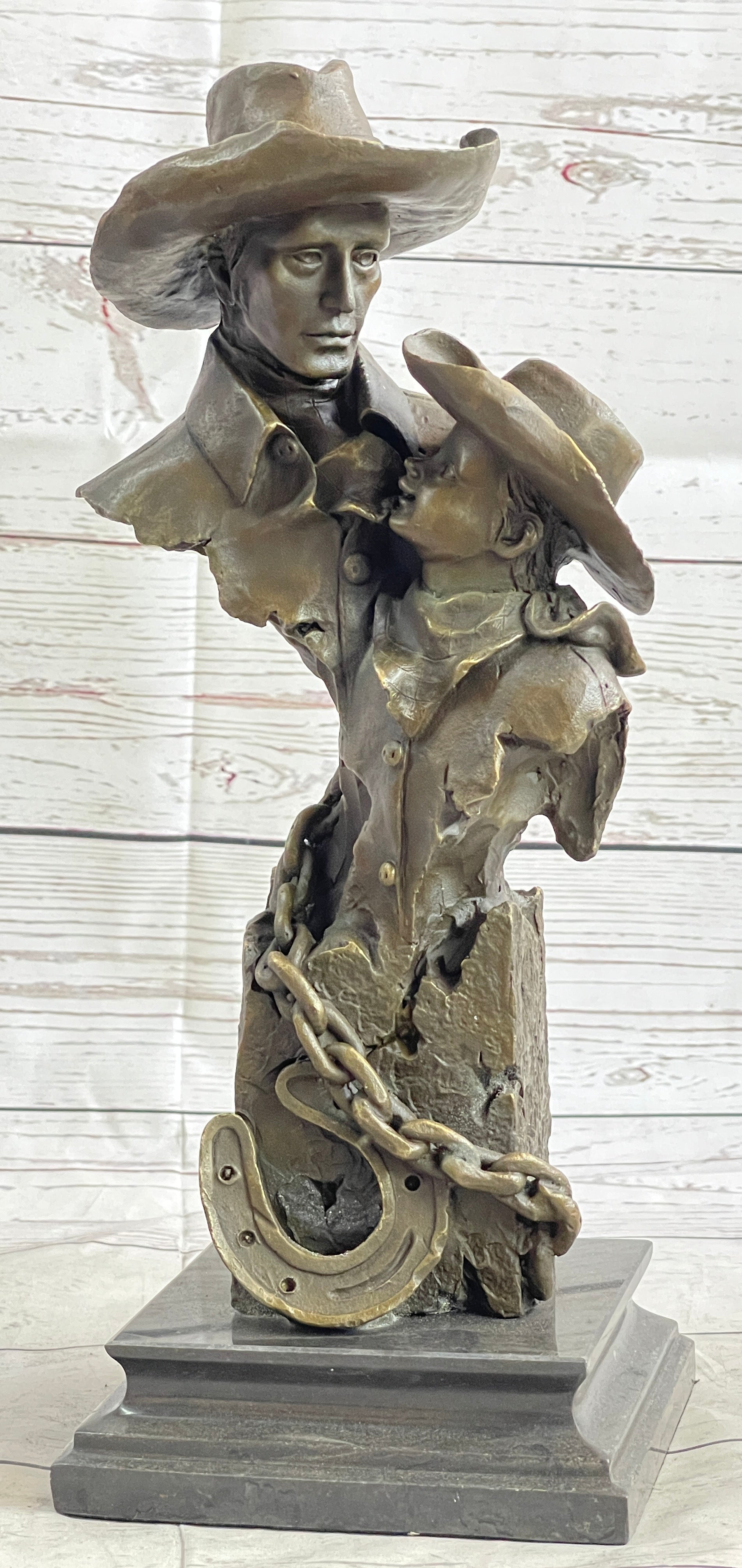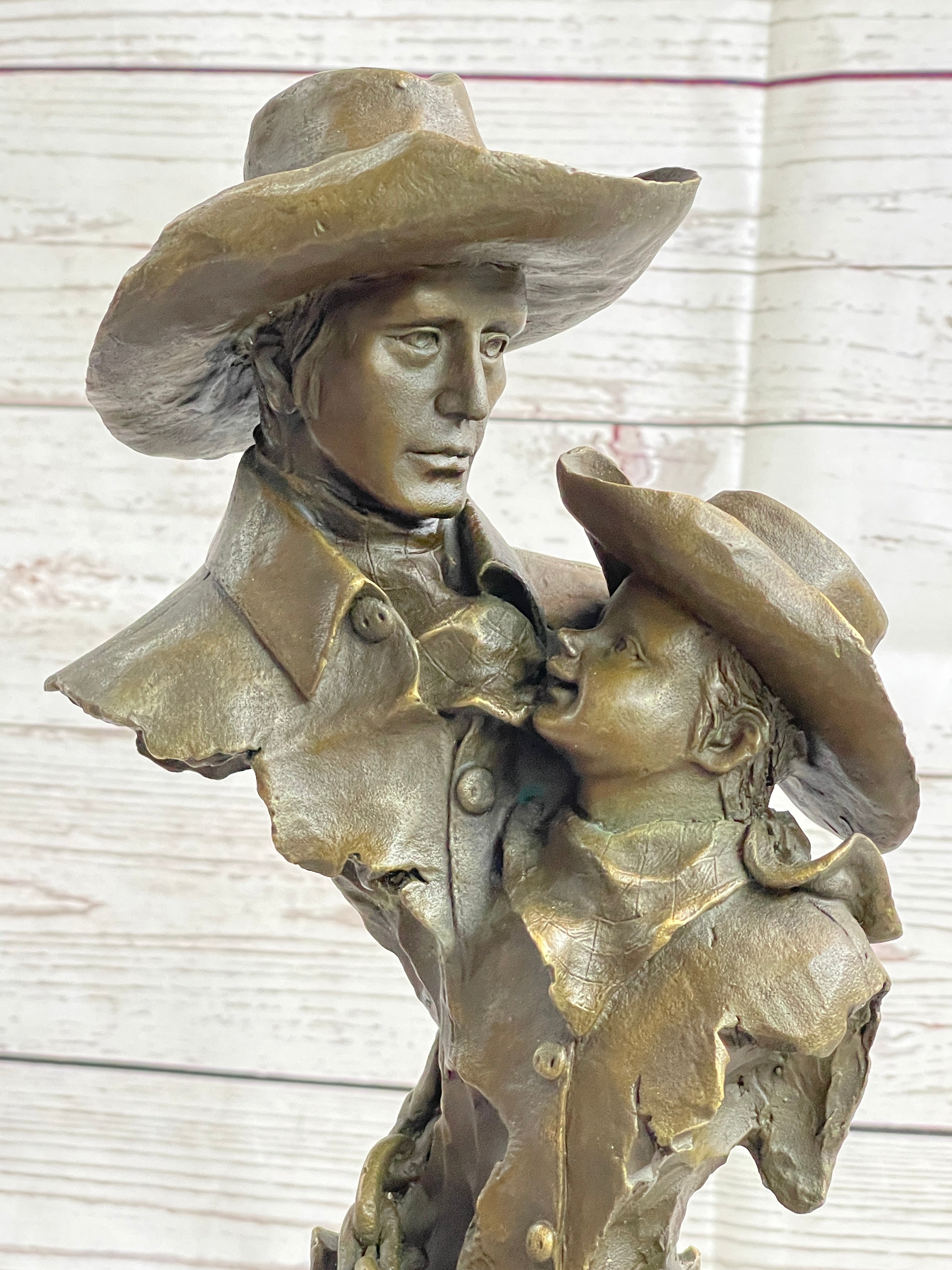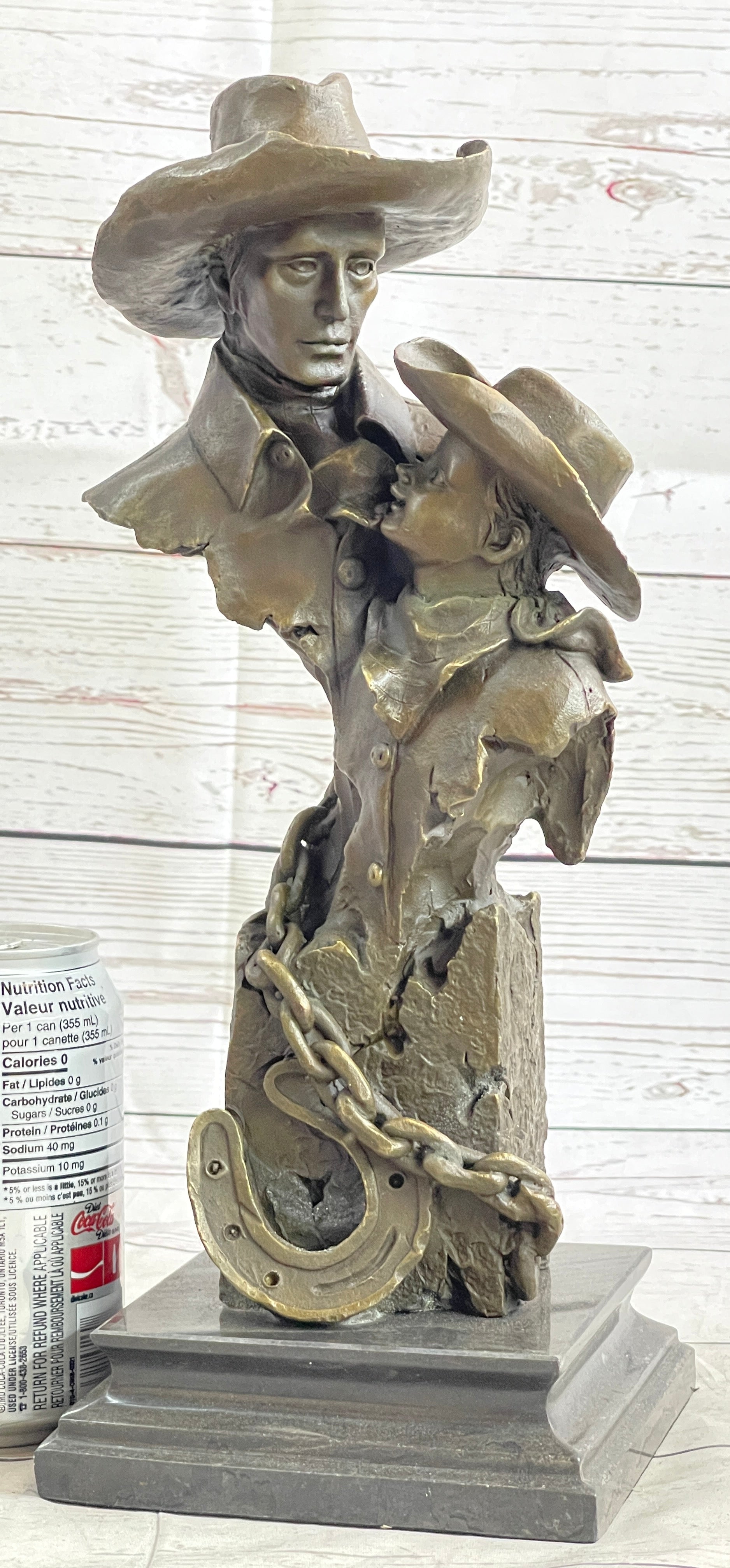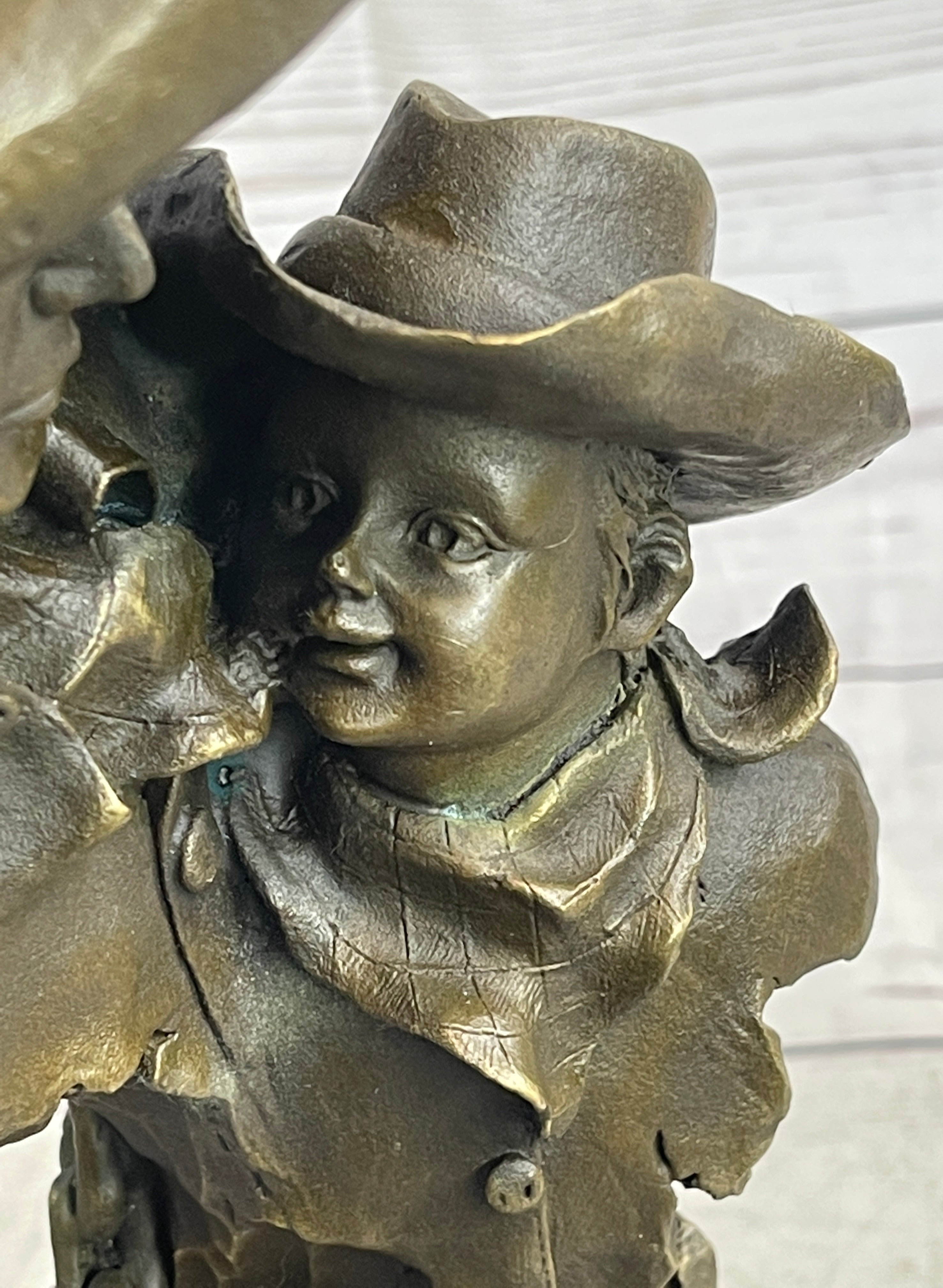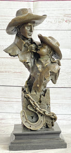 Just Like Papa Western Cowboy and Son Bronze Bust Statue Sculpture 13" x 6"