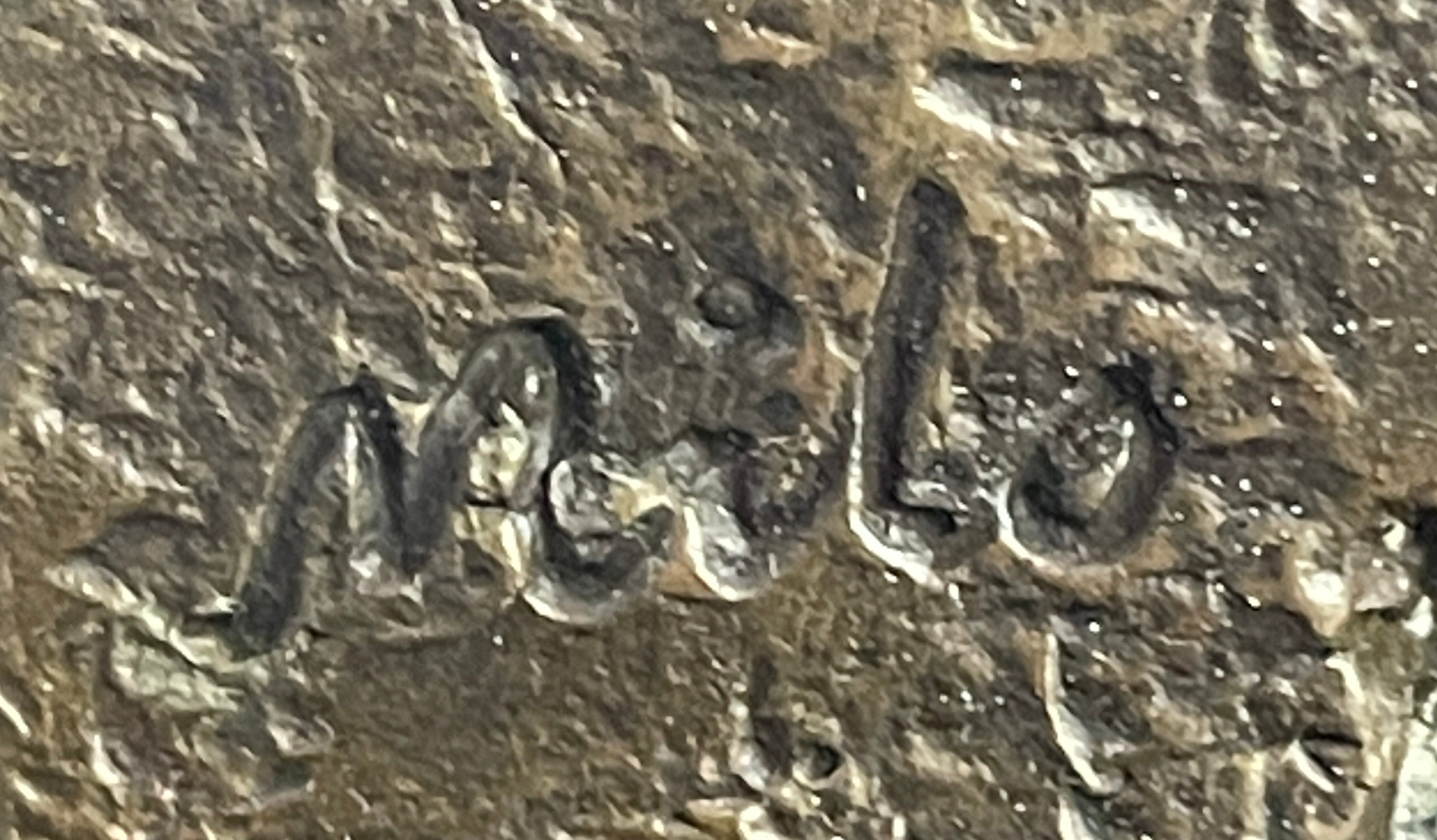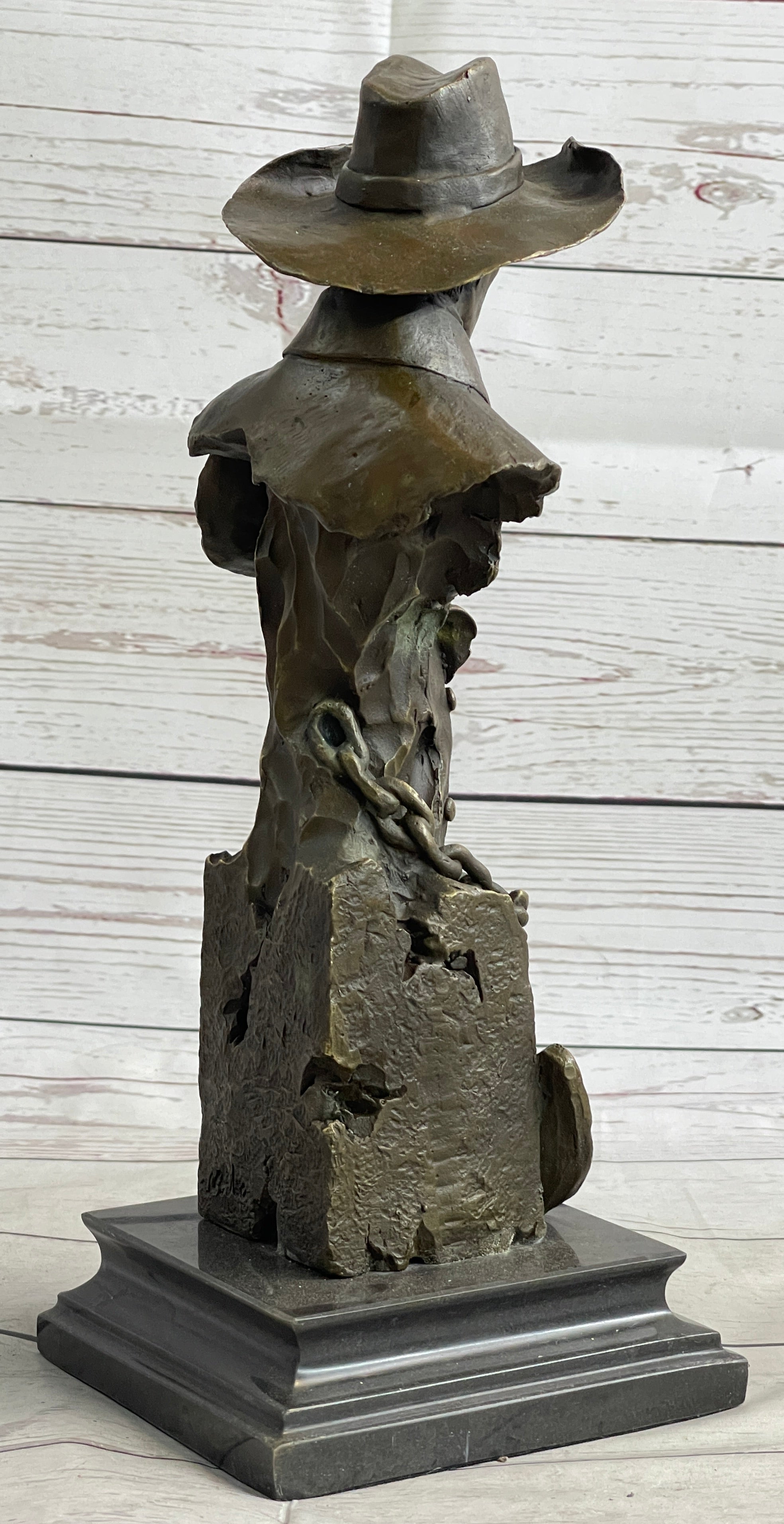 "Just Like Papa" by renowned artist Milo is a stunning sculpture that captures the essence of the western way of living. With a brown patina finish on a rich marble base, this piece exudes warmth and authenticity. Signed by the artist Milo, it bears testament to his skill and craftsmanship.