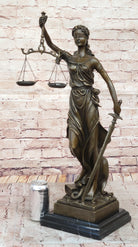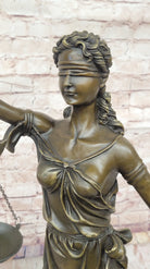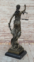 Justica Themis Blind Lady of Justice Bronze Statue Sculpture on Marble Base by Mayer