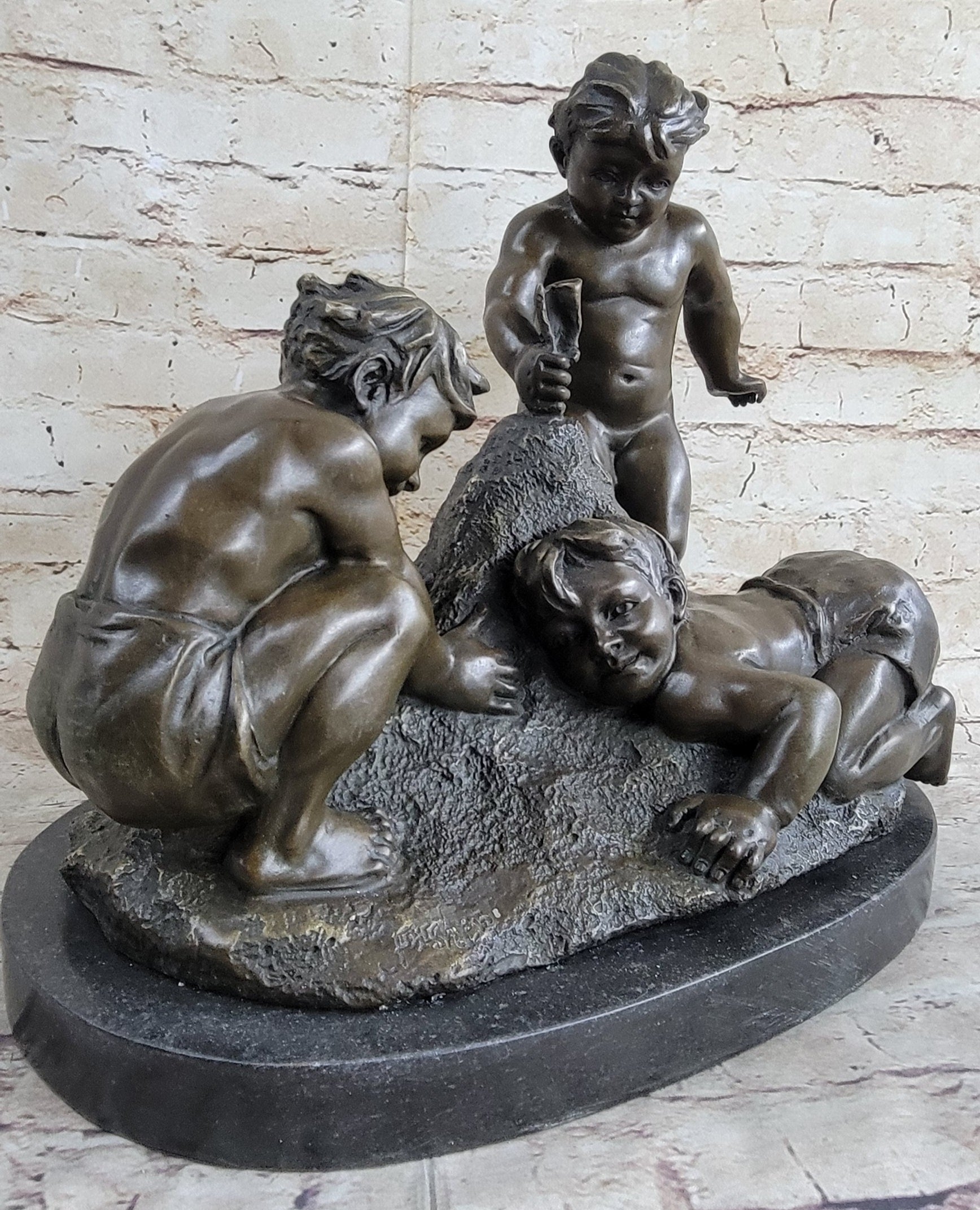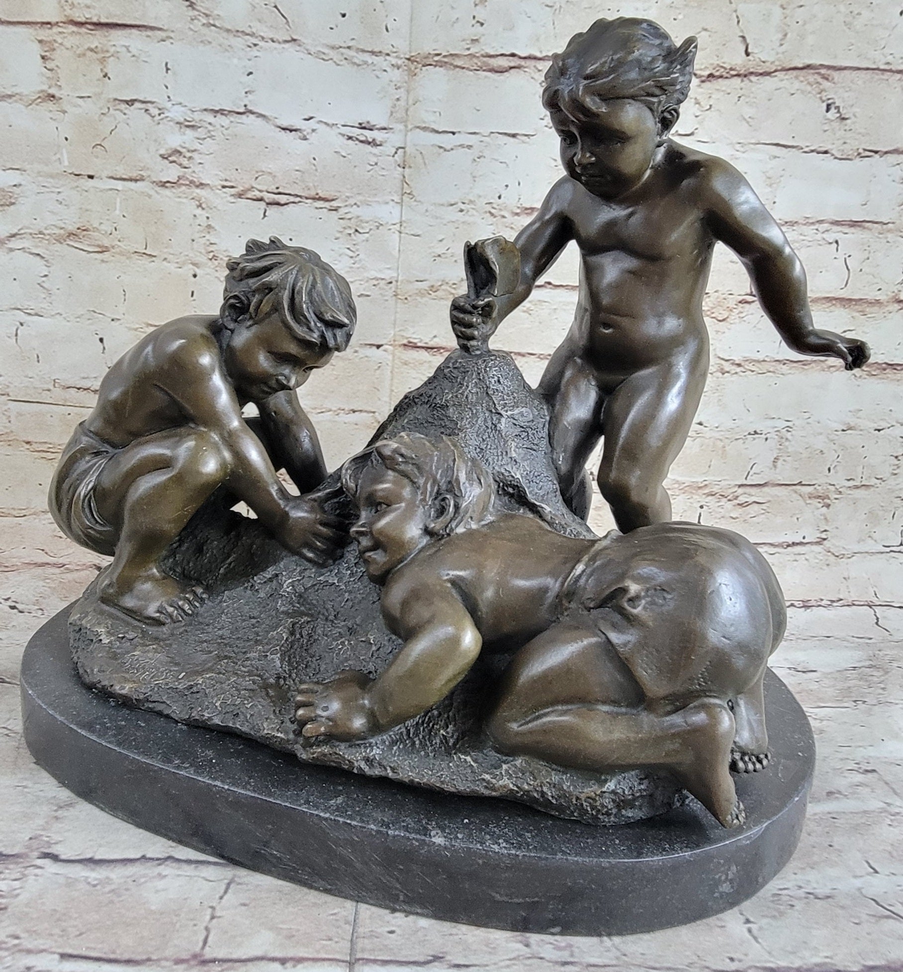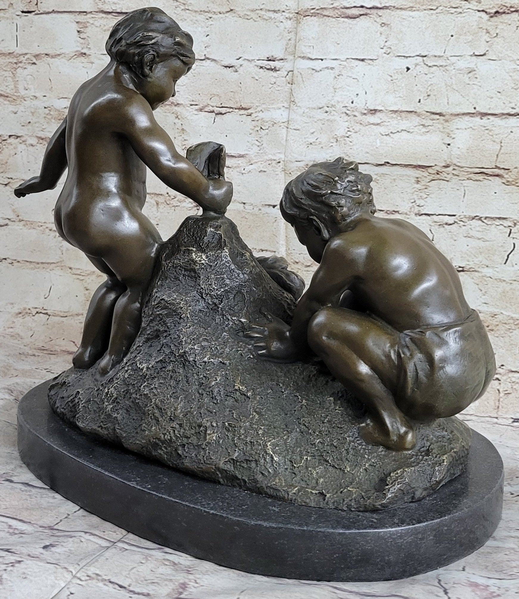 Kids Boys Playing on the Beach Sand Bronze Statue Sculpture Original Art 13" x 14"