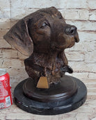 Labrador Retriever Dog Pet Bronze Bust Sculpture Statue Figure on Marble Base