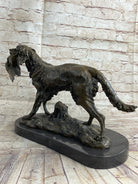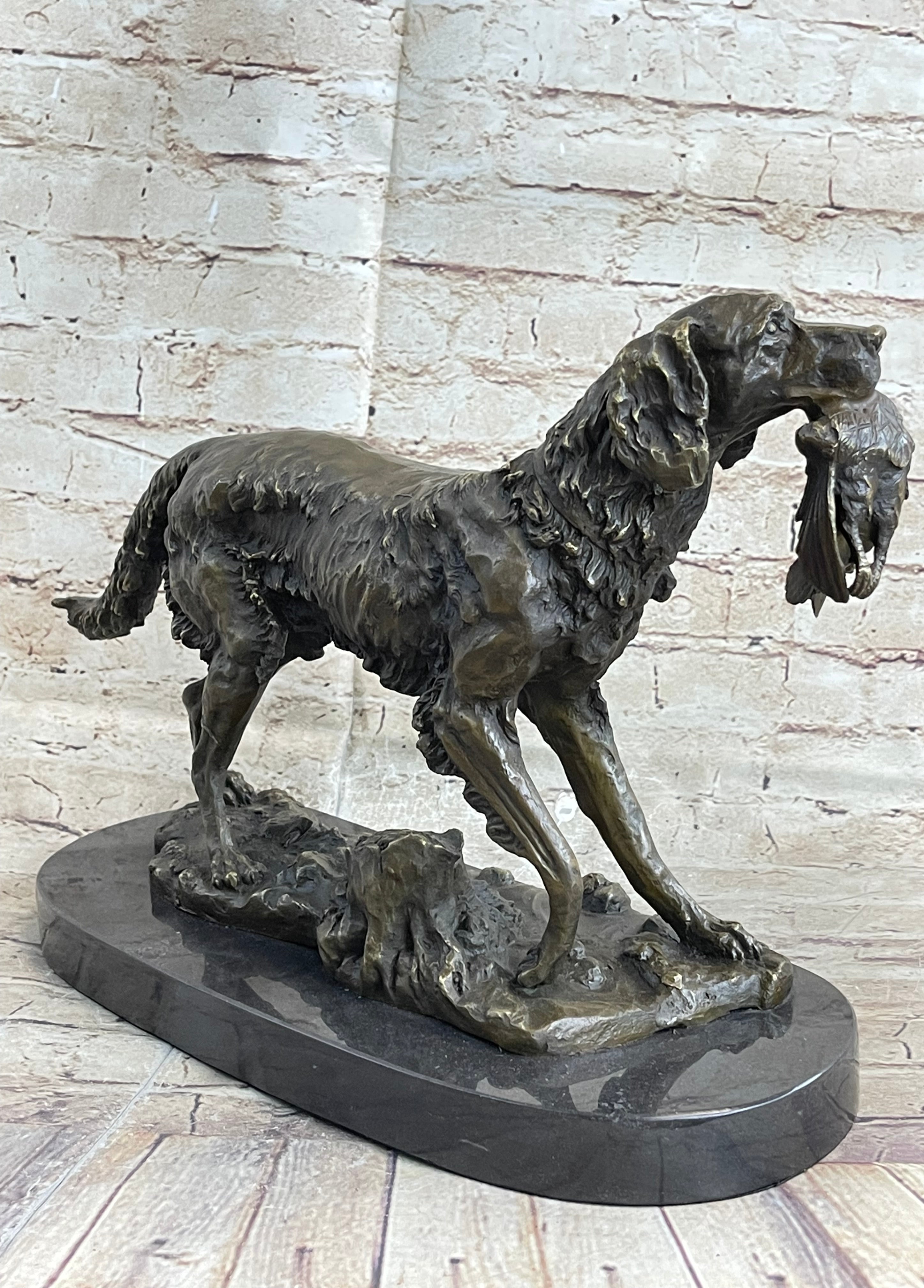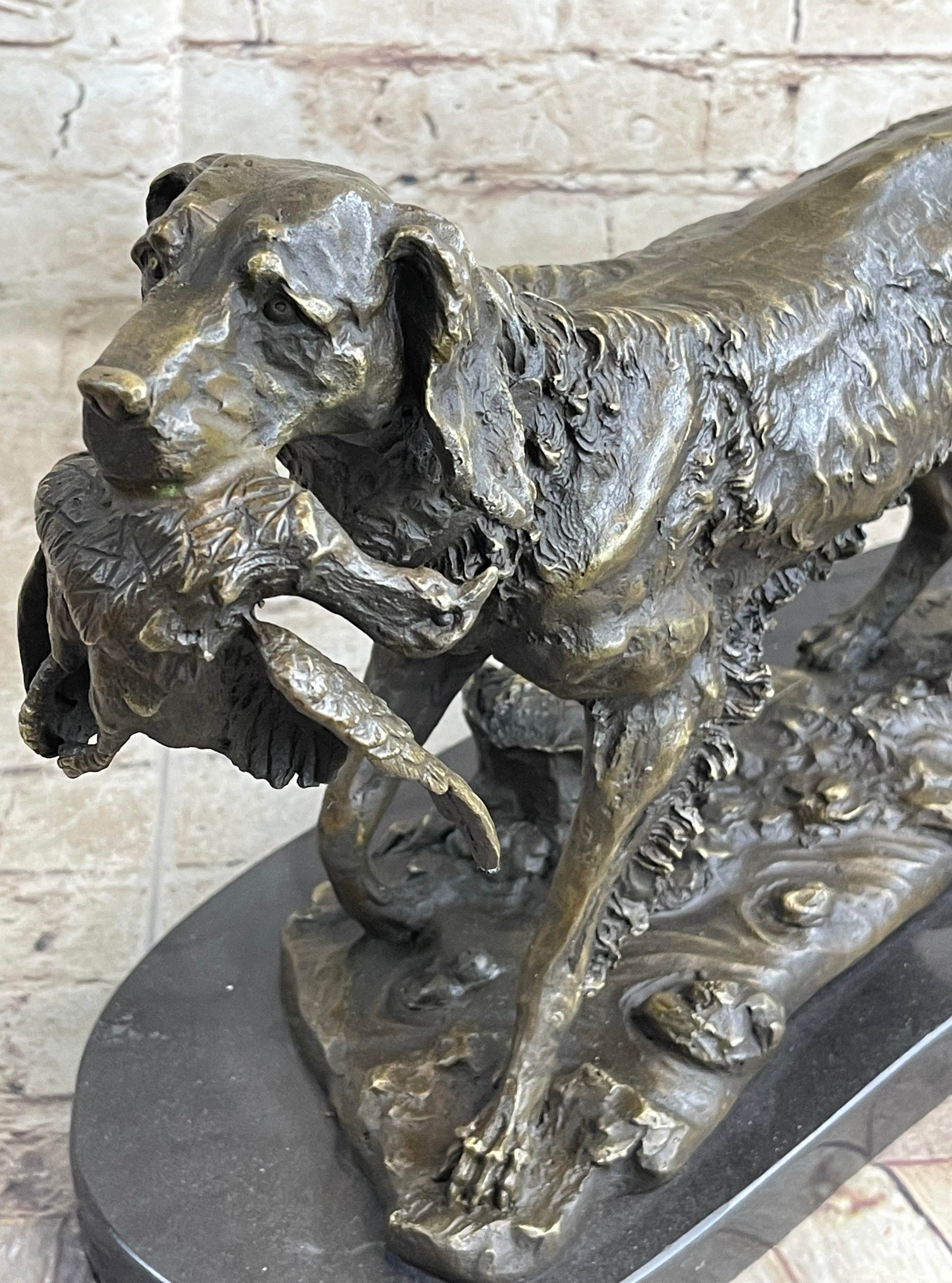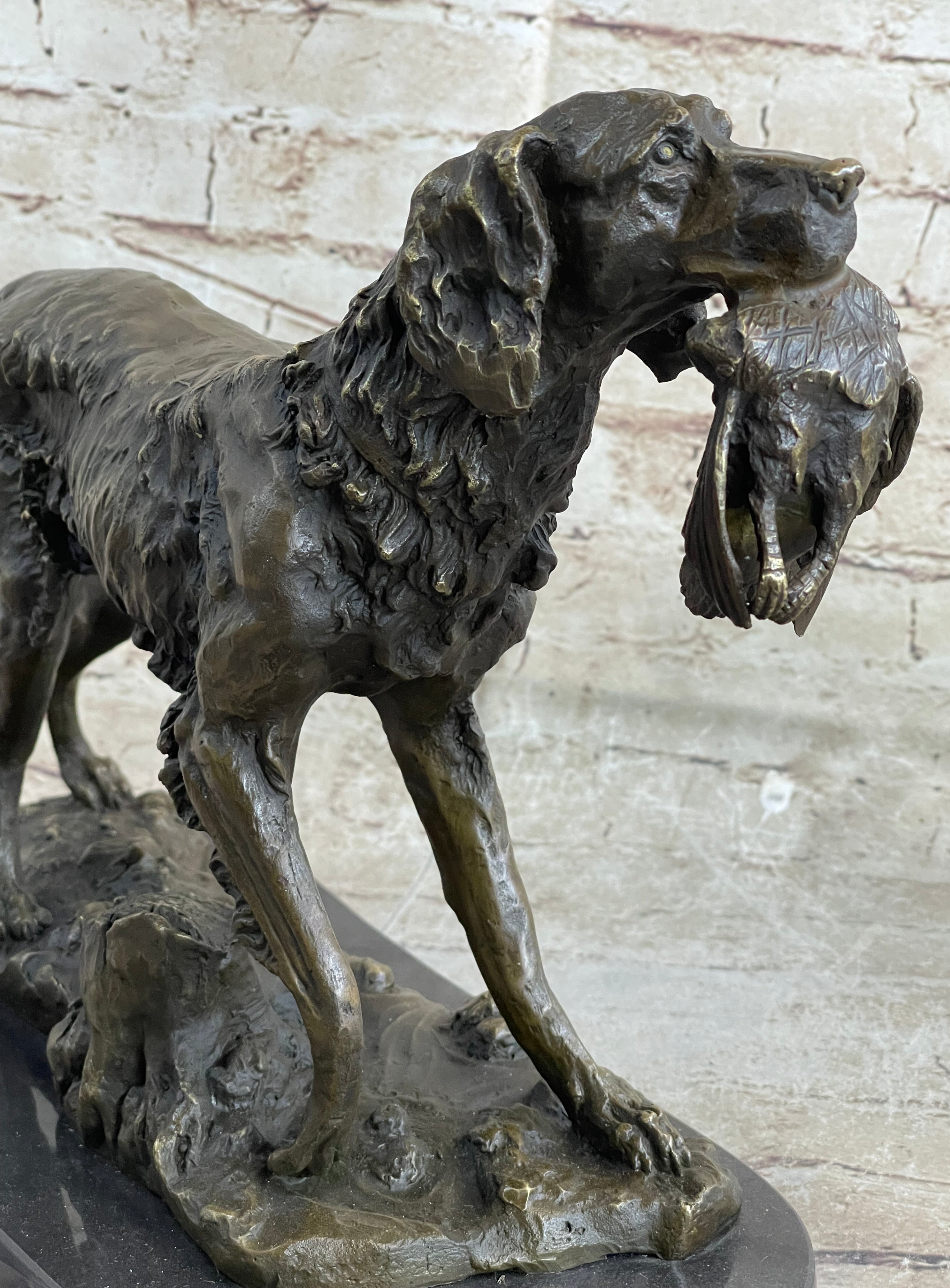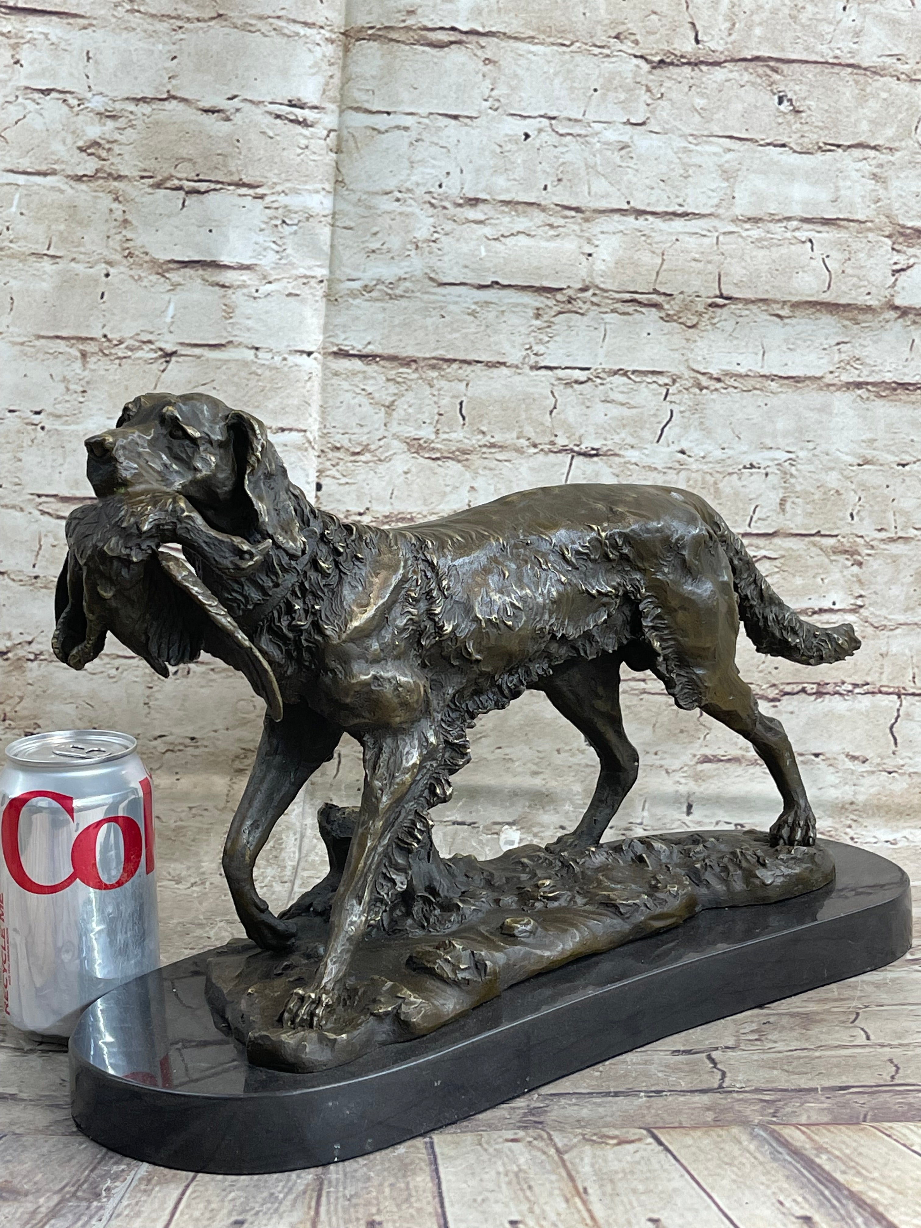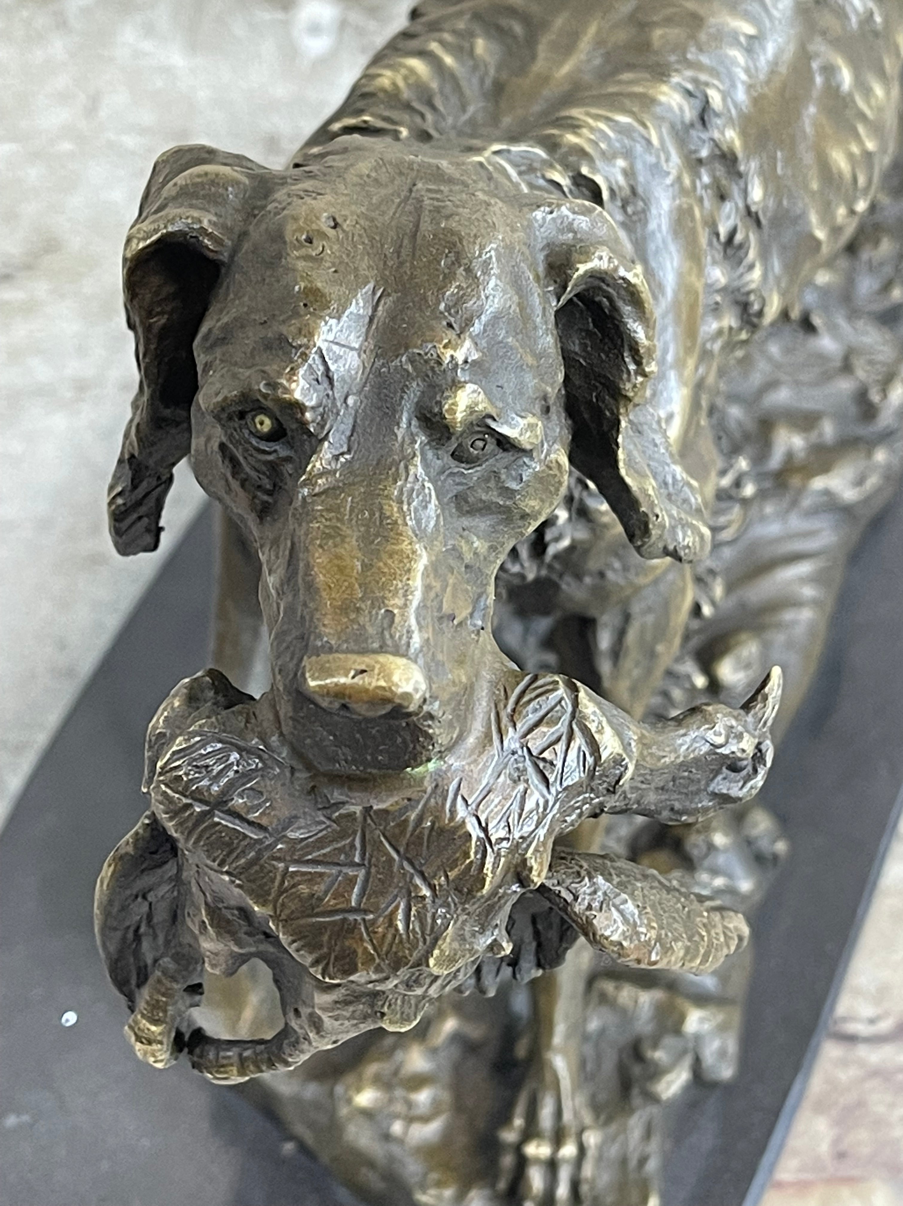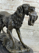 Labrador Retriever with Bird Duck in Mouth Bronze Statue Sculpture Hunting Decor Marble Base