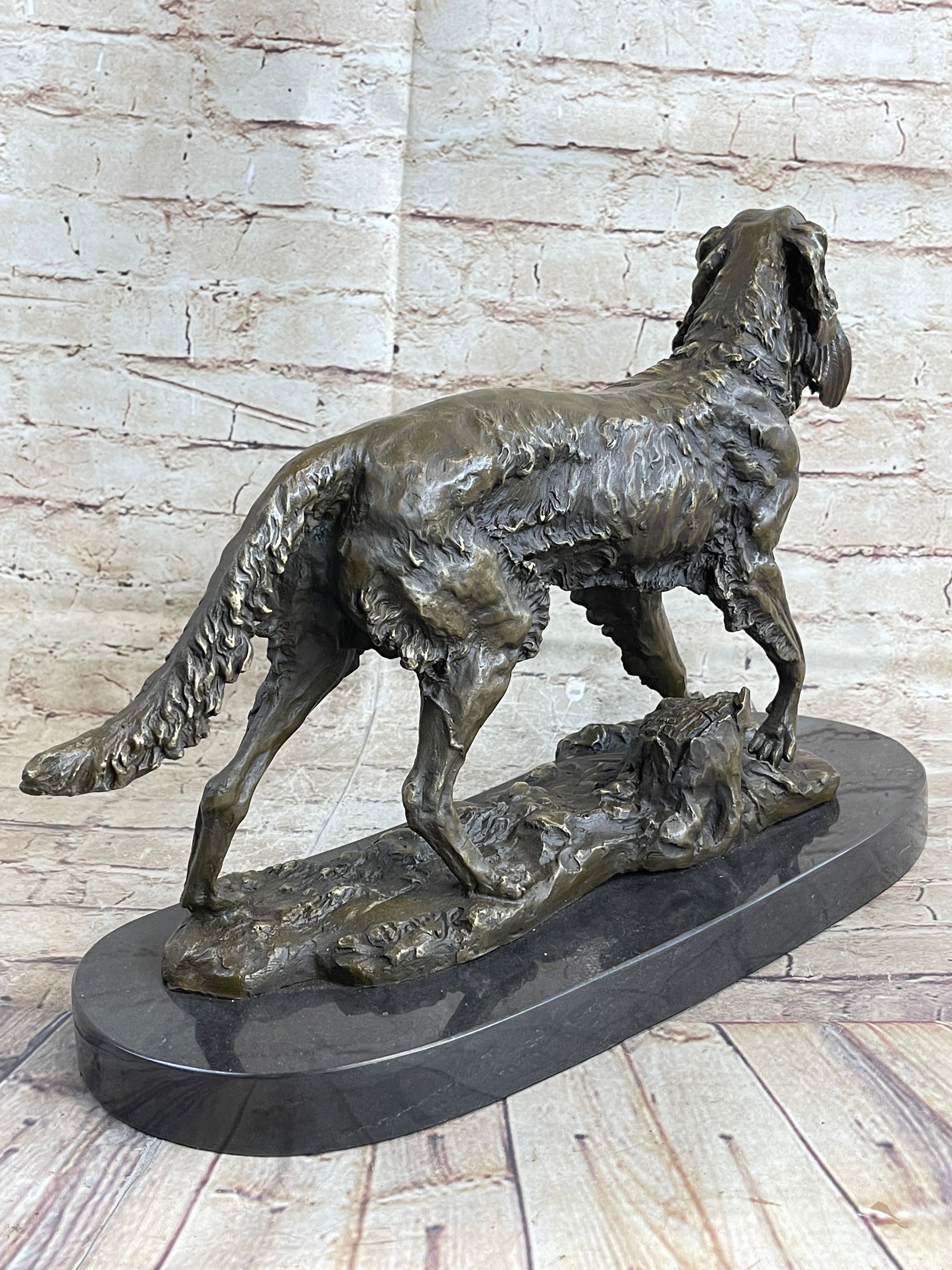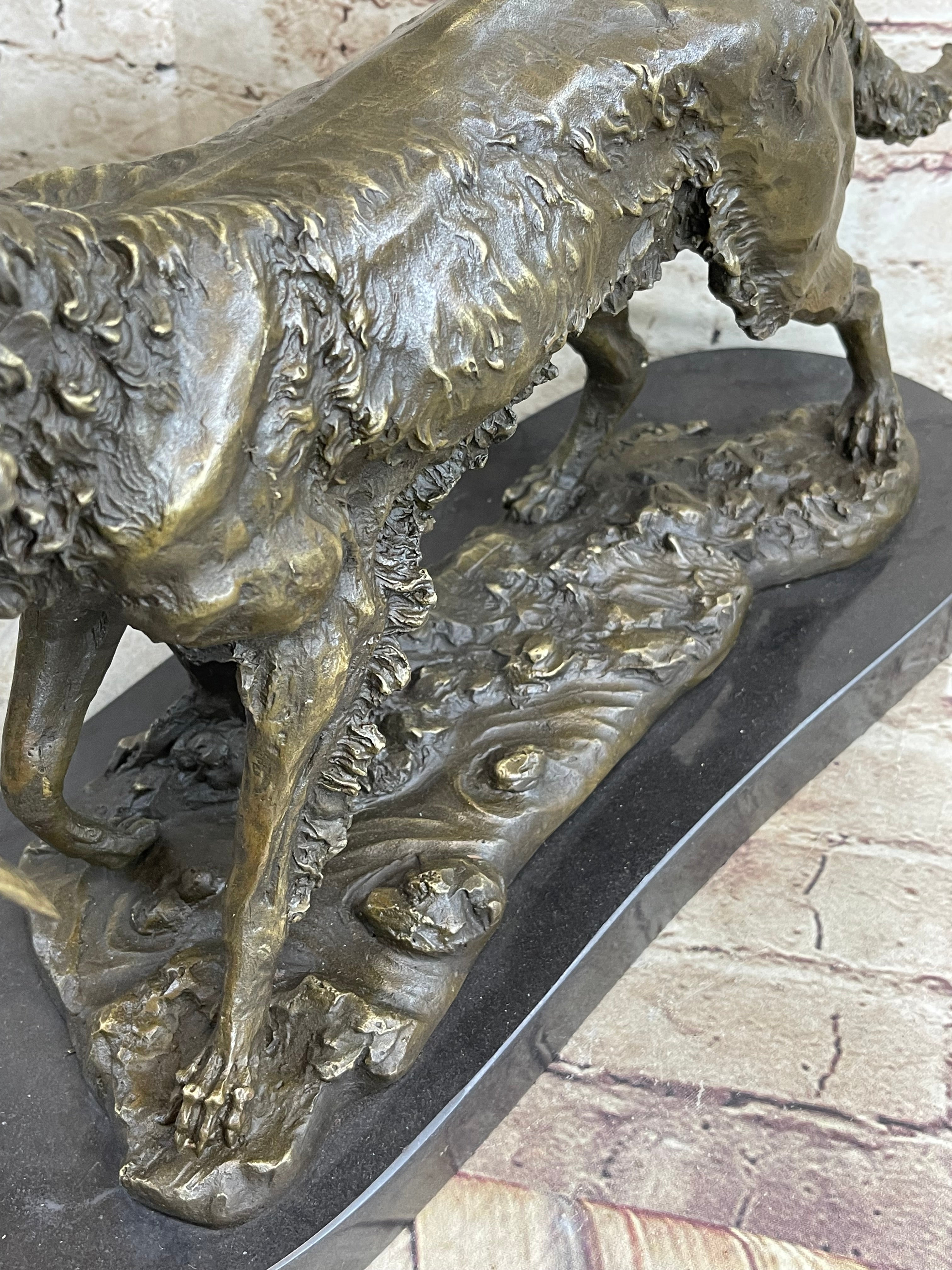 Crafted using the revered lost wax method, this sculpture exemplifies the artist's mastery and dedication to their craft. Resting upon a sleek black marble base, it commands attention and serves as a fitting tribute to the beauty and resilience of both canine and avian life. Signed by the esteemed artist Barye, it bears the mark of quality and excellence, further enhancing its value and appeal.
