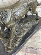 Whether displayed in a home, office, or outdoor setting, this sculpture serves as a timeless symbol of companionship, instinct, and the unbreakable bond between man and animal. As it captures the essence of a moment frozen in time, it invites viewers to pause and contemplate the wonders of the natural world and the inherent majesty of the creatures that inhabit it.Bronze Dimensions with Marble Base: Height 12" X Width 18"