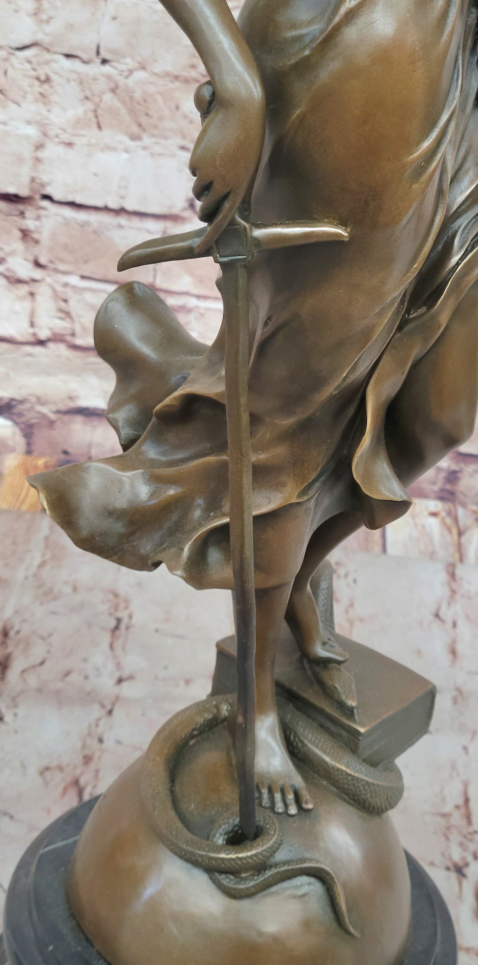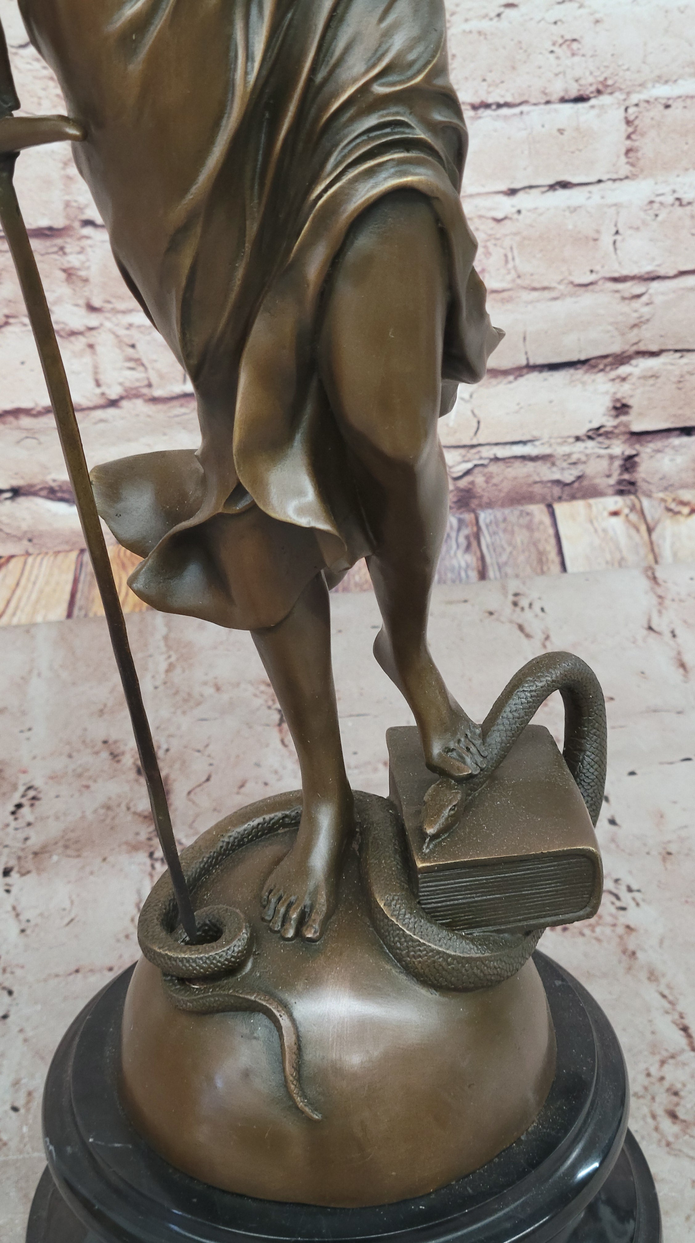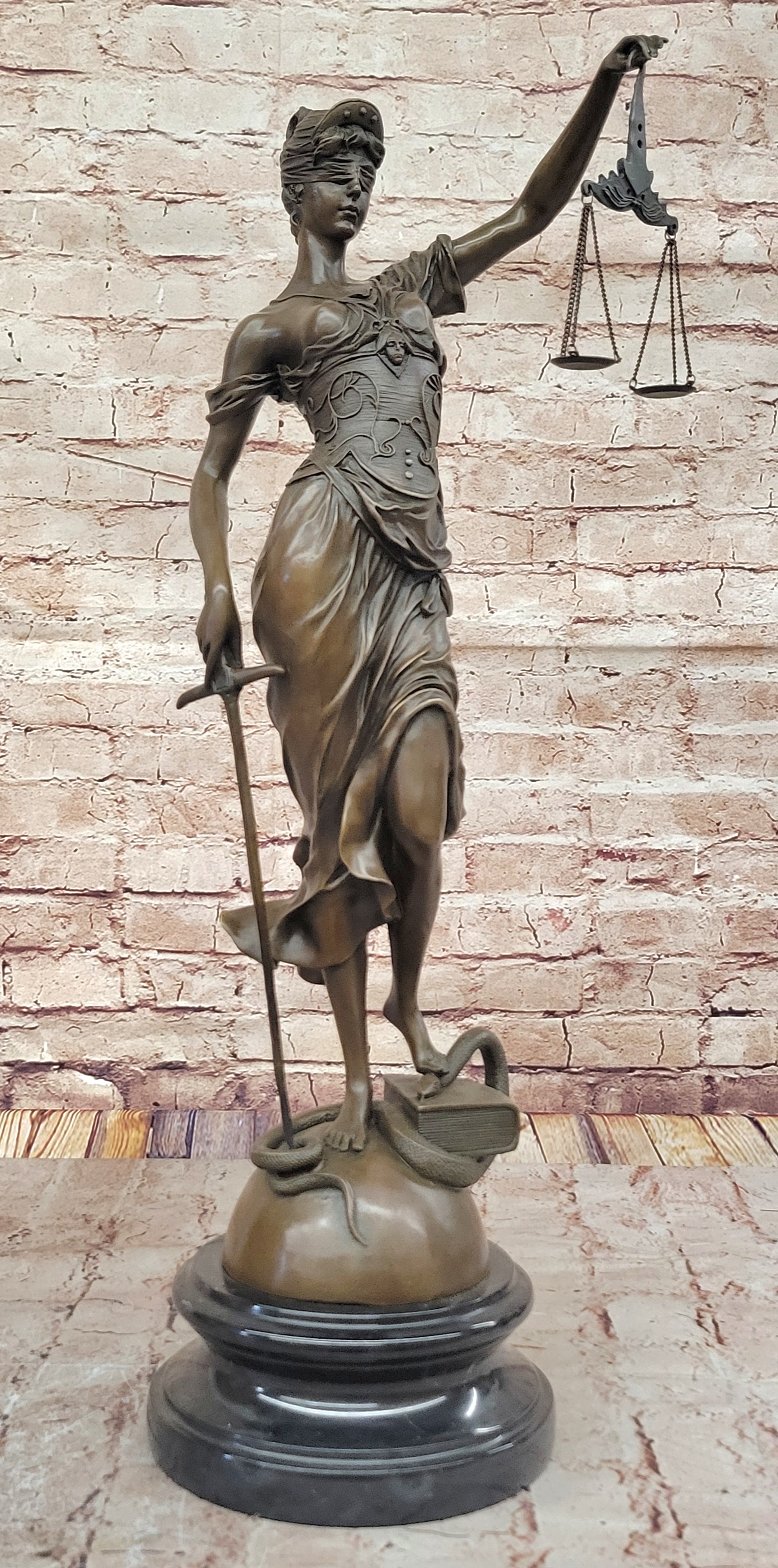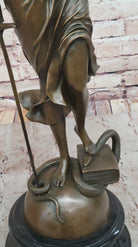 Lady Justice Bronze Sculpture – Detailed Figurine with Scales, Sword, and Snake on Marble Base