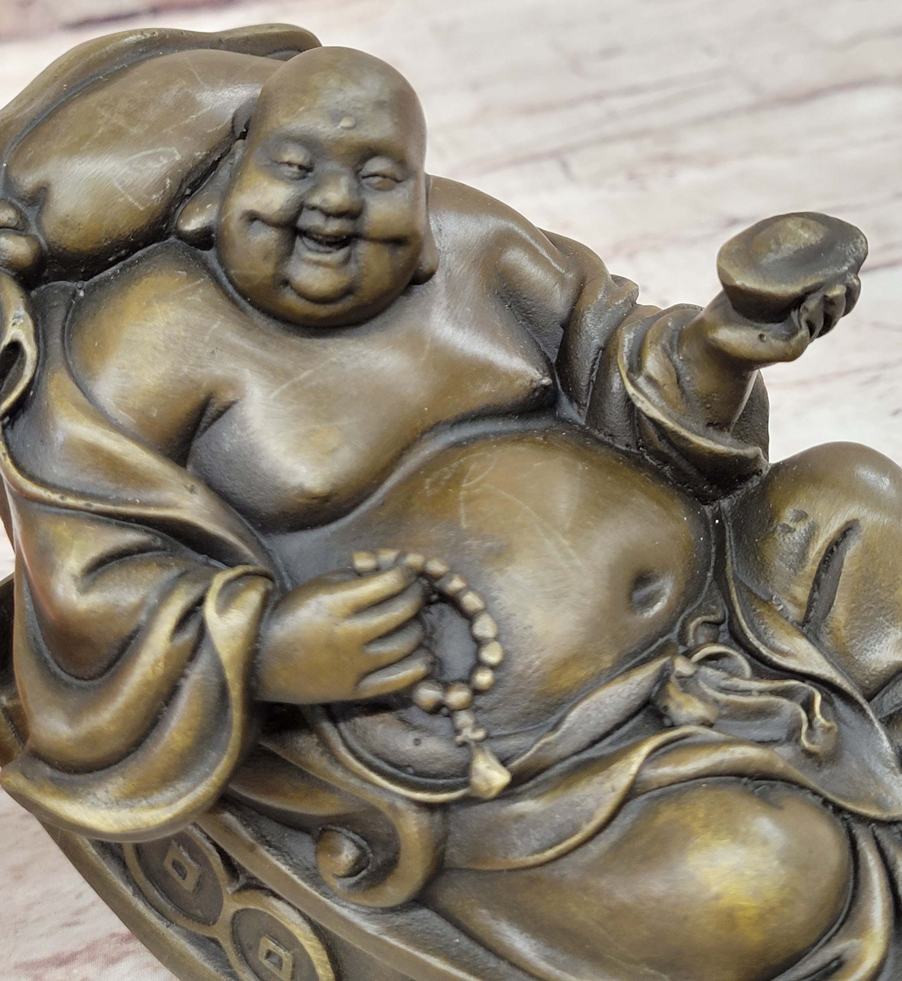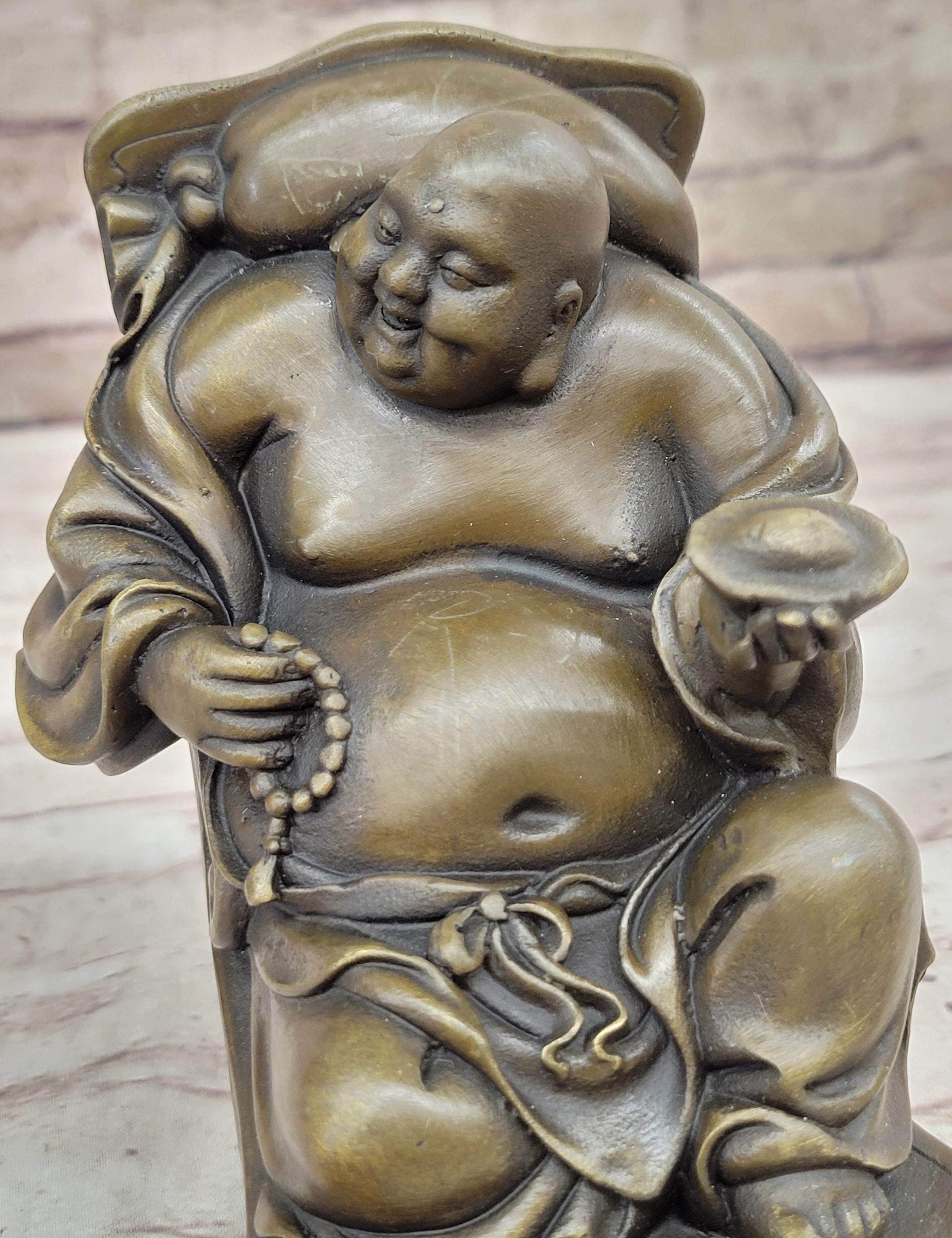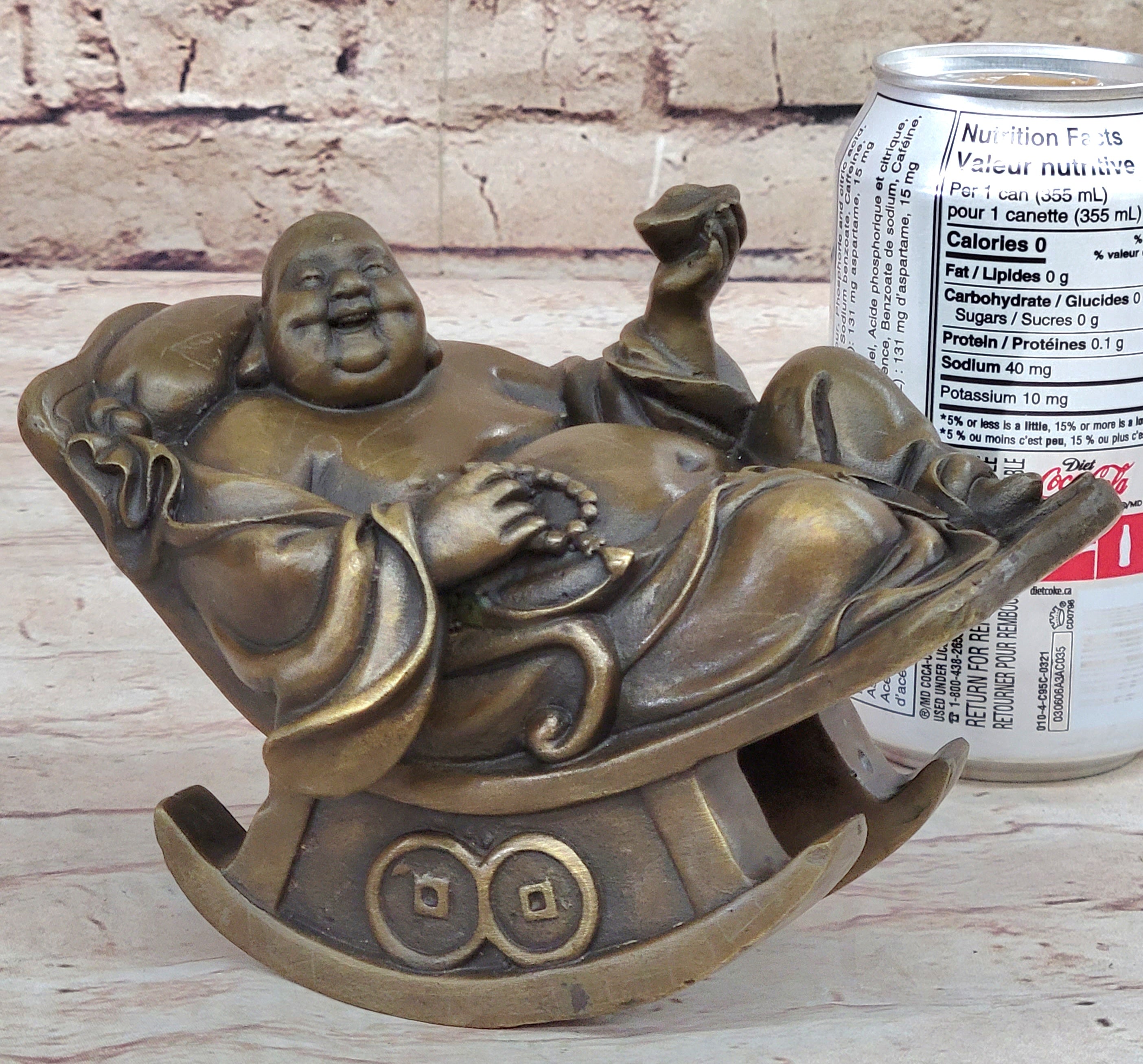 Laughing Buddha on Rocking Chair Bronze Figurine Statue Sculpture Original Art