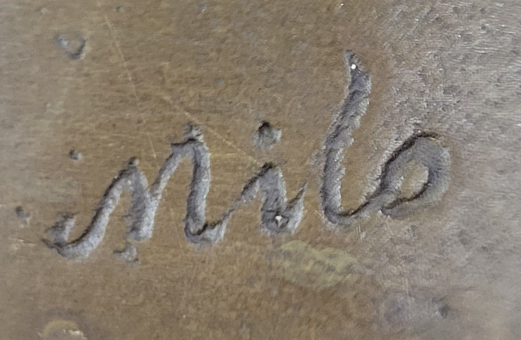 Incorporate the essence of the Laughing Buddha into your home or office decor to invite prosperity and good luck. Whether you're a feng shui enthusiast or simply seeking a unique and meaningful ornament, this signed Milo sculpture is a testament to artistry and symbolism that will uplift your space and spirit.Bronze Dimensions: Height 4" X 6"