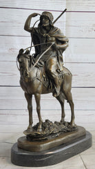 Lawrence of Arabia Bronze Sculpture Statue of Arabian Man on Horseback on Marble Base