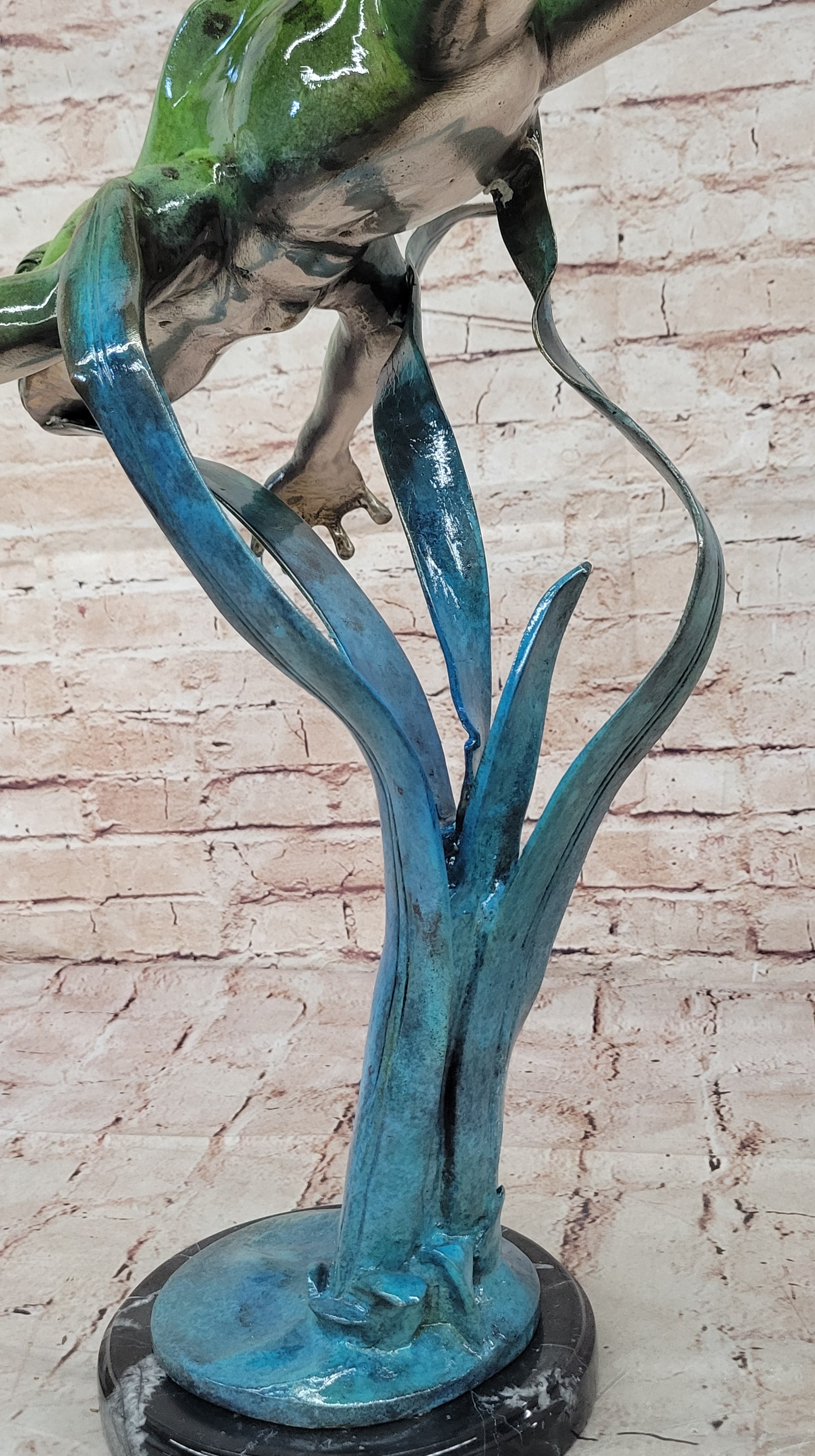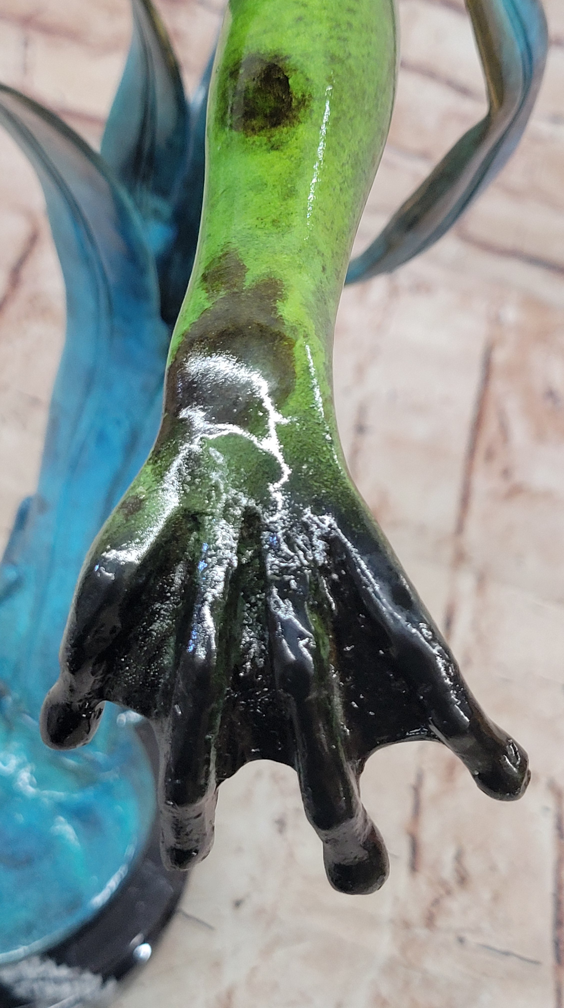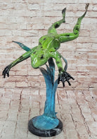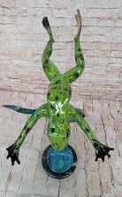 Leaping Frog Bronze Metal Statue Sculpture Painted Decor on Marble Base Signed Original Numbered Art
