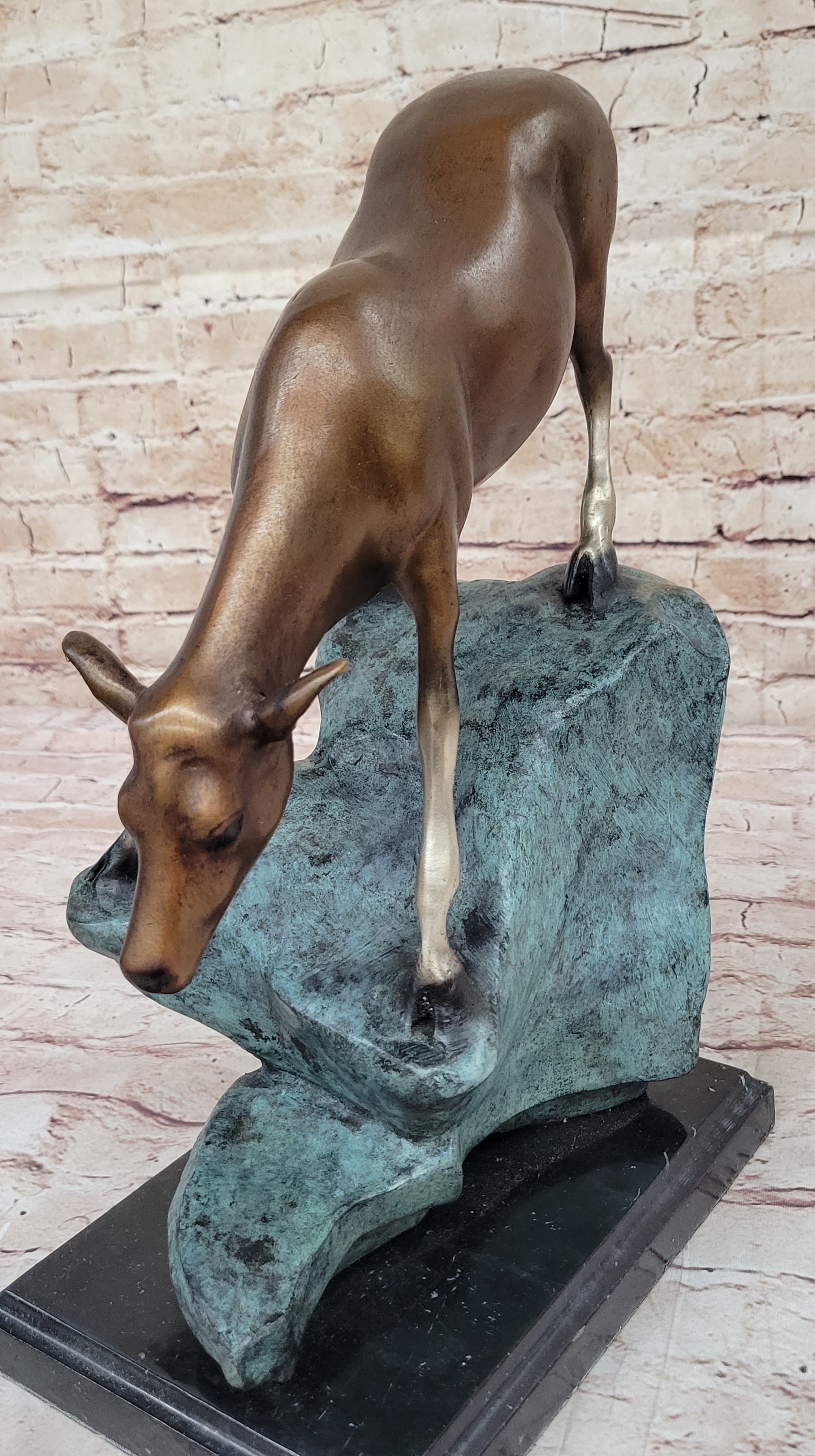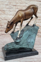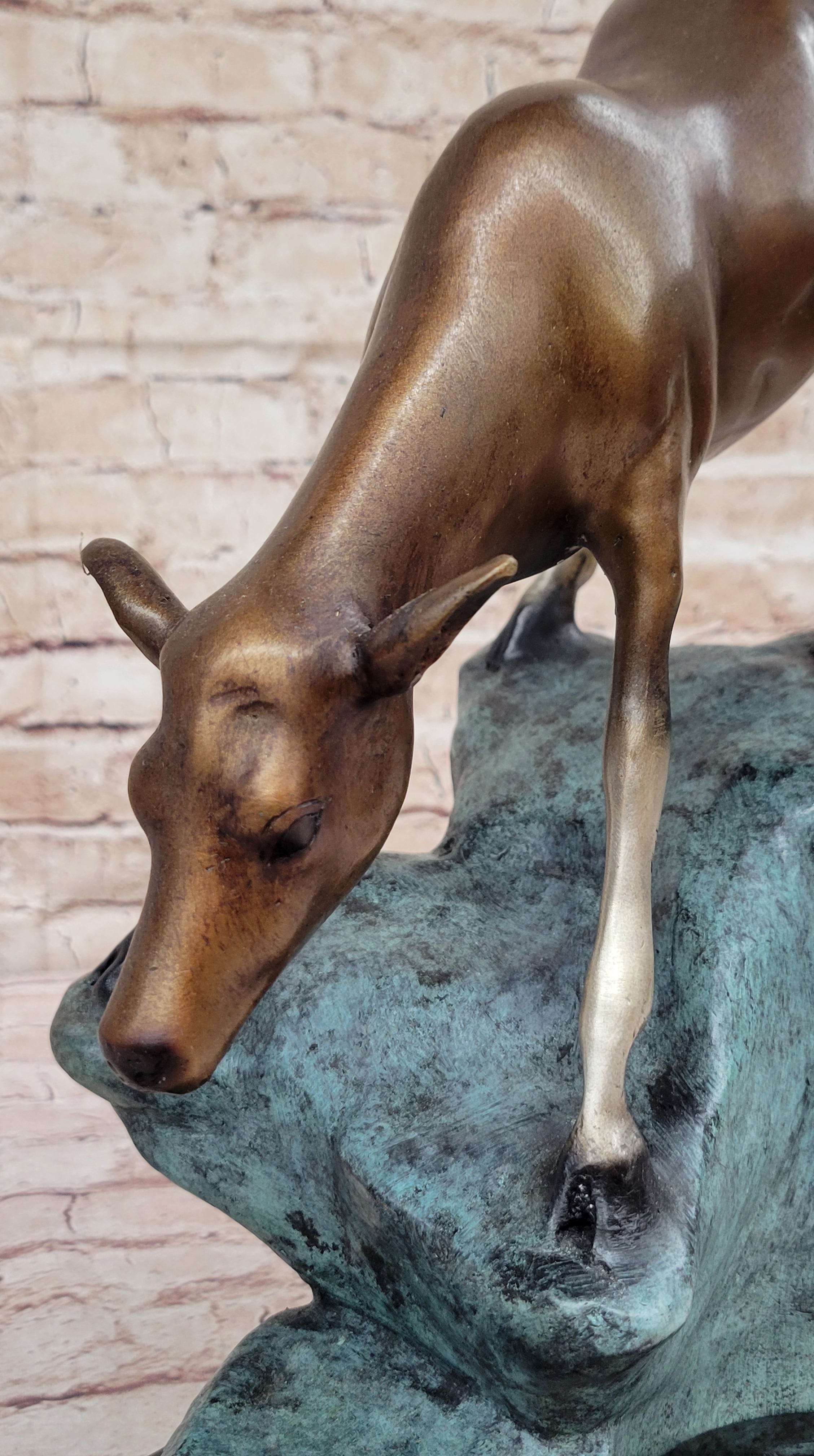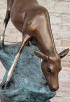 Limned Edition Bronze Deer Sculpture – Graceful Doe Drinking Water Statue