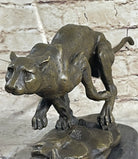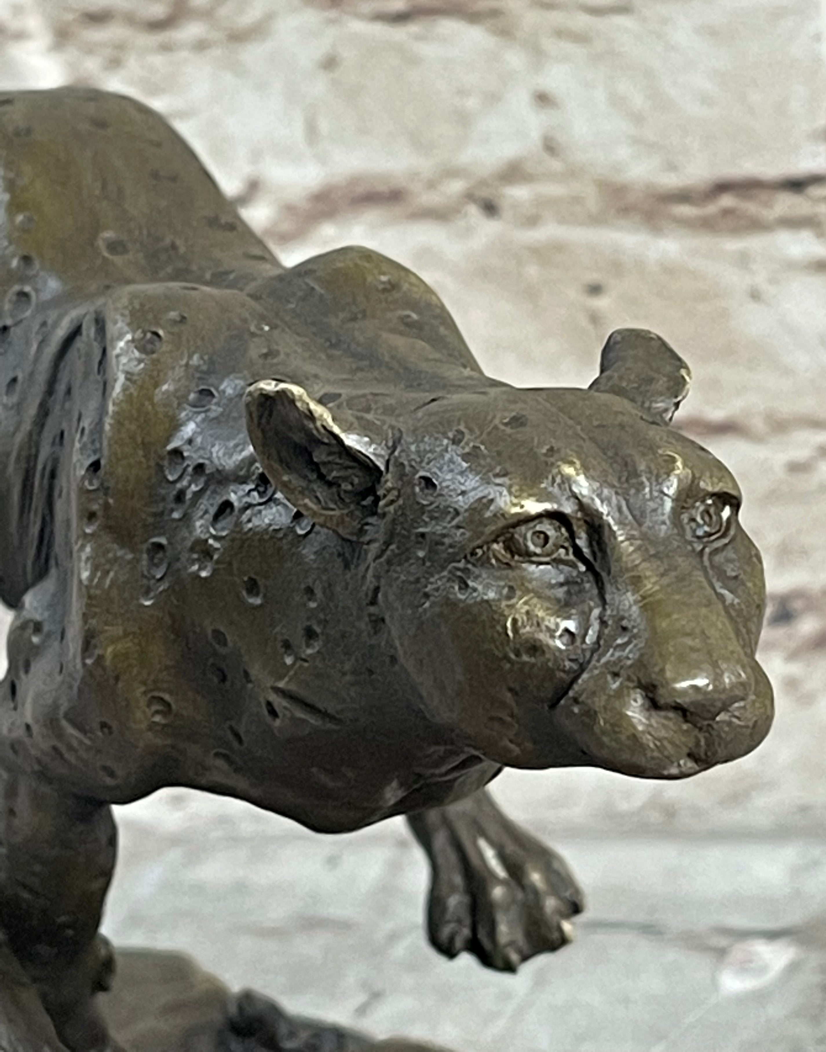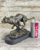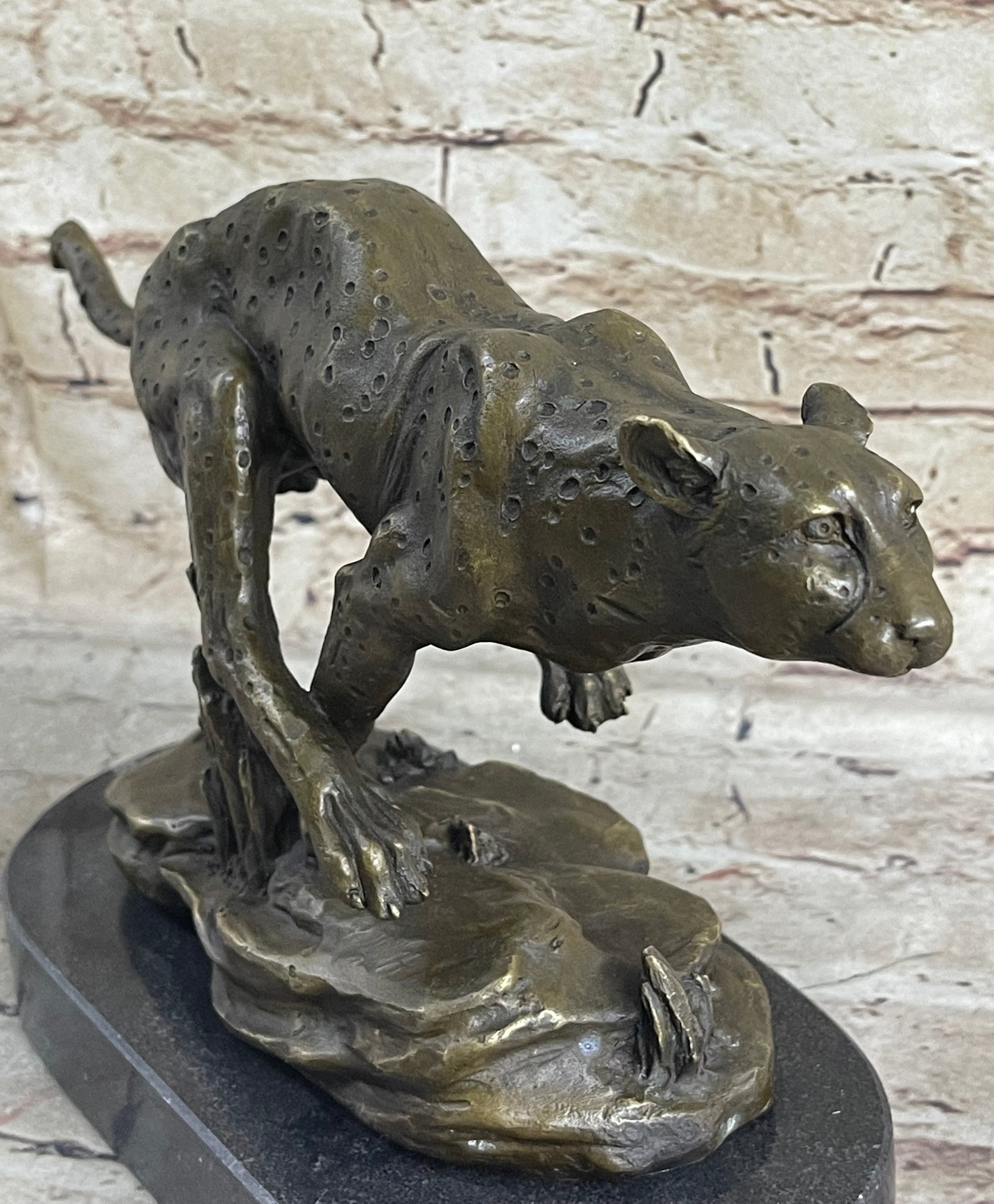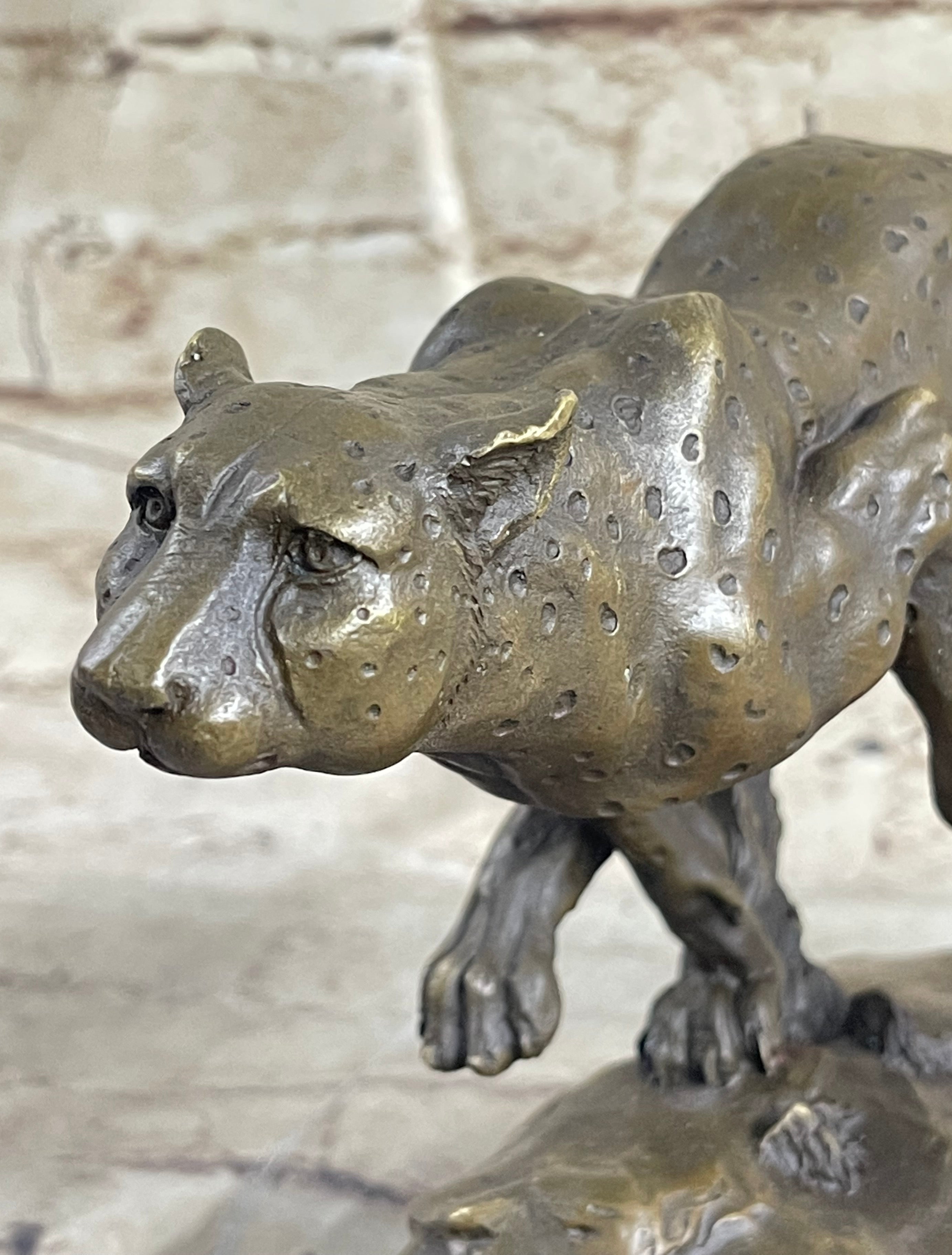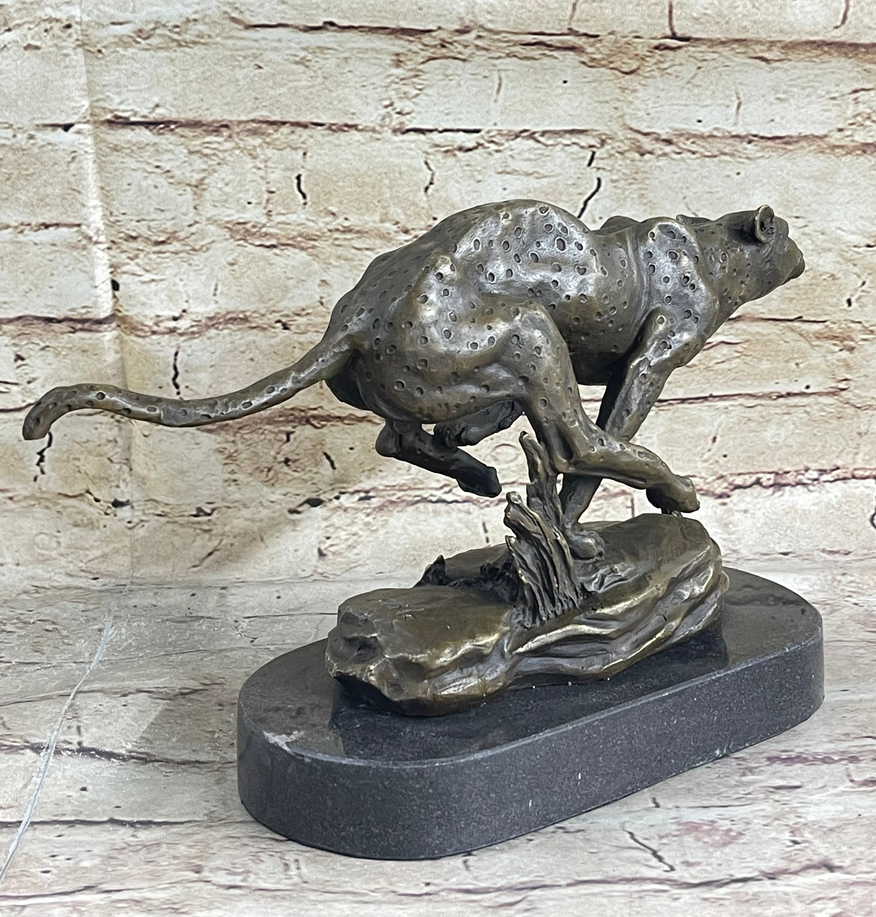 Running Cheetah Bronze Statue Sculpture Figure Marble Base Signed Milo