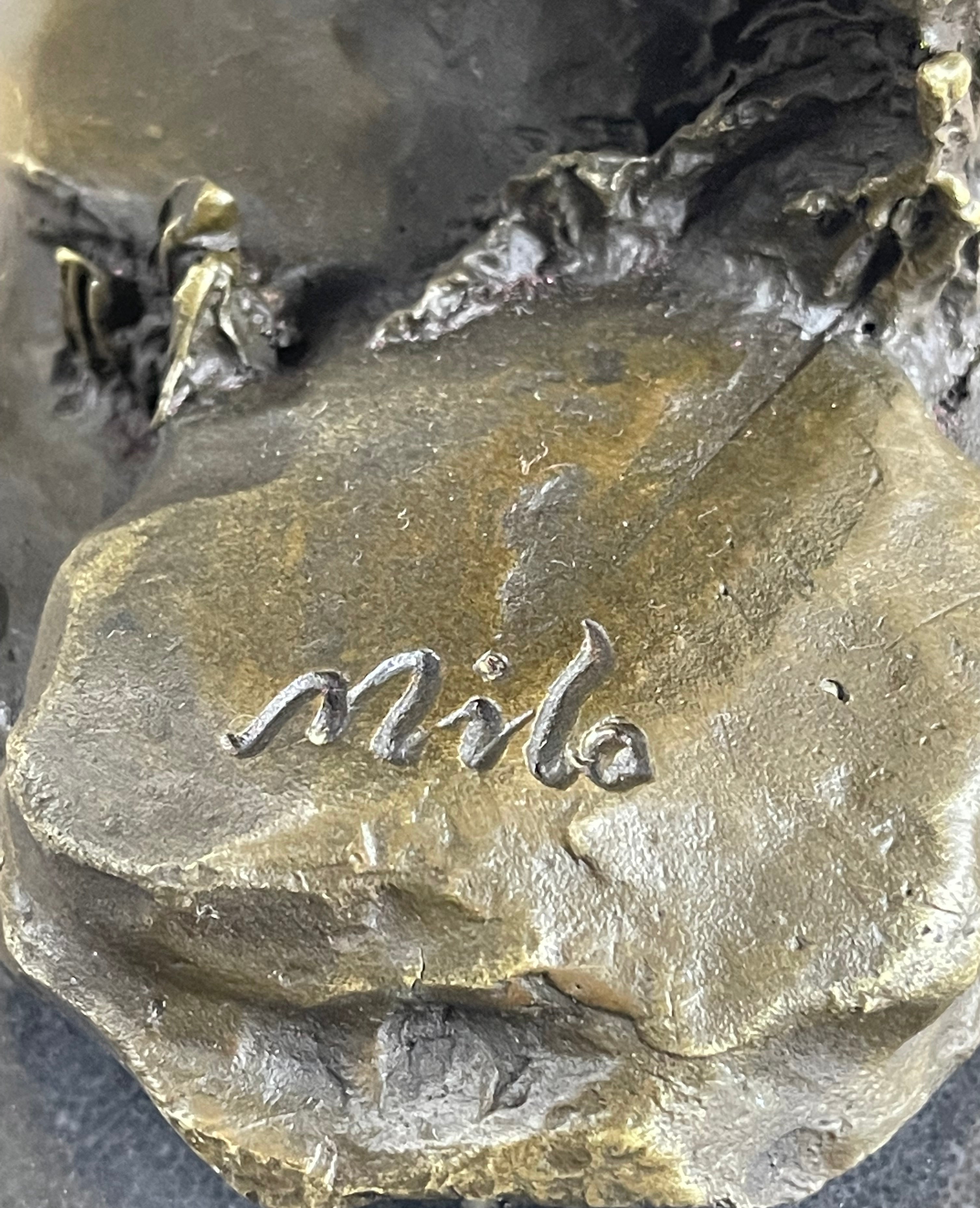 Created by the renowned artist Milo and signed personally, this sculpture is a testament to his dedication in portraying wildlife authentically. As you behold this bronze masterpiece, you'll be transported to the untamed landscapes where the leopard roams, instilling a sense of wonder and appreciation for the harmony of the natural world. Bring the captivating allure of the leopard into your space and let it inspire strength, agility, and reverence for the beauty of the animal kingdom.Bronze Dimensions with Marble Base: Height 8 " X Width 12"