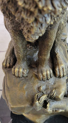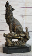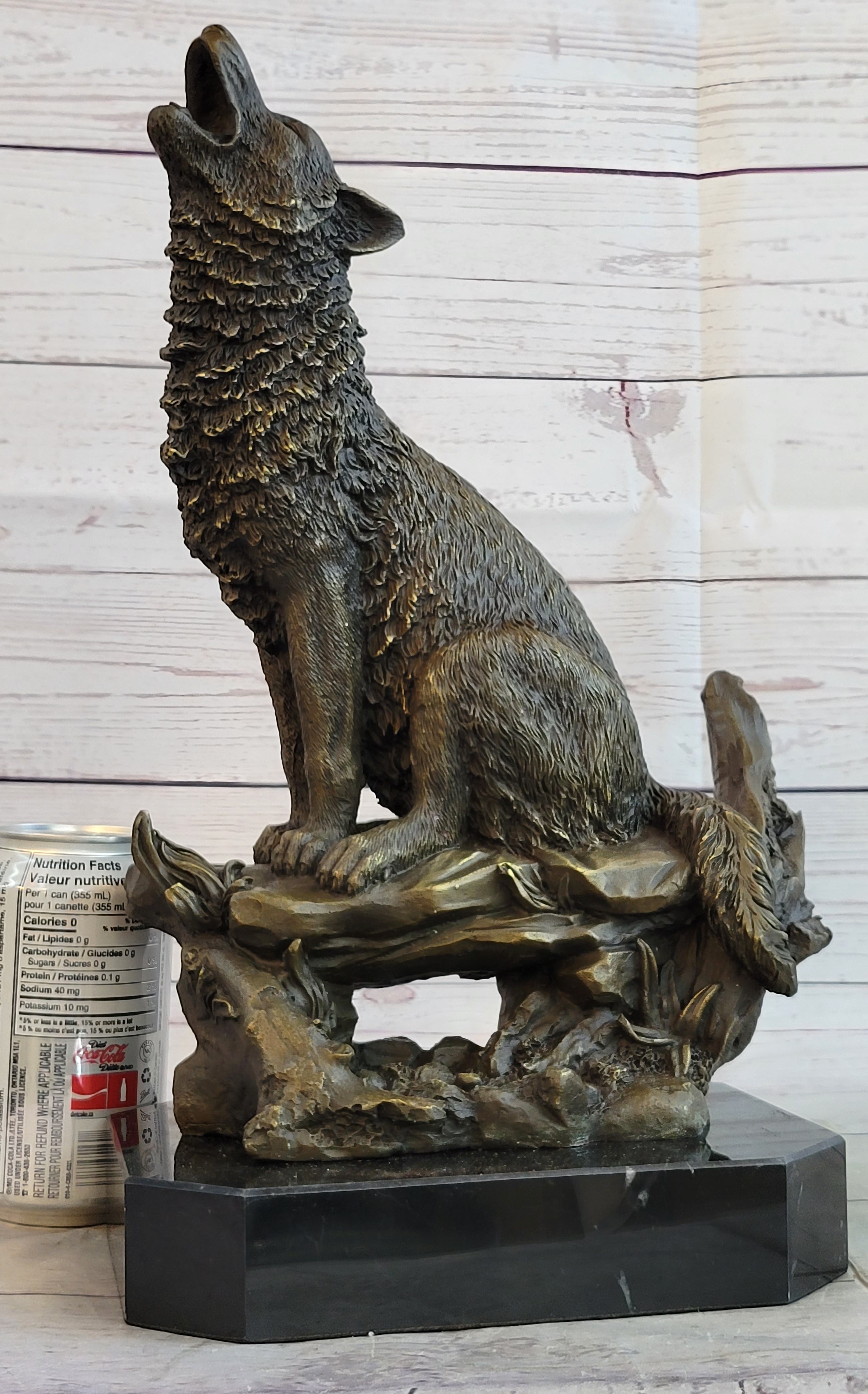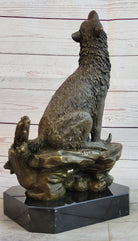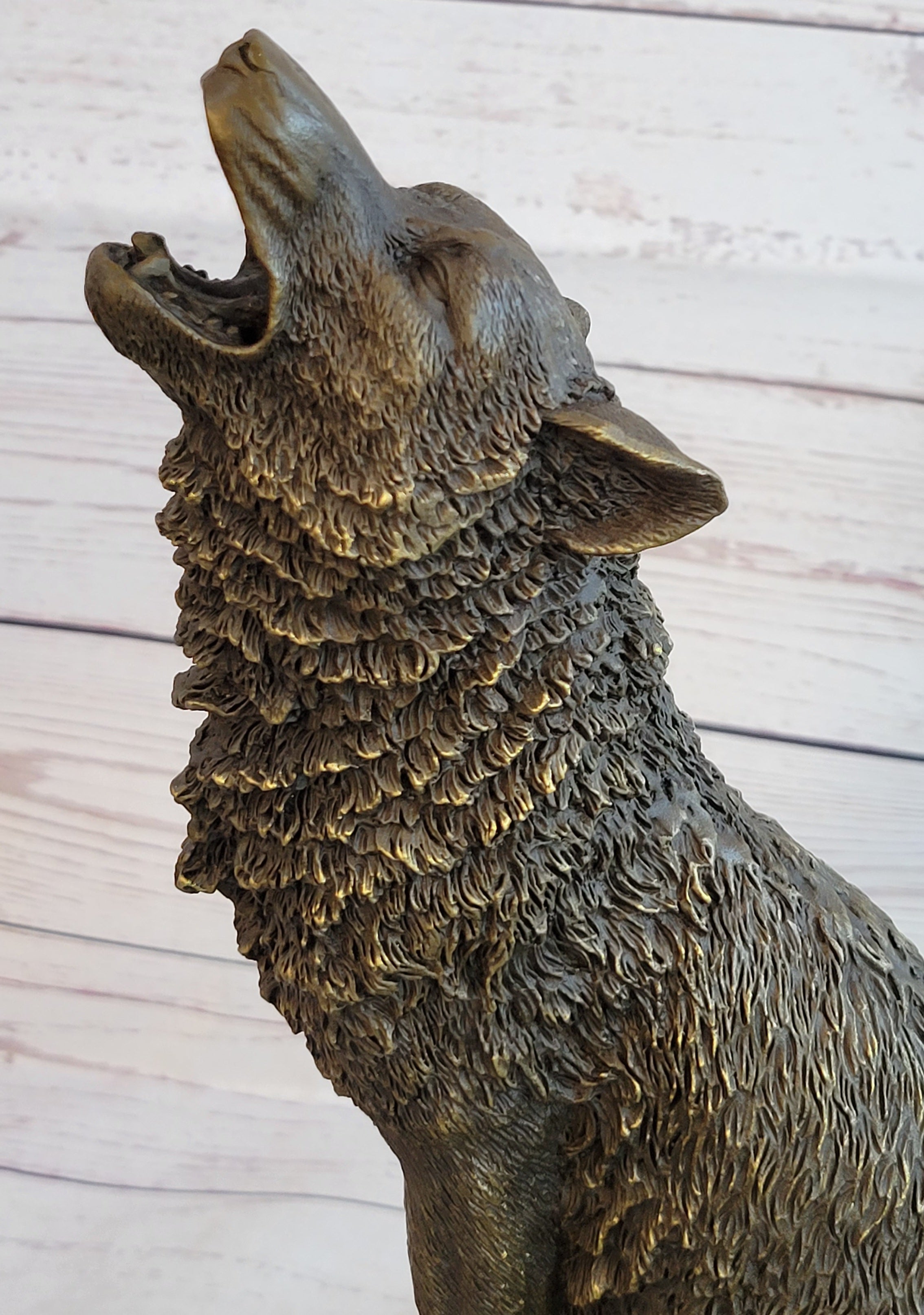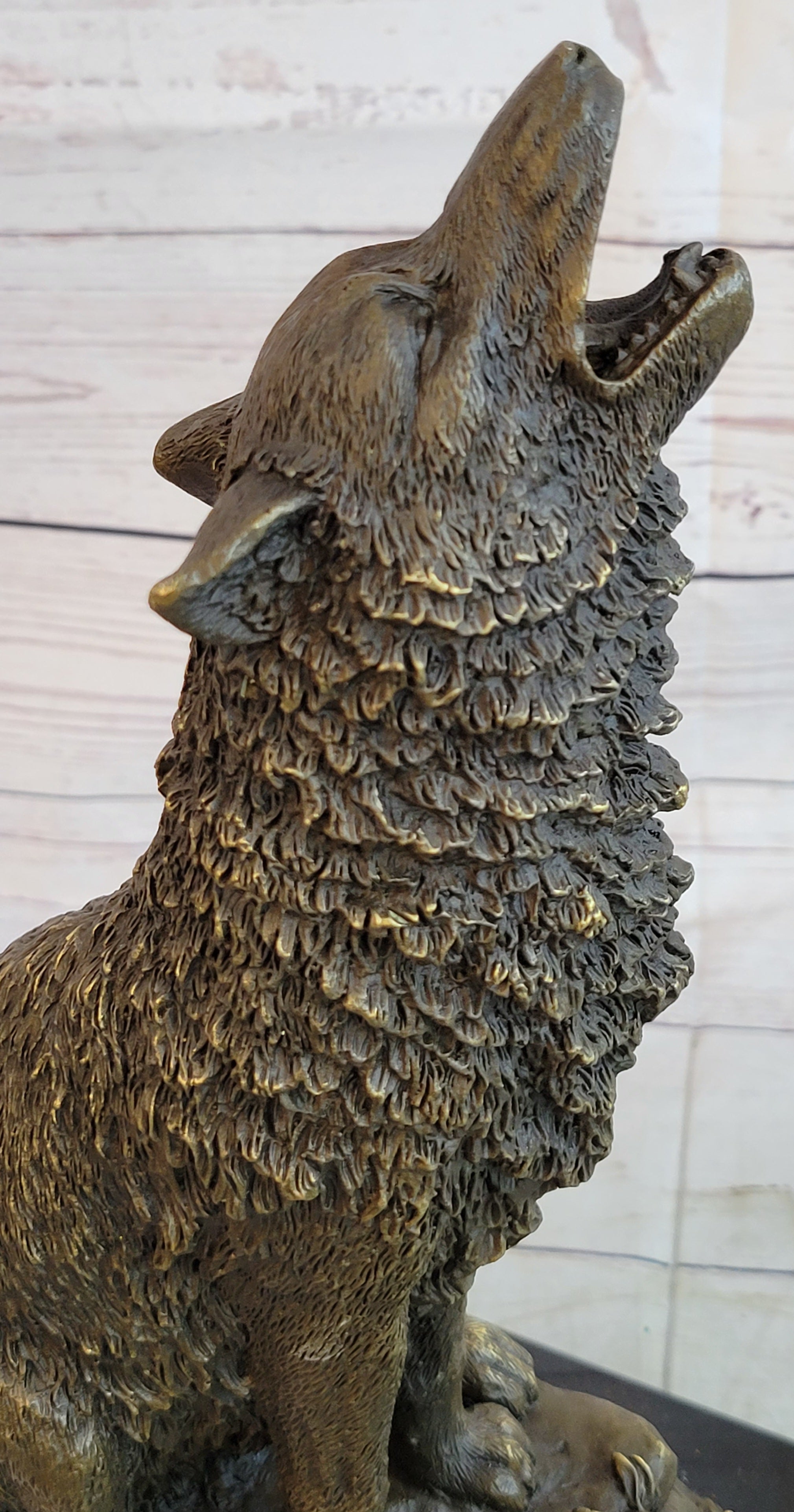 Lost Wax Bronze Casting of Howling Wolf on Marble Base by Milo