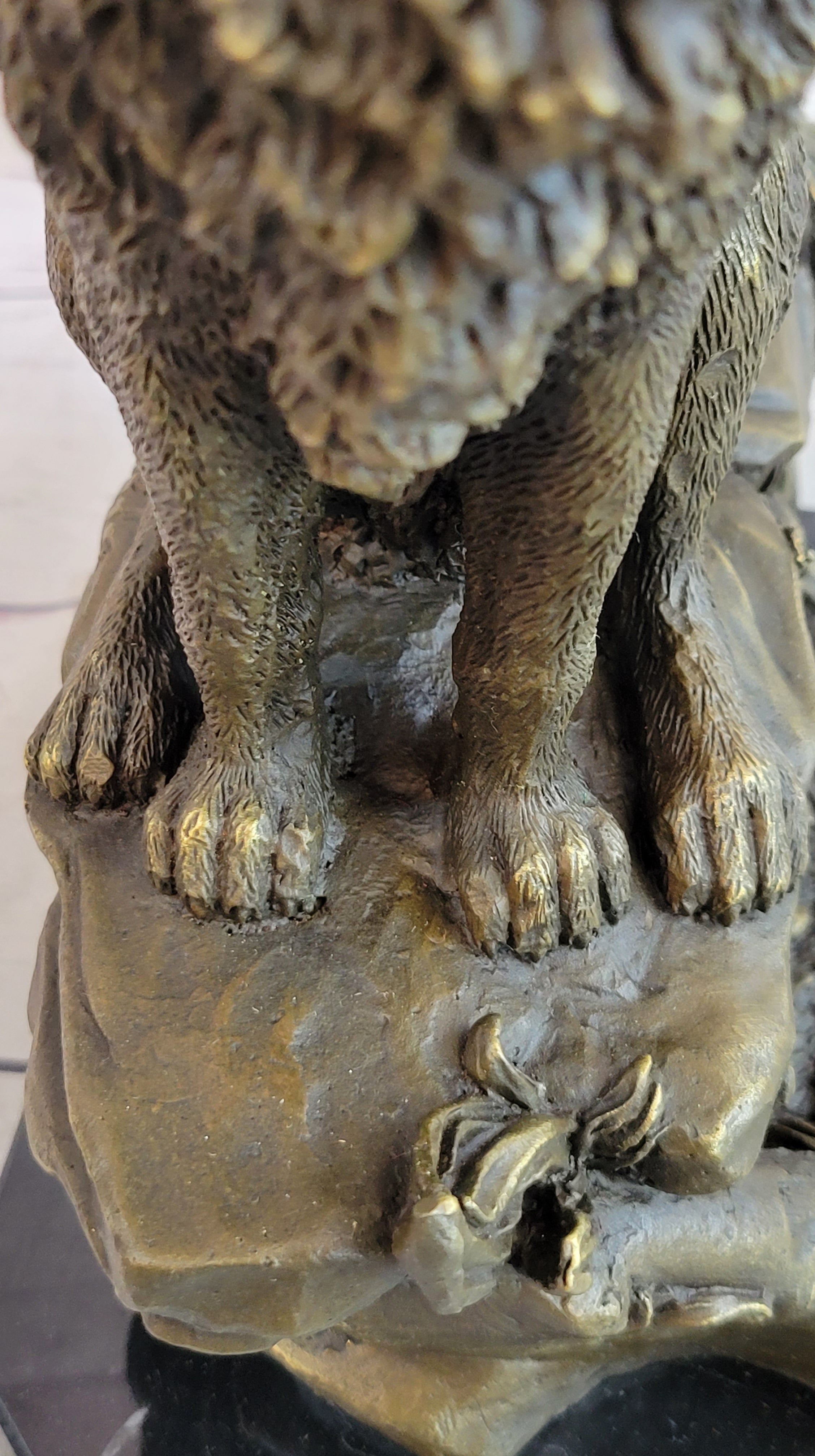 Bring the beauty of wildlife into your home with this striking Milo Wildlife Wolf on Cliff Bronze Sculpture. It not only serves as a captivating decoration but also symbolizes strength, freedom, and the untamed spirit of nature. Add a touch of wilderness and elegance to your space with this remarkable piece that captures the essence of the wolf's majestic presence. Experience the artistry and craftsmanship of Milo's work with this extraordinary bronze sculpture, a true statement of style and sophistication.Bronze Dimensions with Marble Base: Height 14.5" X Width 12.5"