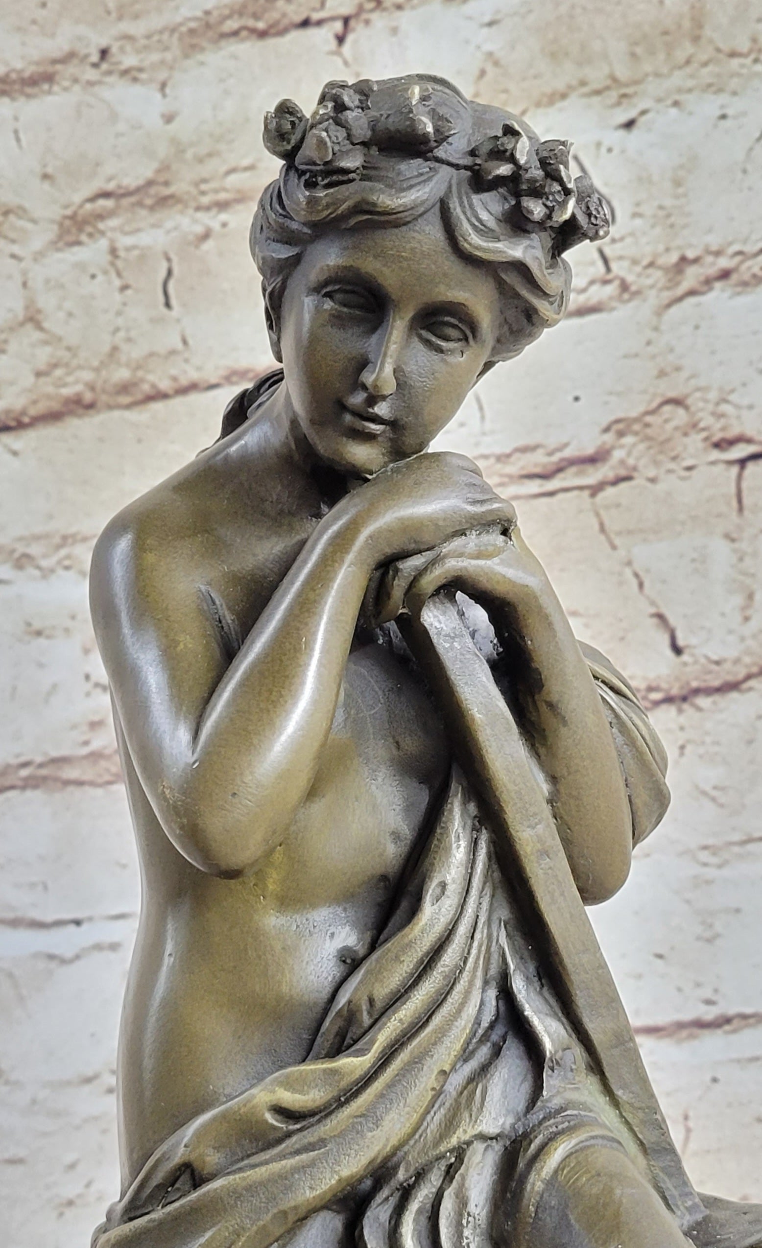 Lost Wax Hotcast Bronze Sculpture Nude Lovely Woman Resting Art Nouveau Decor