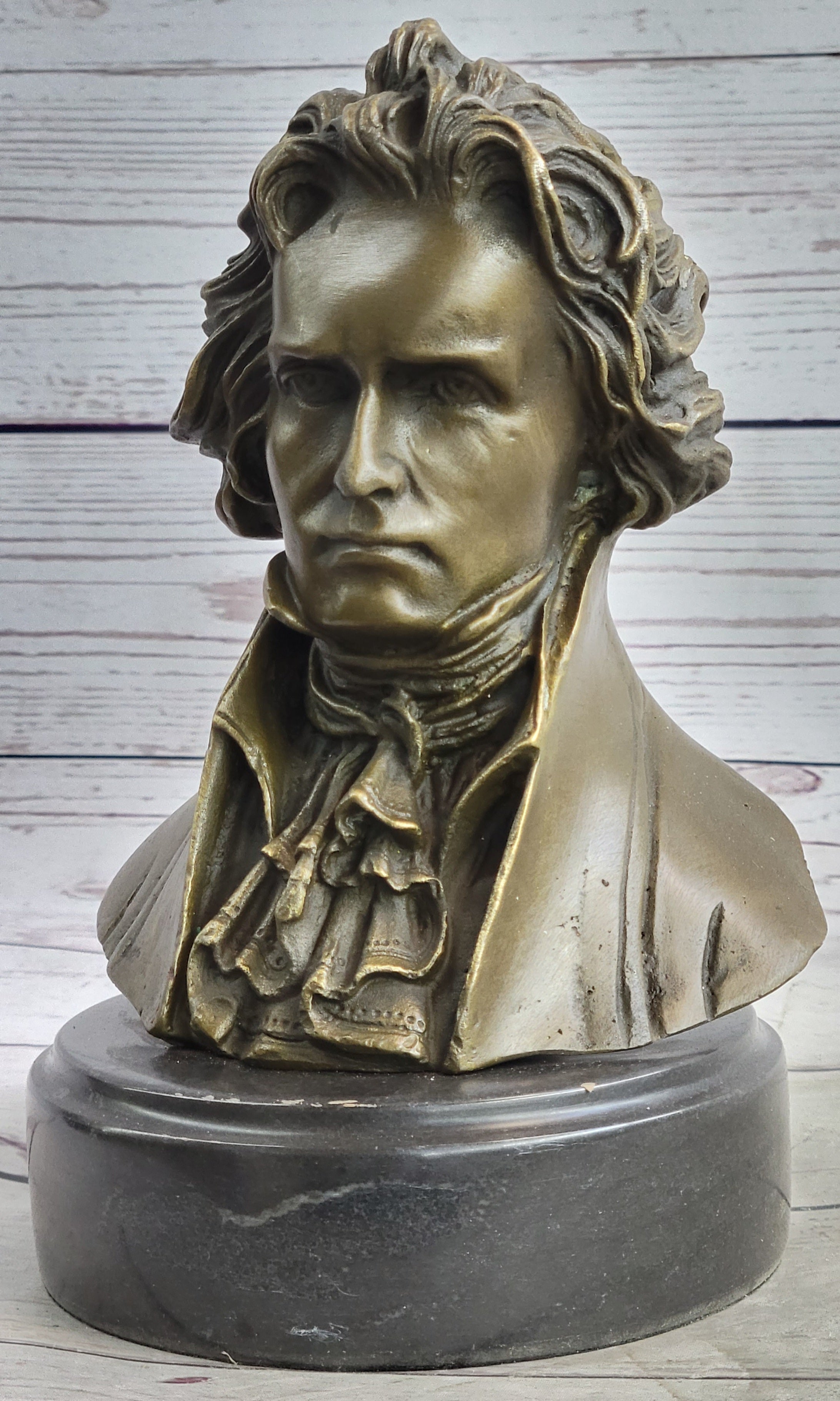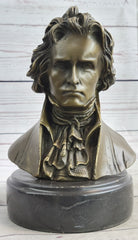 Ludwig van Beethoven Bronze Metal Bust Sculpture Statue on Marble Base