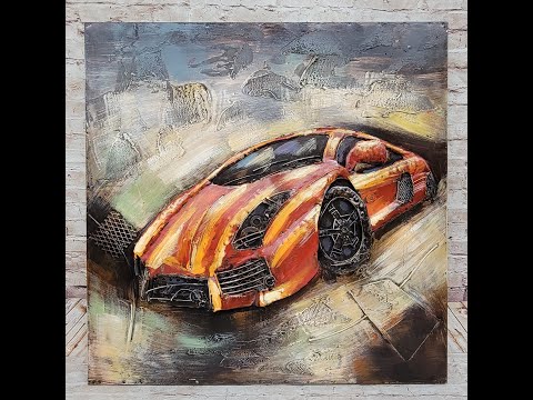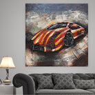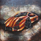 Luxury Exotic Car Orange Lamborghini 3D Mixed Media Wall Art Painting