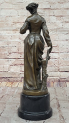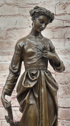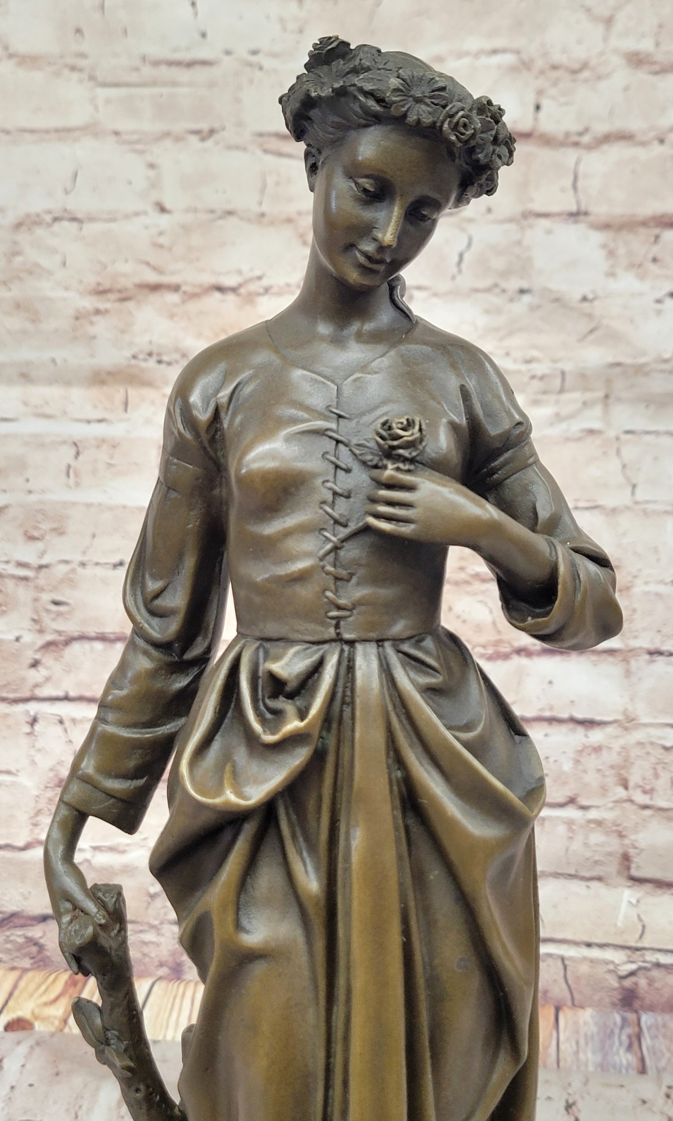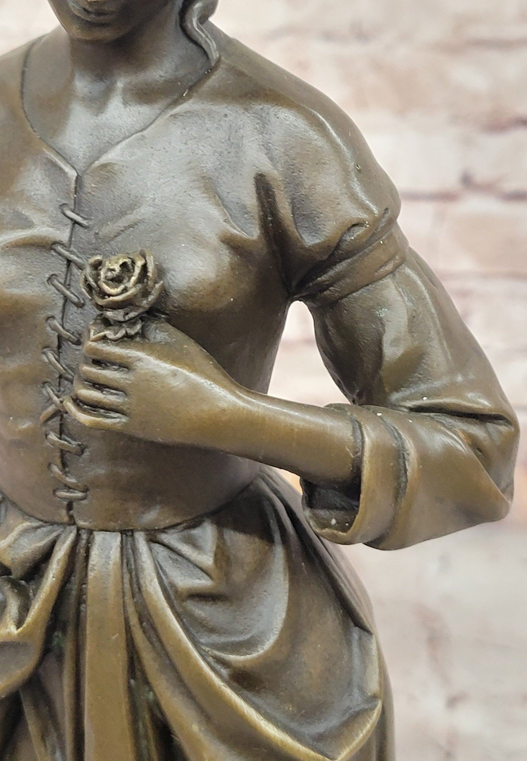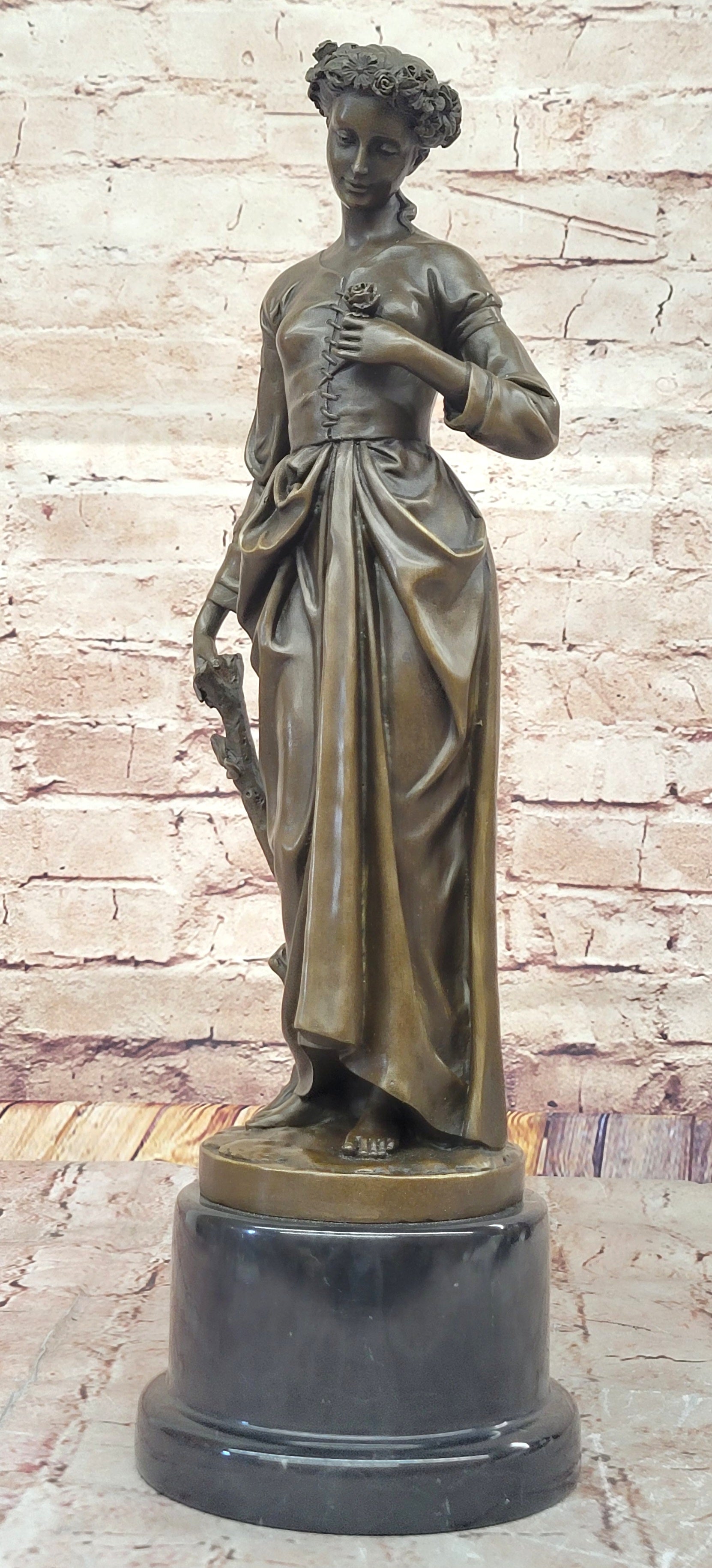Maiden with Rose - Bronze Female Figure Sculpture on Marble Base