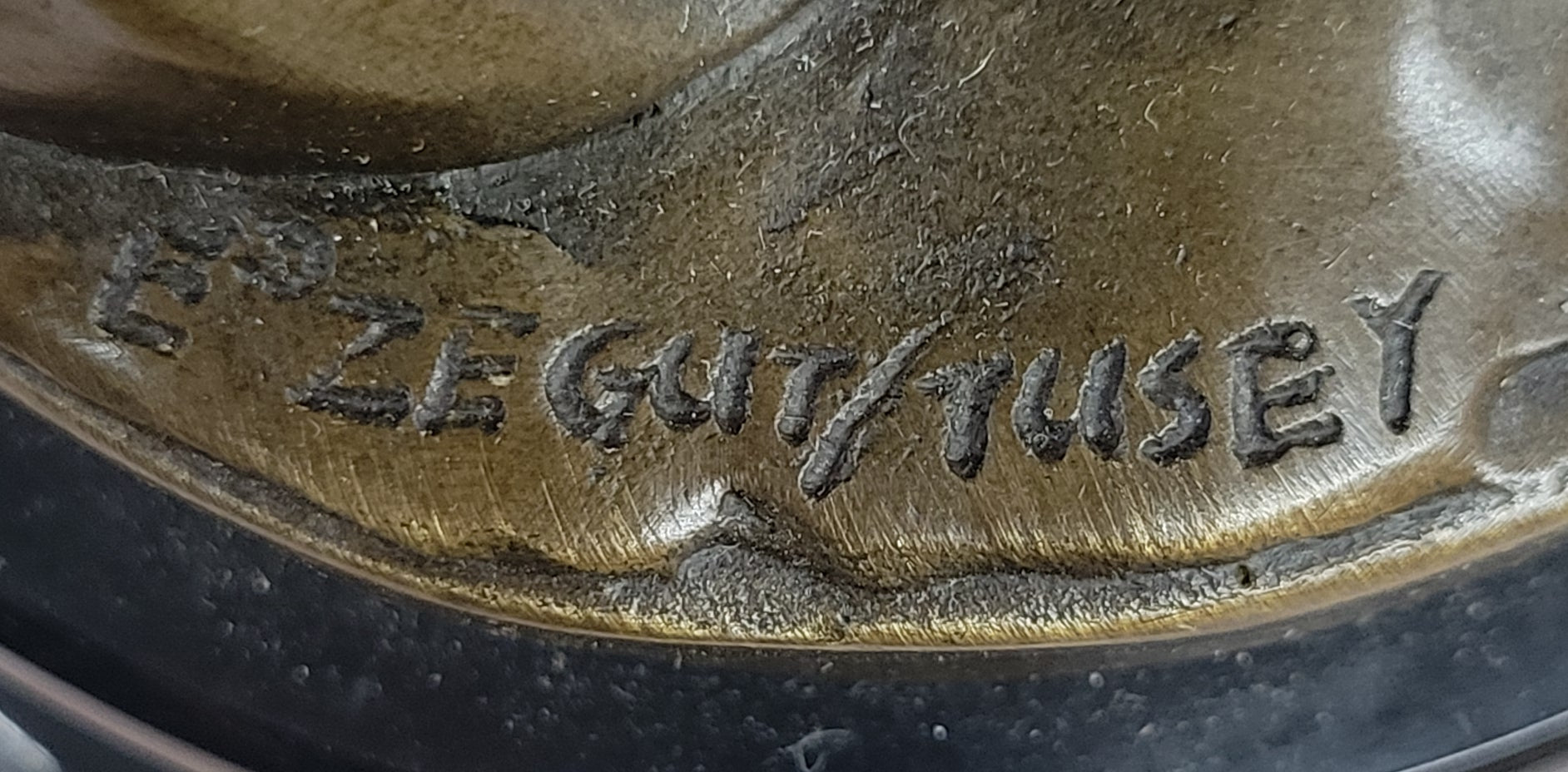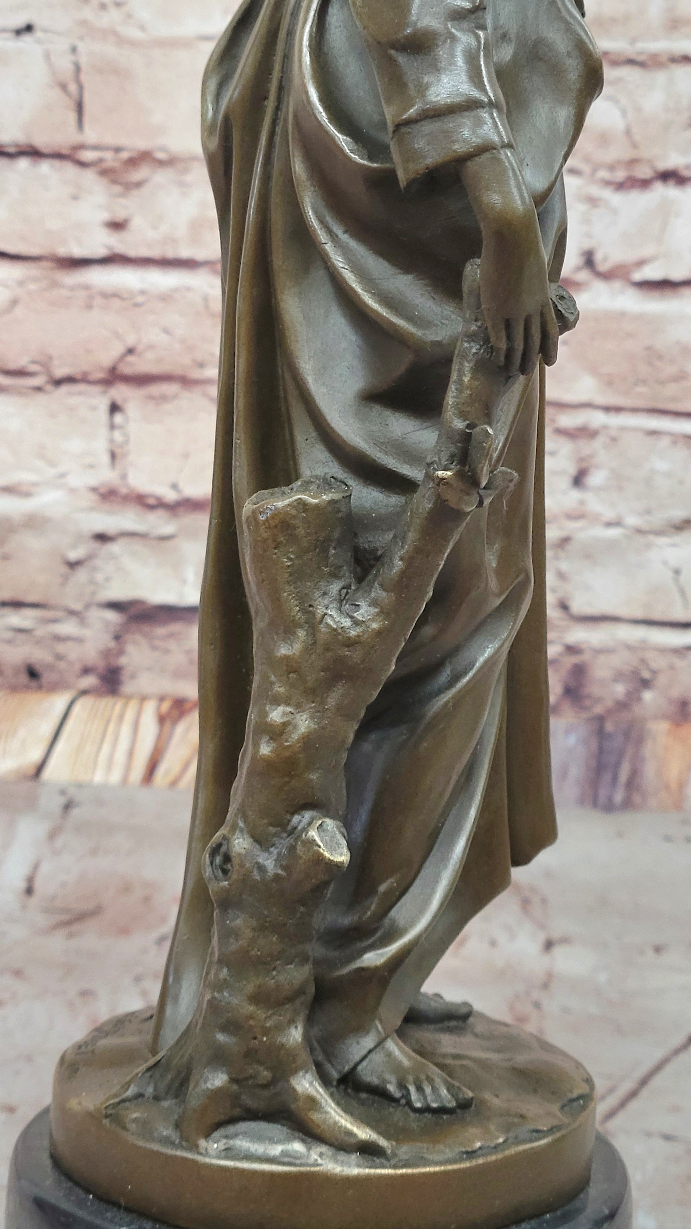 This sculpture is meticulously crafted from 100% bronze using the traditional "Lost Wax Method." Finished with a warm brown patina, it is mounted on a polished marble base for stability and contrast. Handmade with care, the sculpture bears the signature of Zegut/Tusey, making it a remarkable piece of art that embodies poise and serenity.Bronze Dimensions with Marble Base: Height 17" X Width 7"